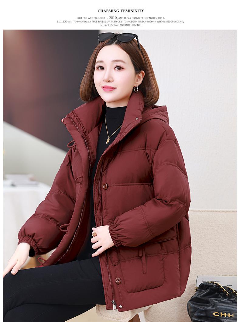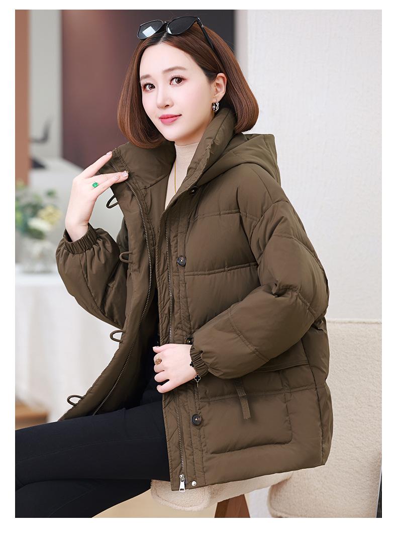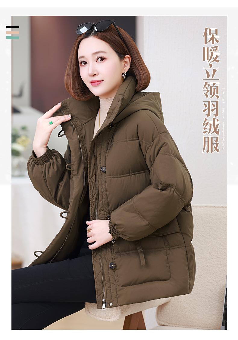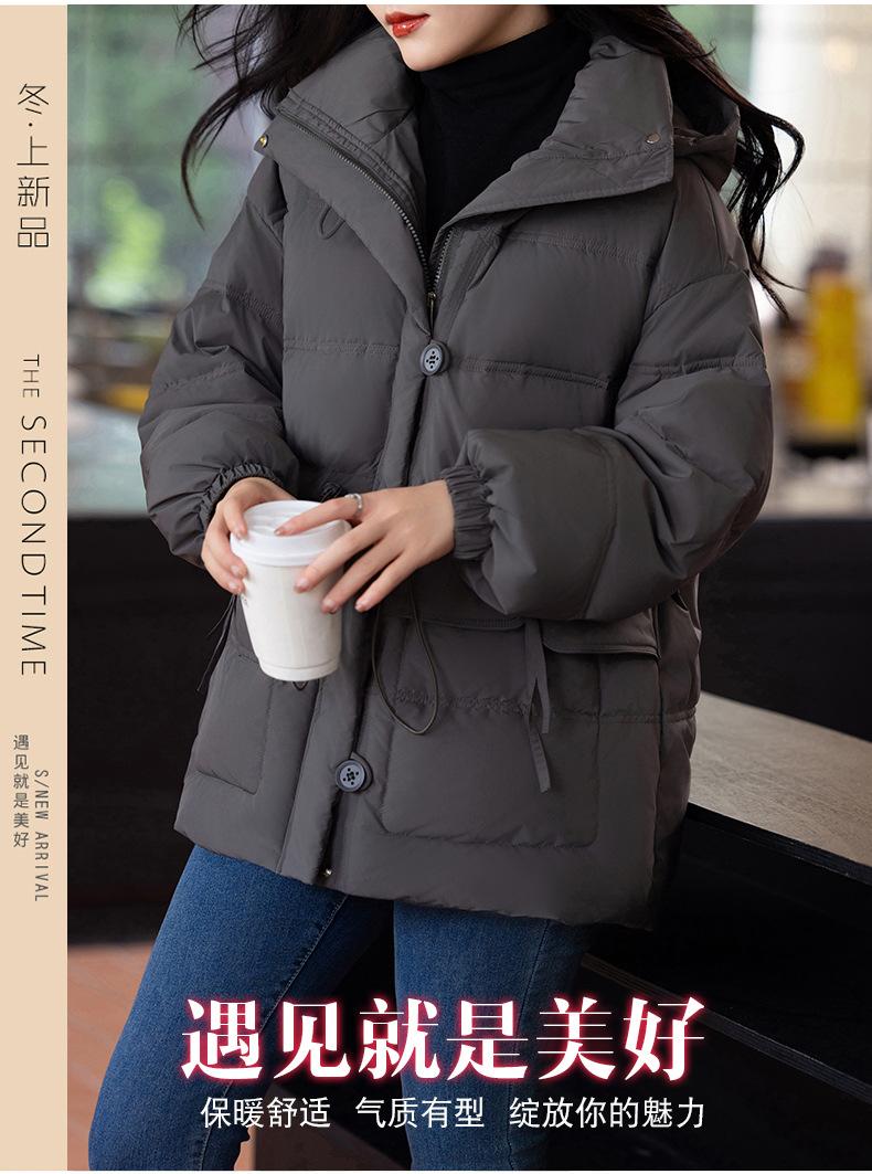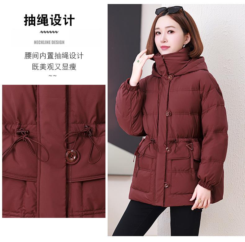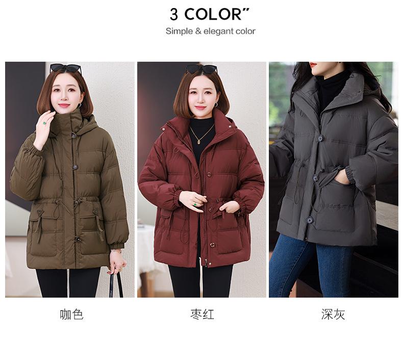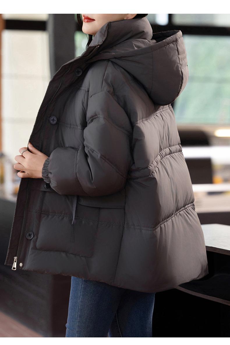 Chamarra de Plumón con Capucha y Cuello Cálido Engrosado para Mujer 2024 Invierno Nueva Mamá Cintura con Cordón Adelgazante Chamarra de Plumón de Pato Blanco