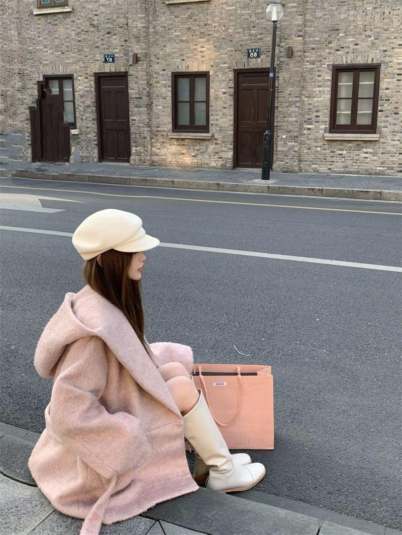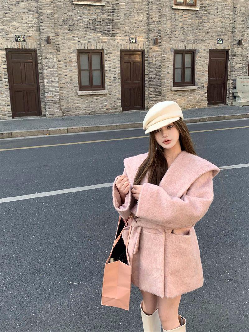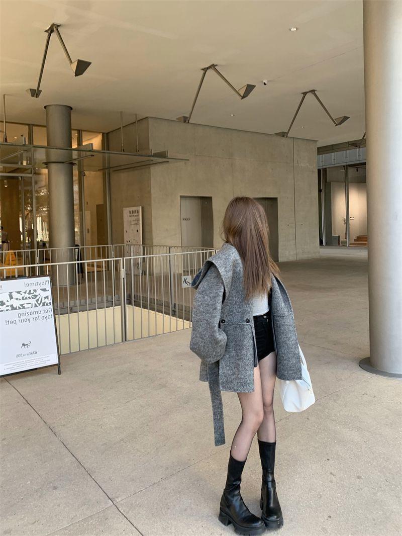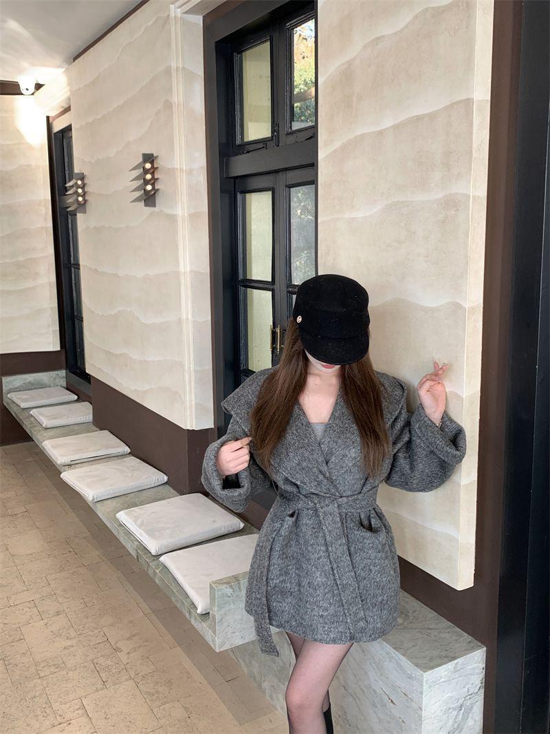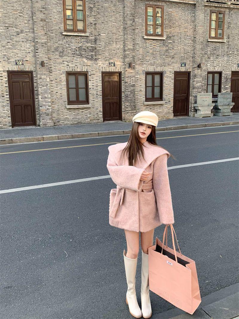 Abrigo de lana vintage gris con capucha y mangas largas para mujer, otoño e invierno, holgado, largo medio, elegante, tipo cárdigan de lana