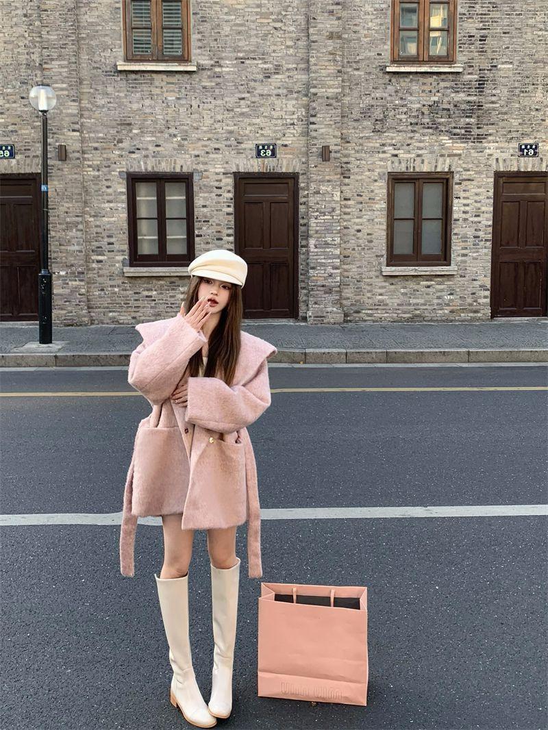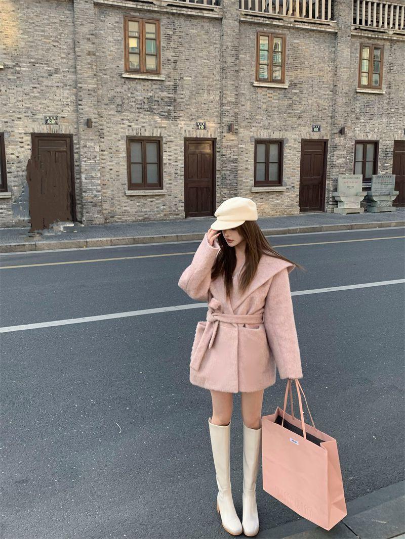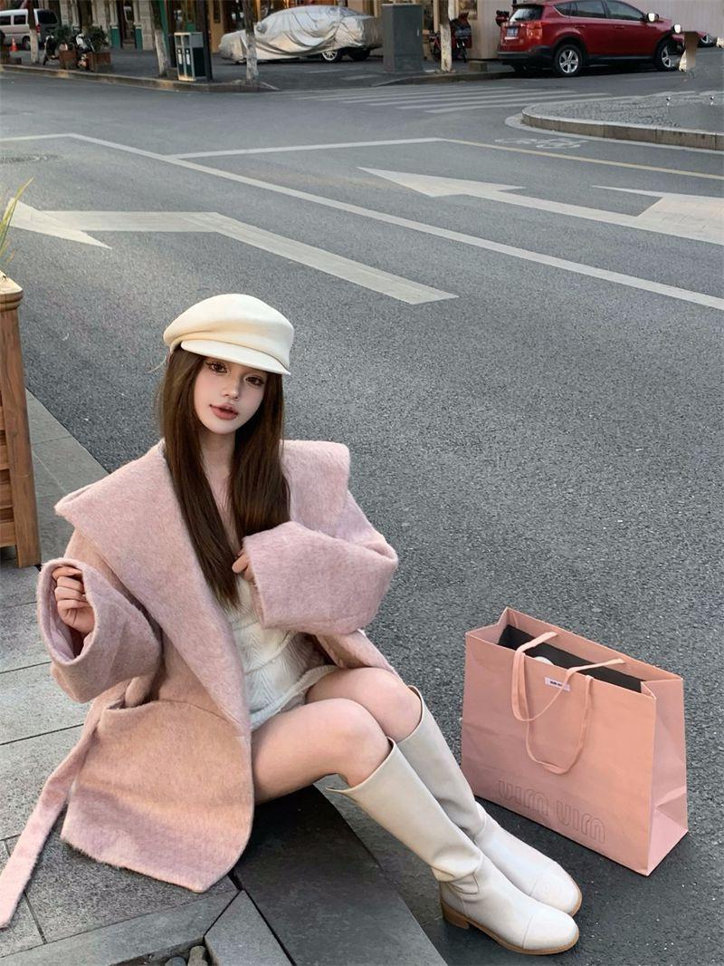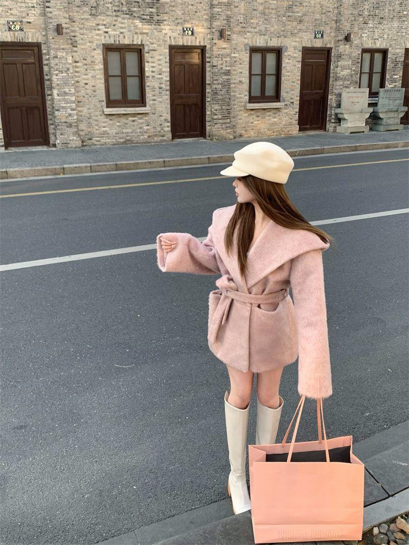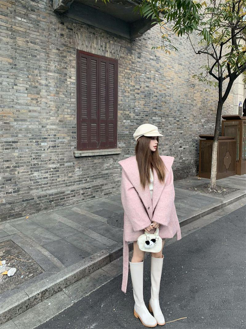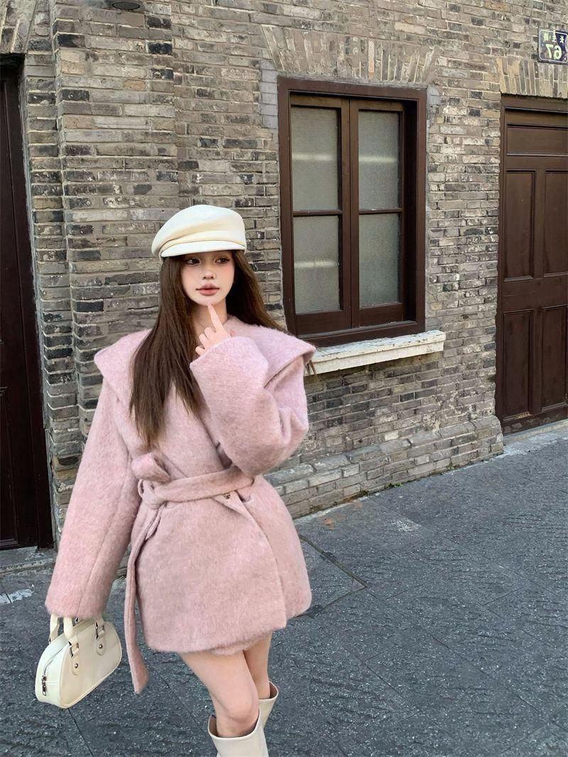 Abrigo de lana vintage gris con capucha y mangas largas para mujer, otoño e invierno, holgado, largo medio, elegante, tipo cárdigan de lana
