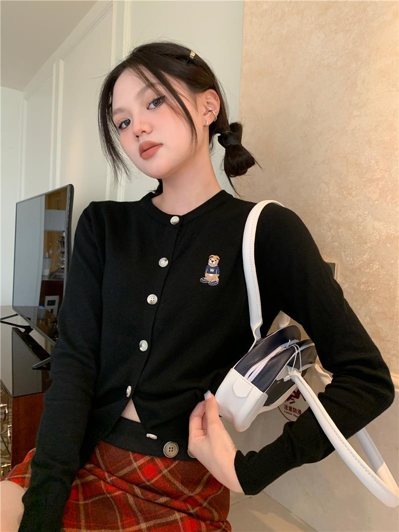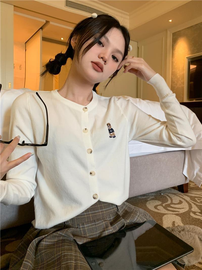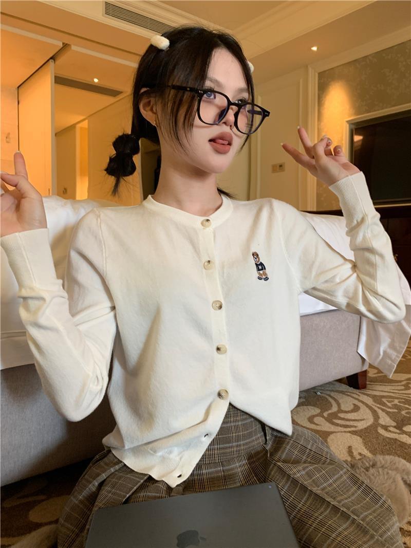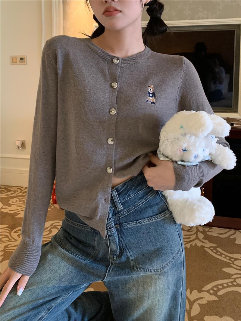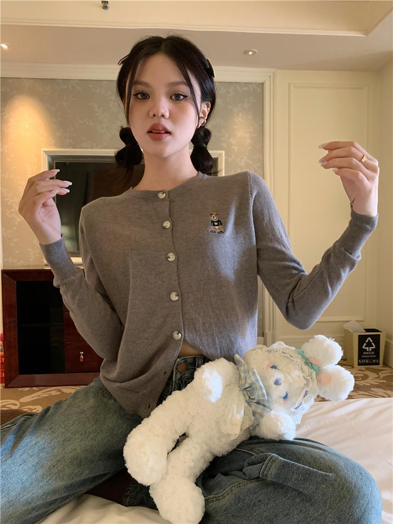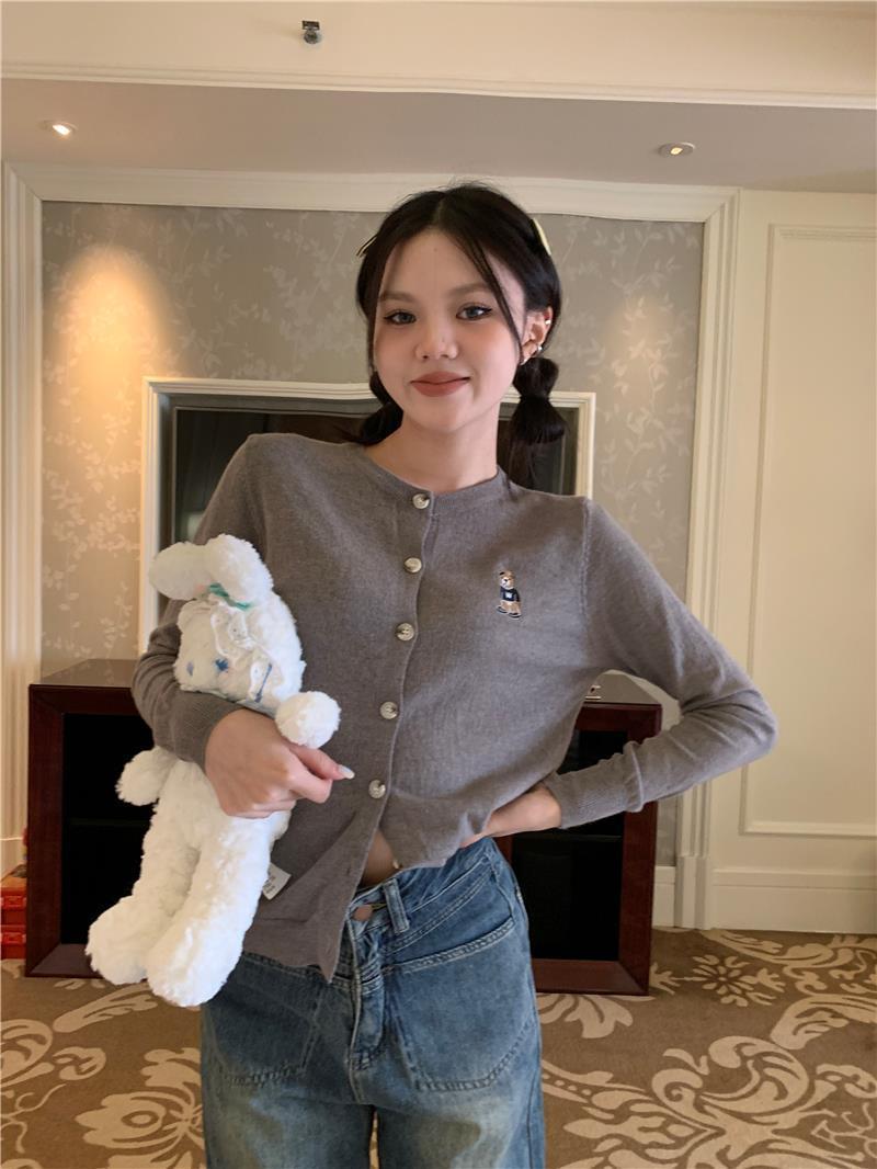 Suéter de manga larga para mujer, cárdigan estiloso, abrigo de punto cálido, suelto y corto, para principios de otoño de 2024