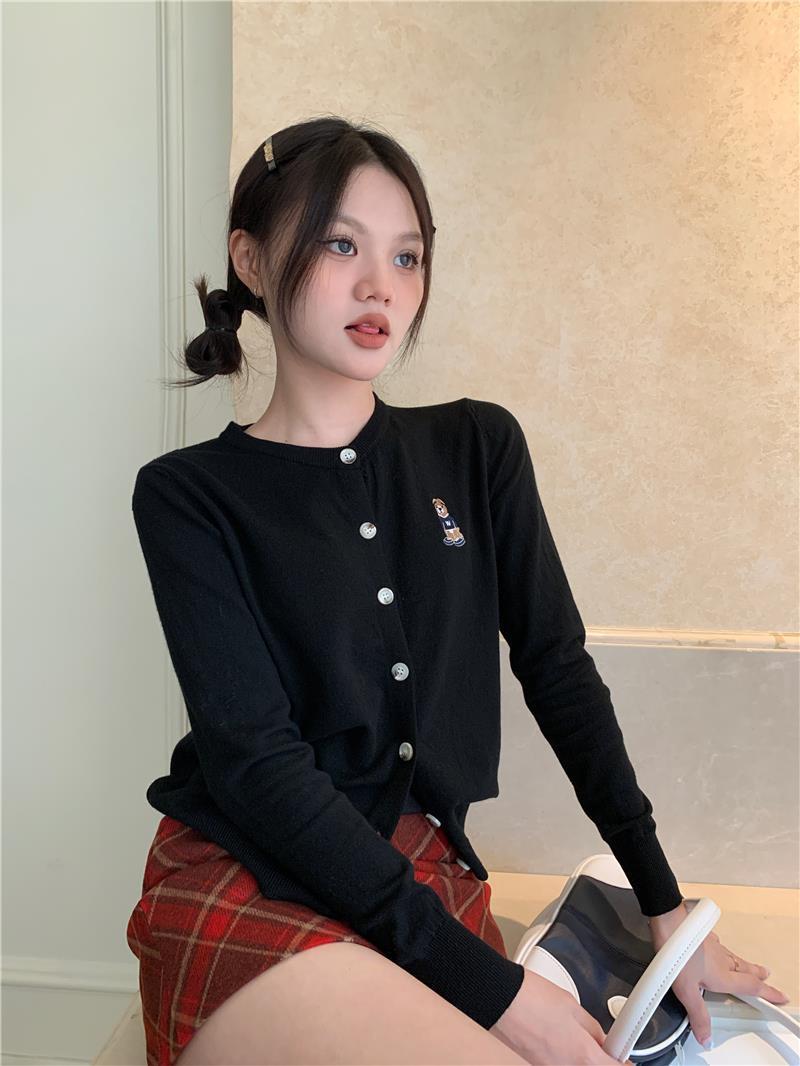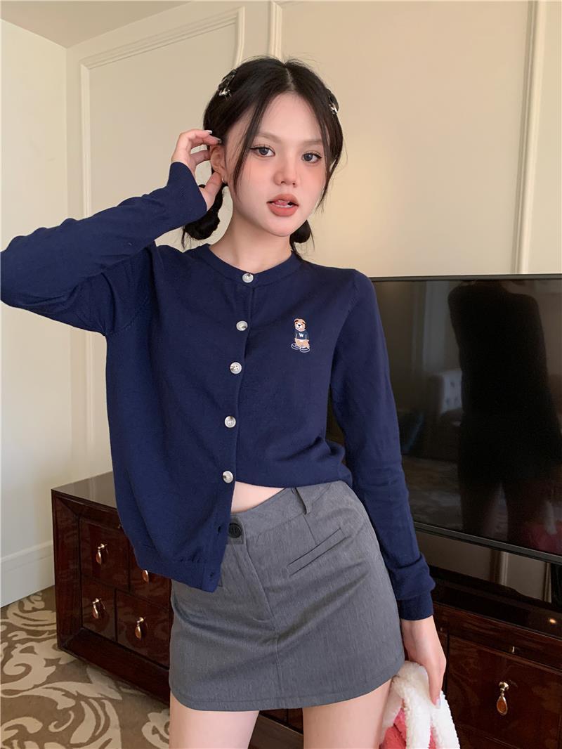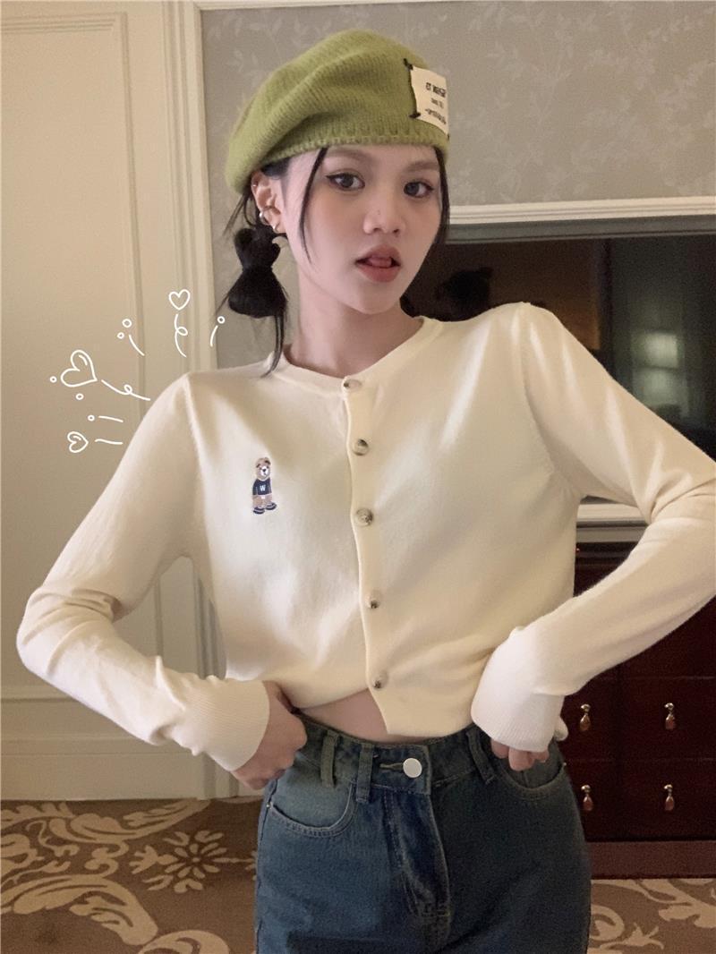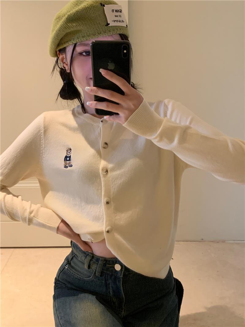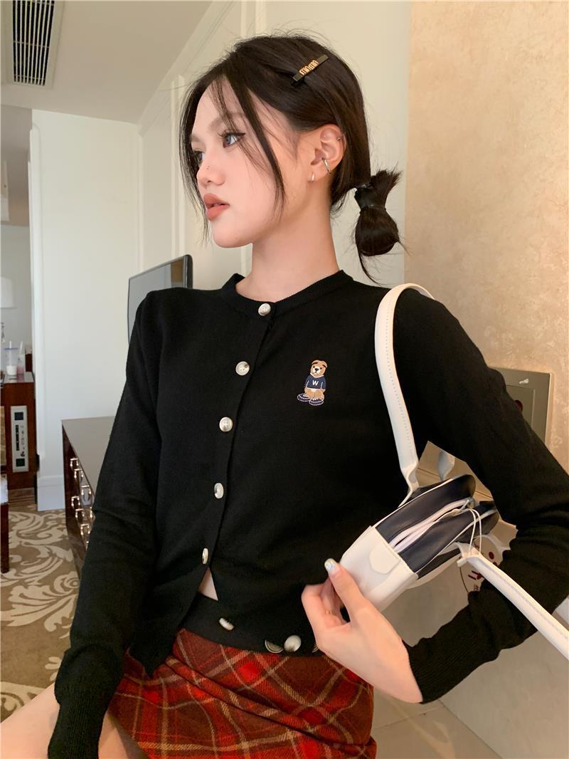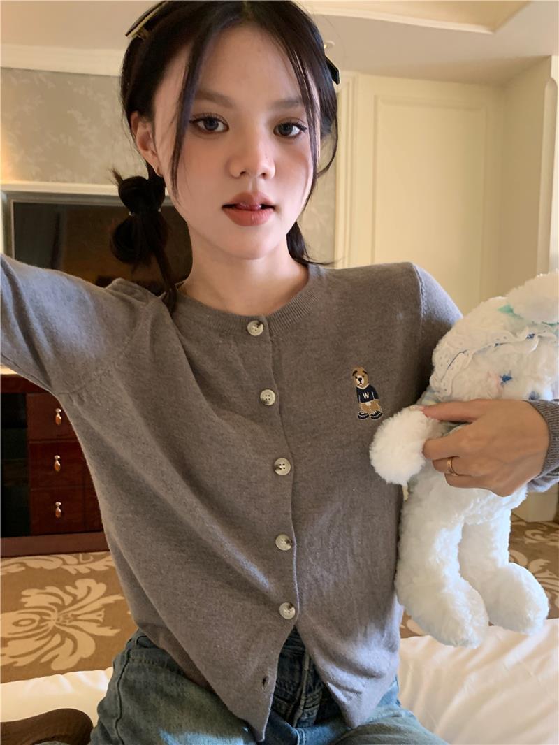 Suéter de manga larga para mujer, cárdigan estiloso, abrigo de punto cálido, suelto y corto, para principios de otoño de 2024