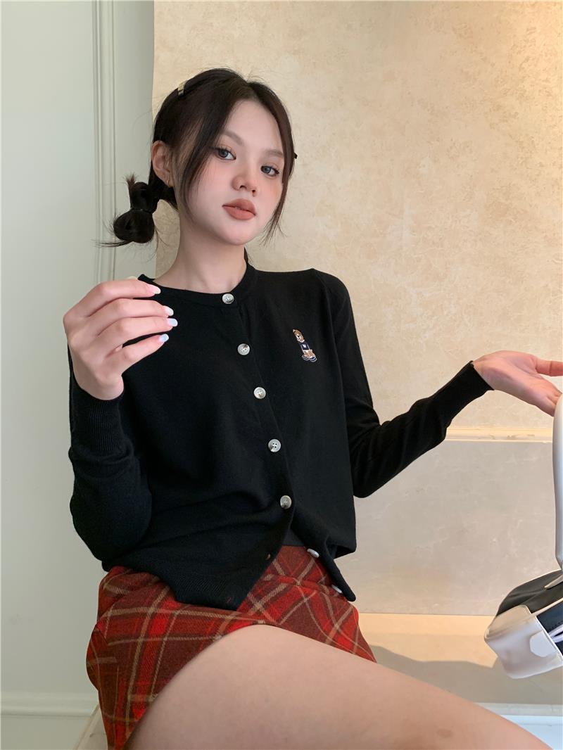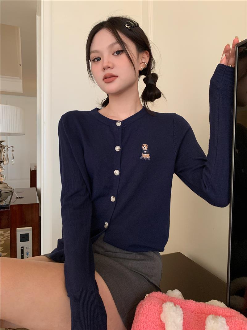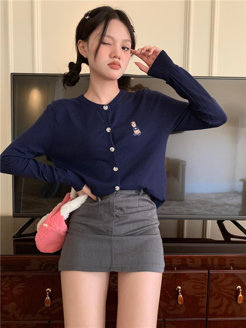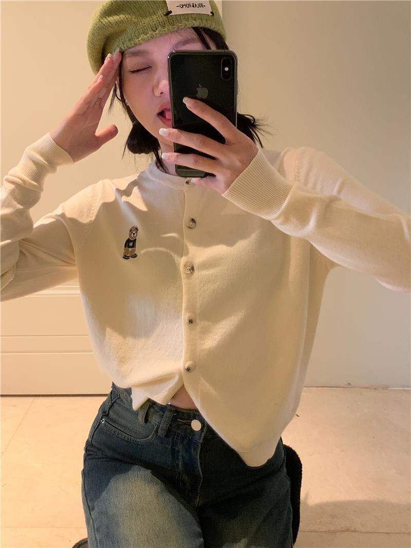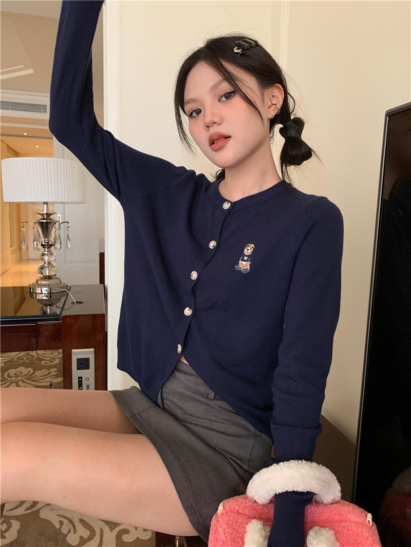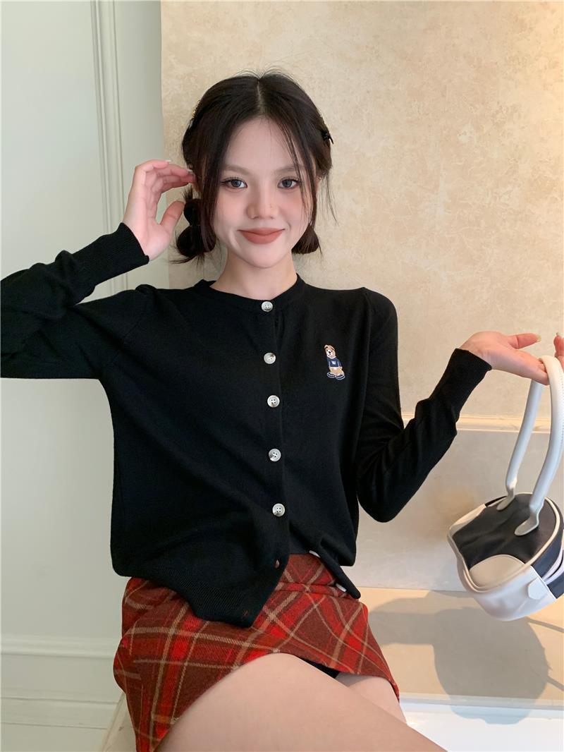 Suéter de manga larga para mujer, cárdigan estiloso, abrigo de punto cálido, suelto y corto, para principios de otoño de 2024