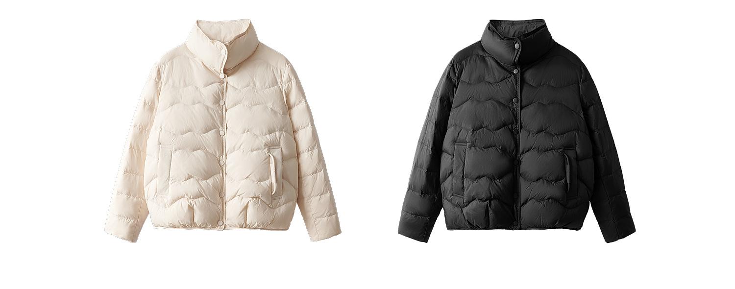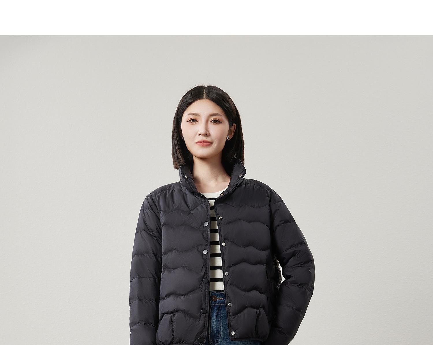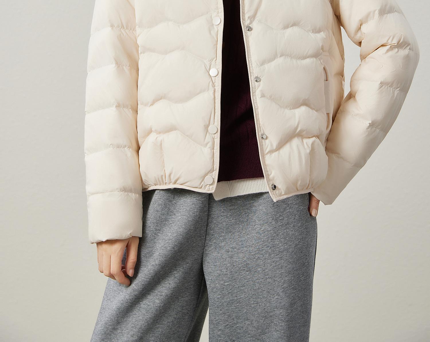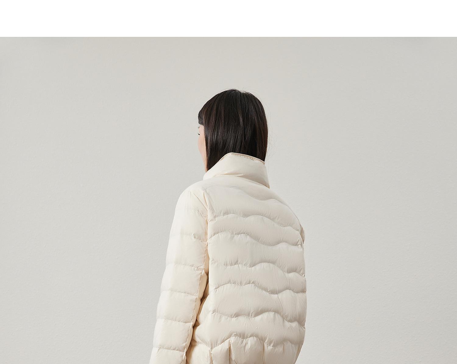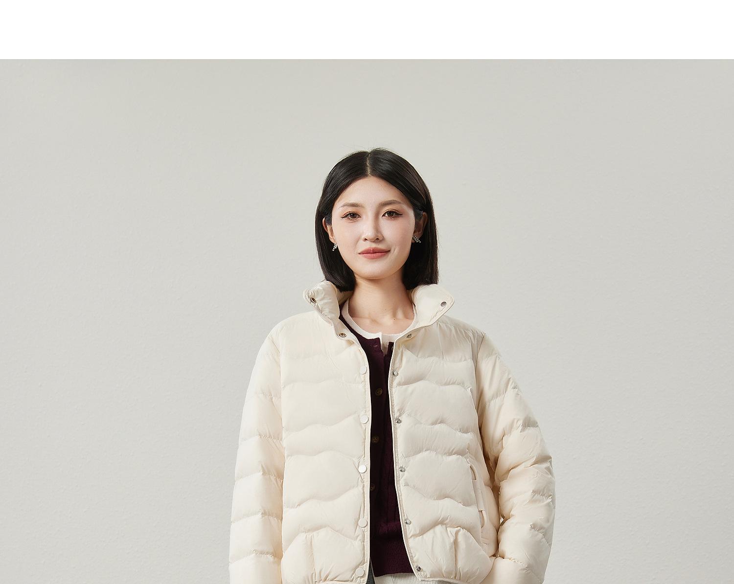 Chaqueta básica informal corta 90 de plumón de pato blanco con cuello alto y acolchado ondulado 24 Otoño e Invierno 044