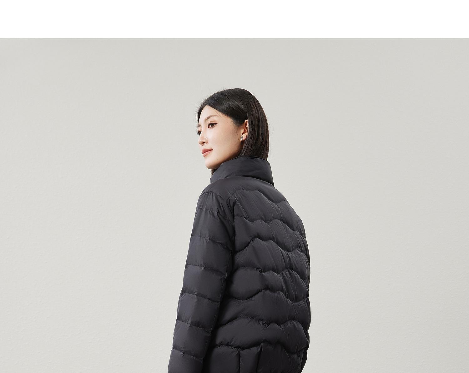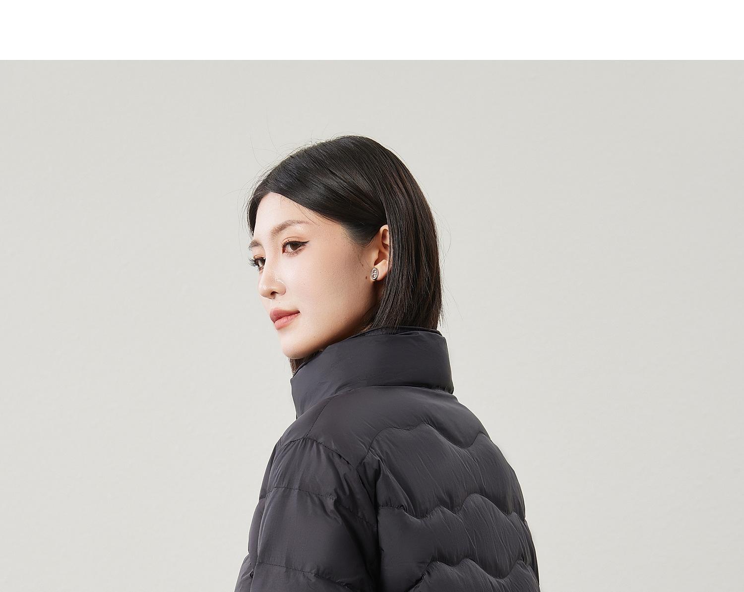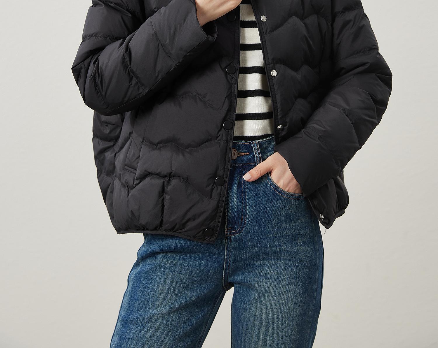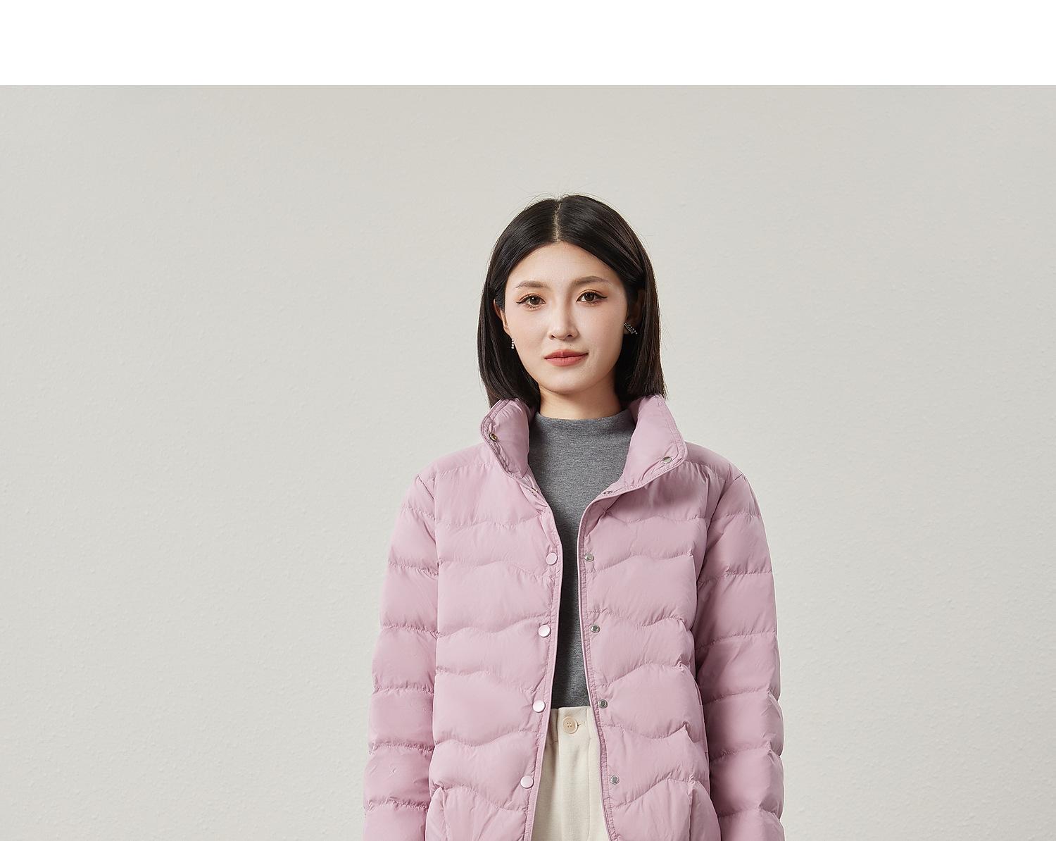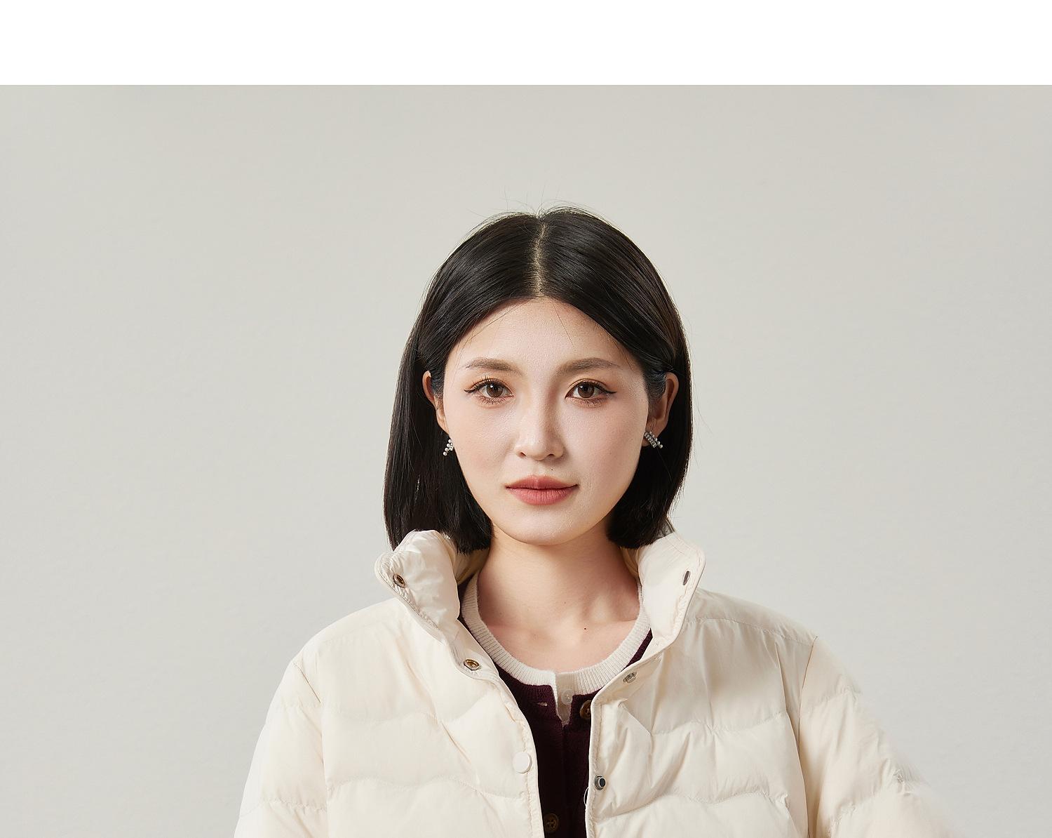 Chaqueta básica informal corta 90 de plumón de pato blanco con cuello alto y acolchado ondulado 24 Otoño e Invierno 044