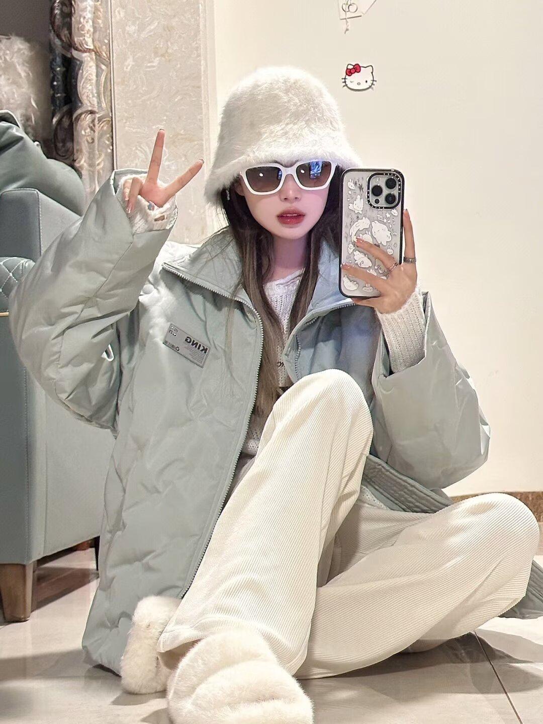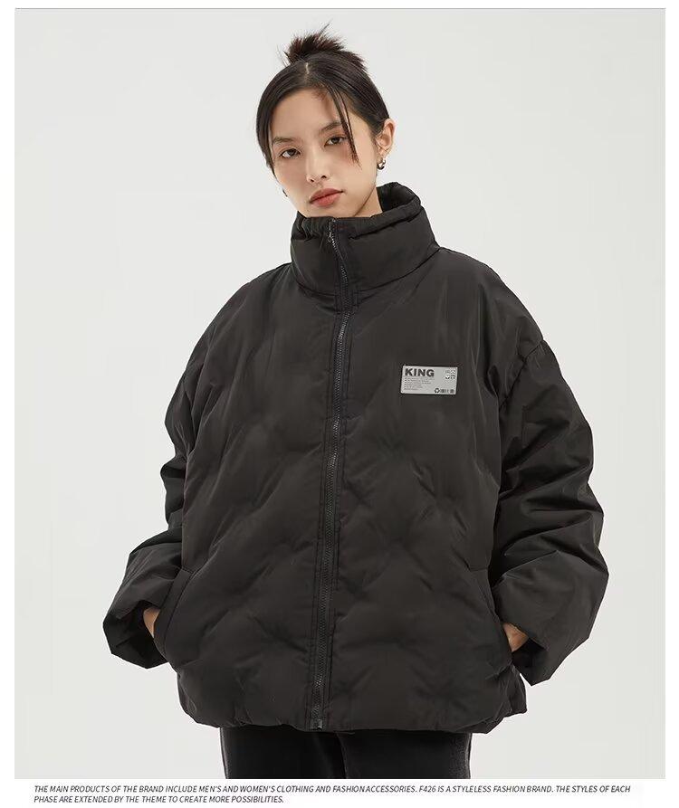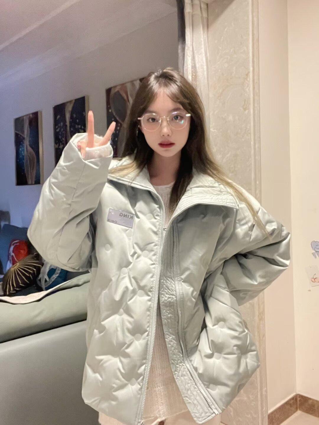 Lingge Algodón Largo Medio para Mujer 2024 Nuevo Estilo Coreano Cuello Alto Juventud Marca de Moda Nacional Invierno Top Chaqueta Manga Larga