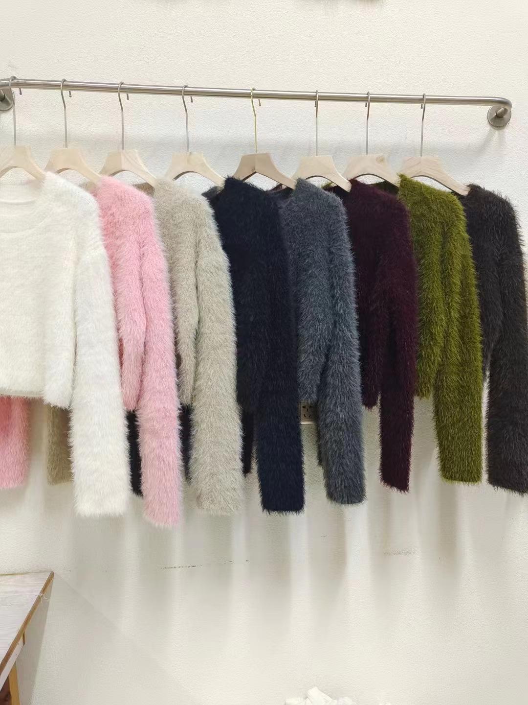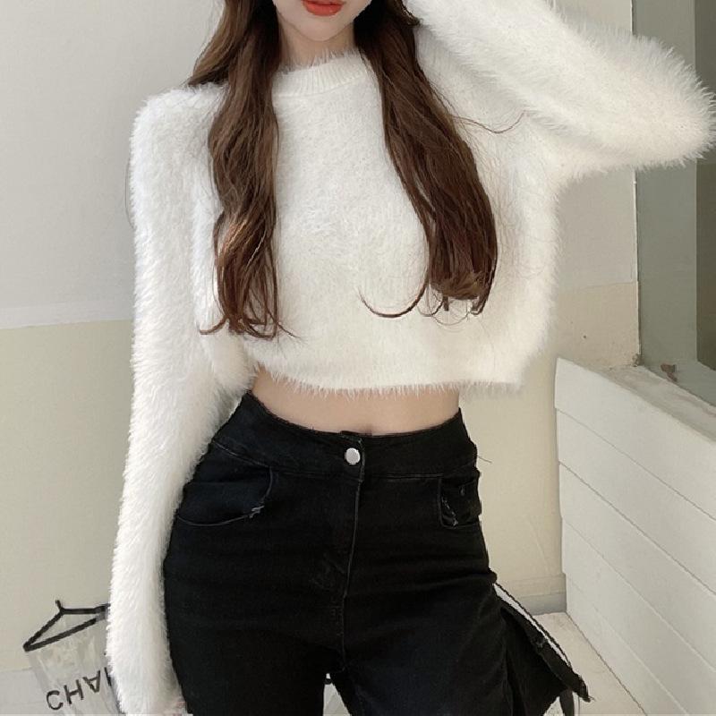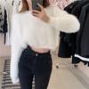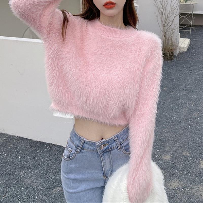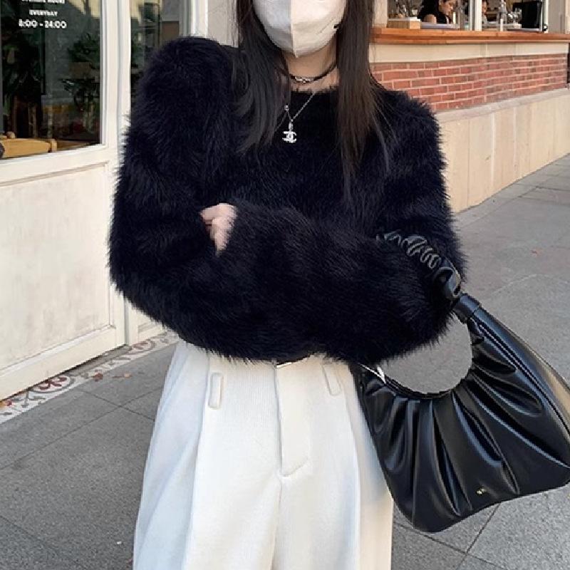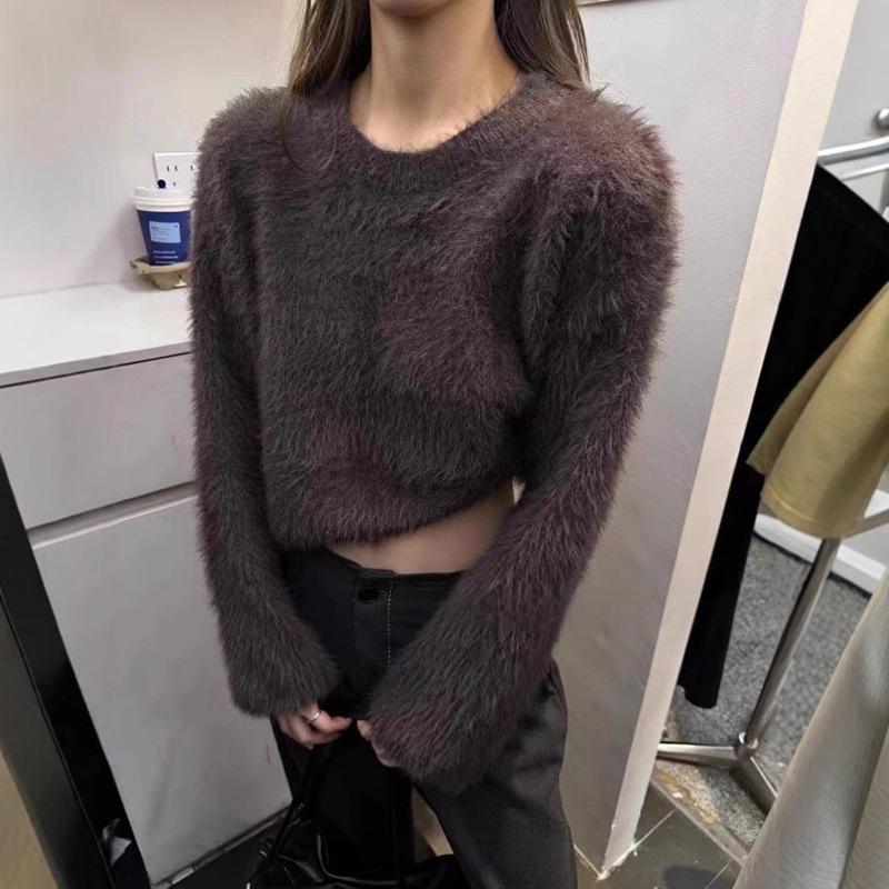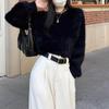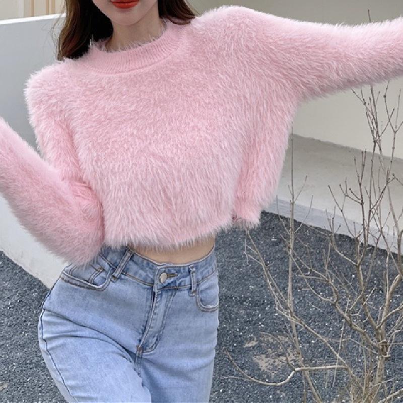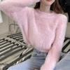 Suéter de punto de terciopelo visón de imitación nuevo de otoño e invierno para mujer, estilo coreano, viento suave y ceroso, moda versátil, top de suéter corto
