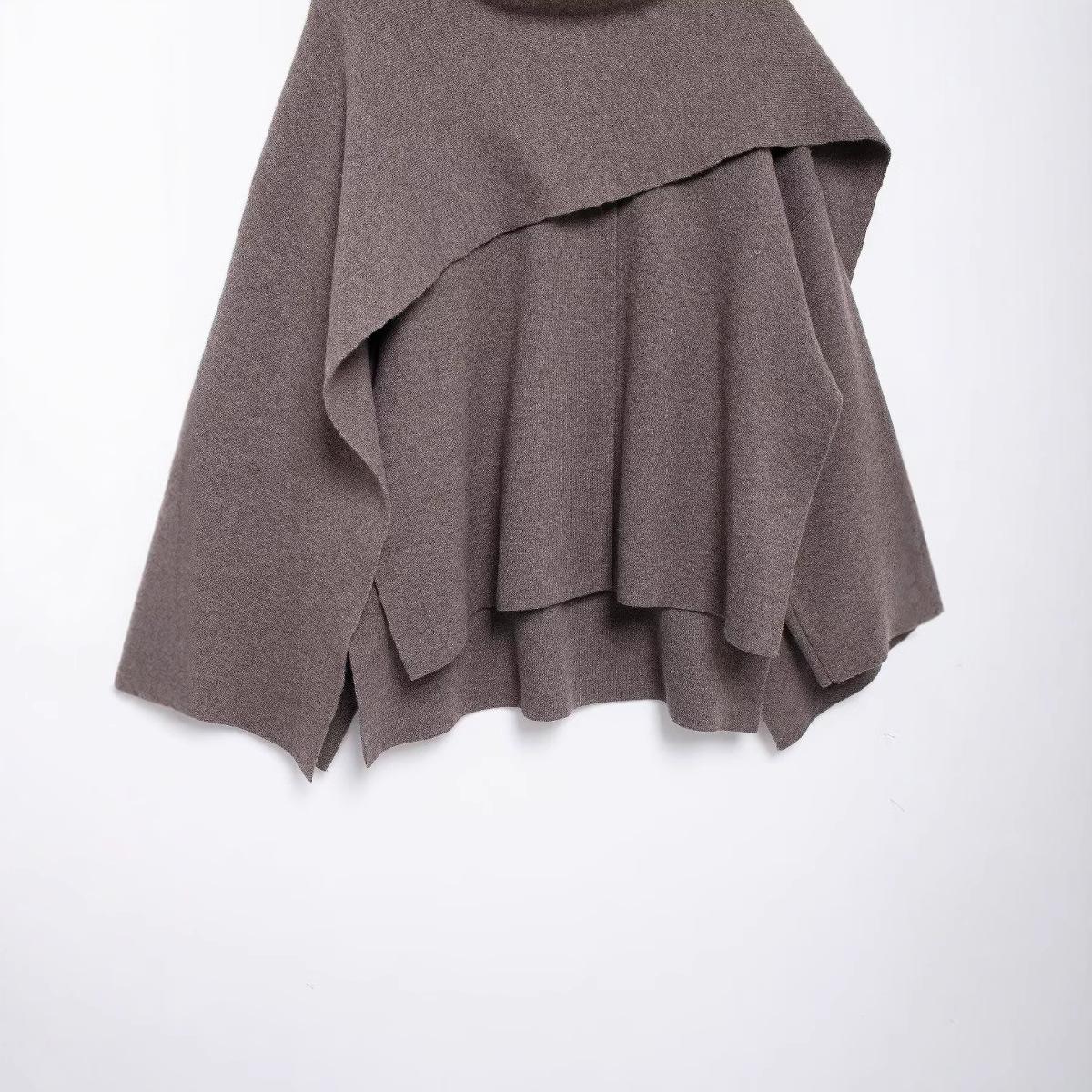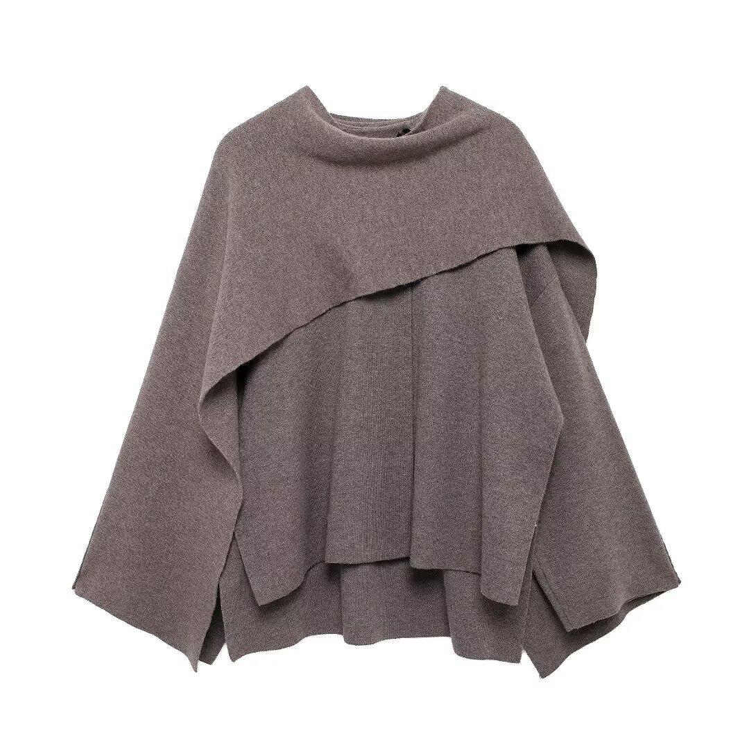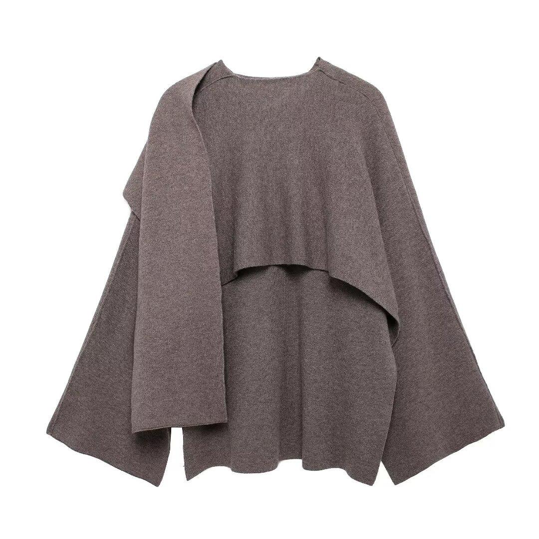 Abrigo Suéter Corto Cómodo Holgado Tejido Estilo Capa Estilo Europeo y Americano
