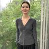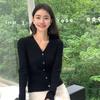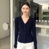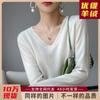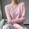 Suéter de cachemira de montaña con cuello en V para mujer, suéter de manga larga grueso para otoño e invierno, nuevo abrigo de punto fino ajustado de color sólido