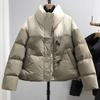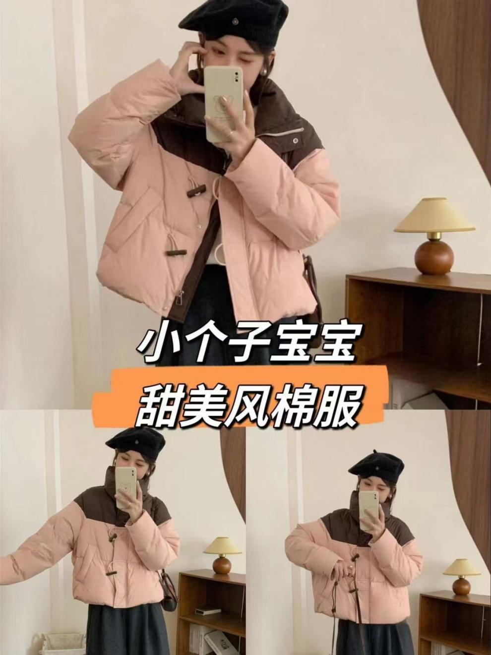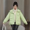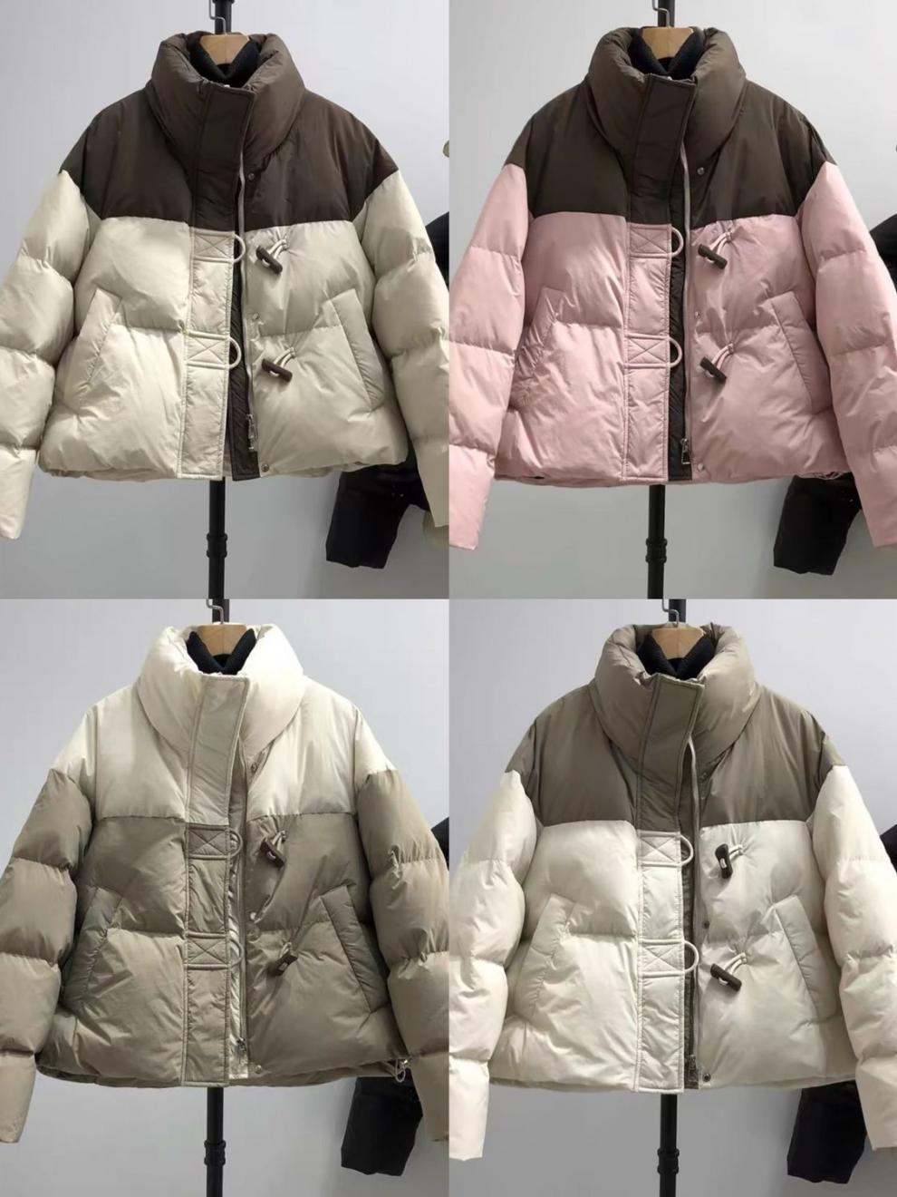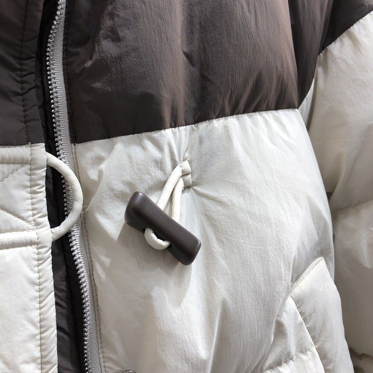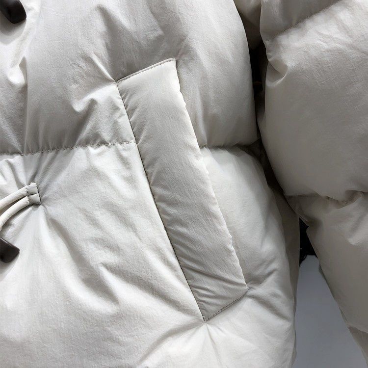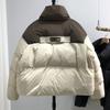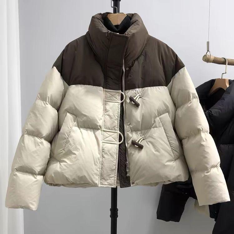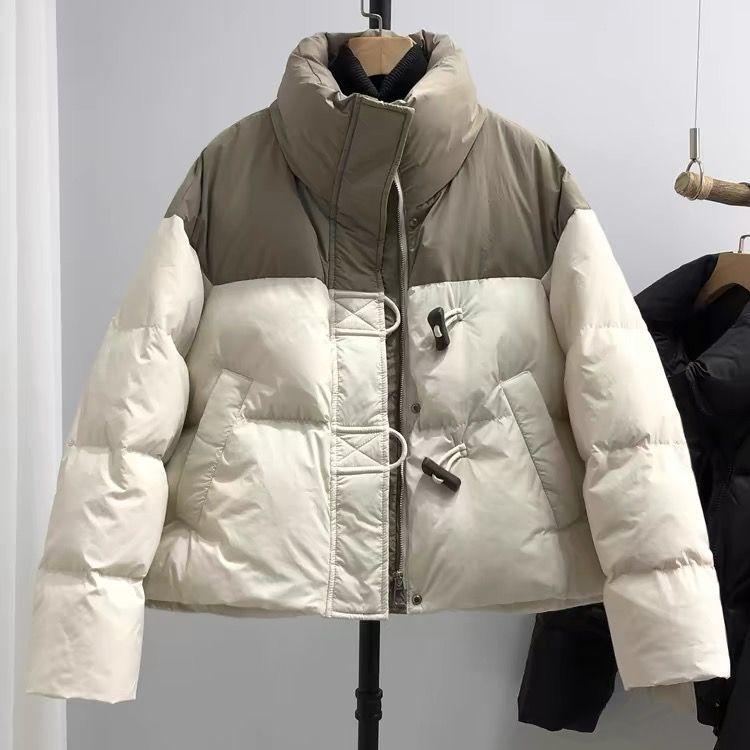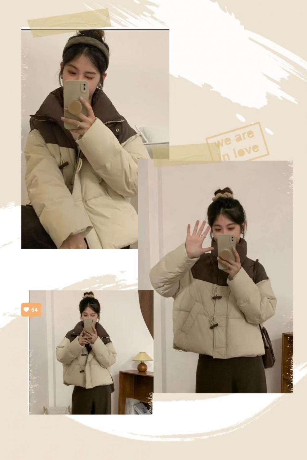 Chaqueta corta acolchada de algodón estilo escolar blanca [hebilla de cuerno] invierno costuras sueltas color contrastante chaqueta acolchada de algodón
