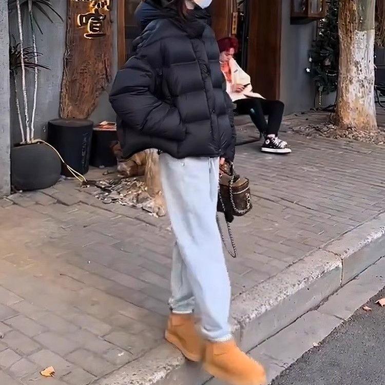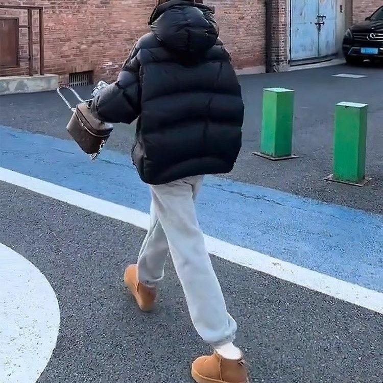 Abrigo Acolchado Negro Corto de Algodón con Cuello Tortuga para Mujer Otoño e Invierno 2025 Nuevo Abrigo Acolchado con Capucha