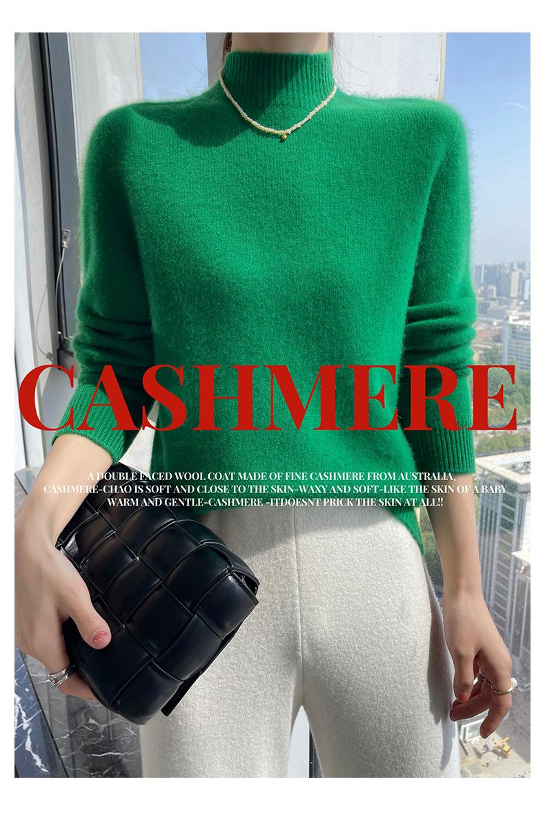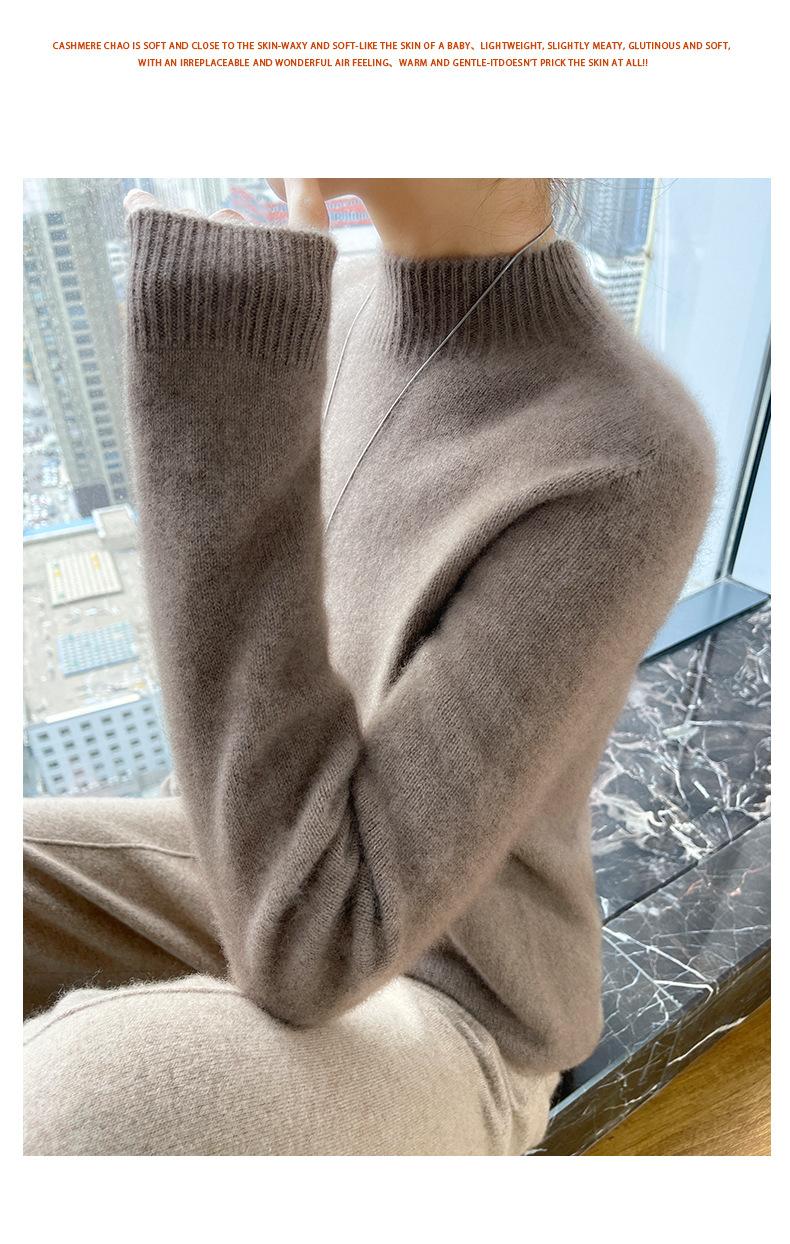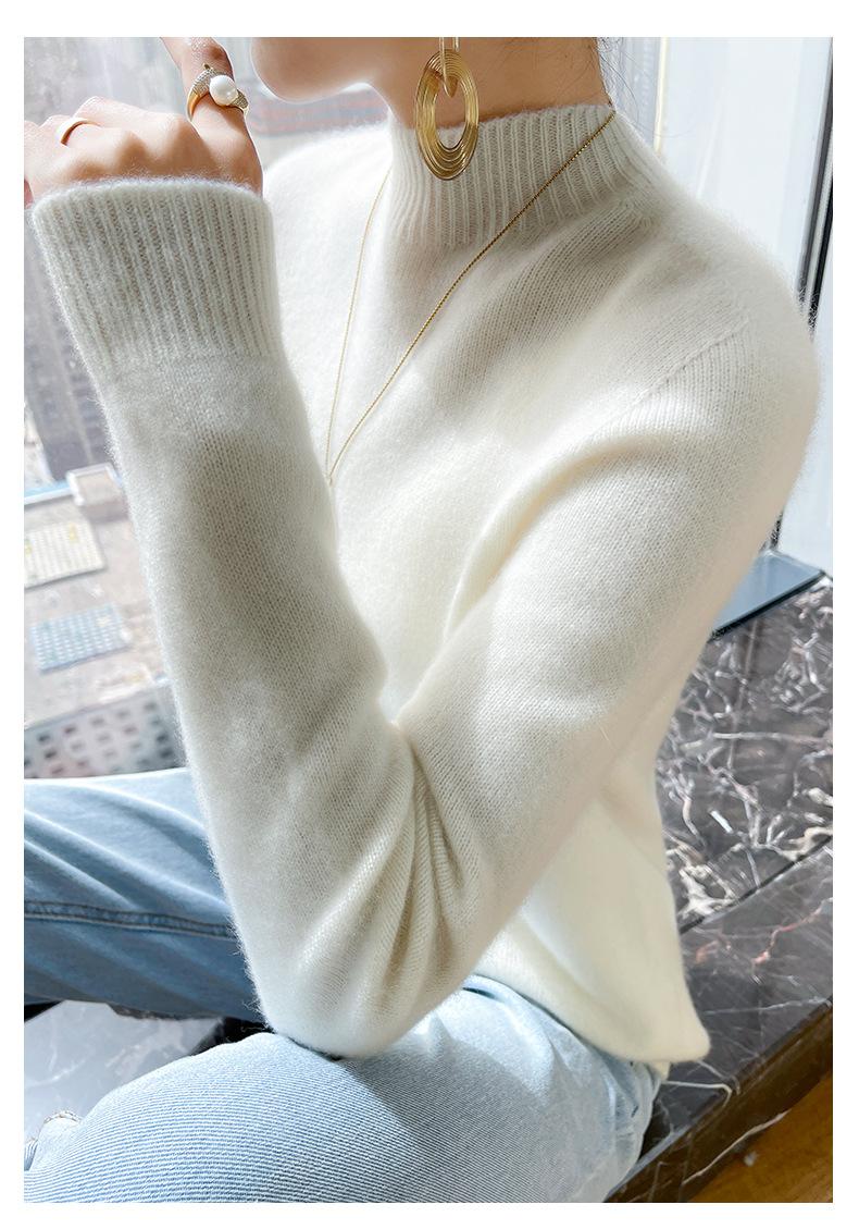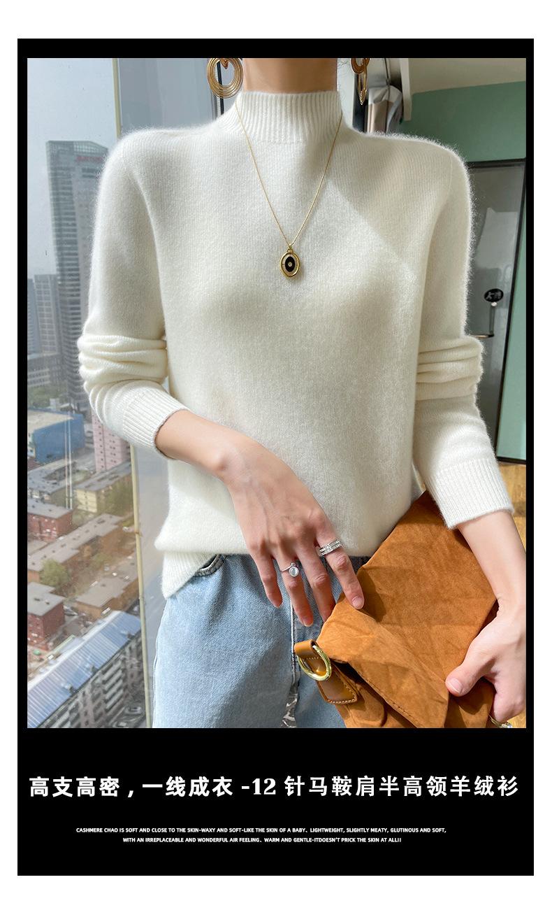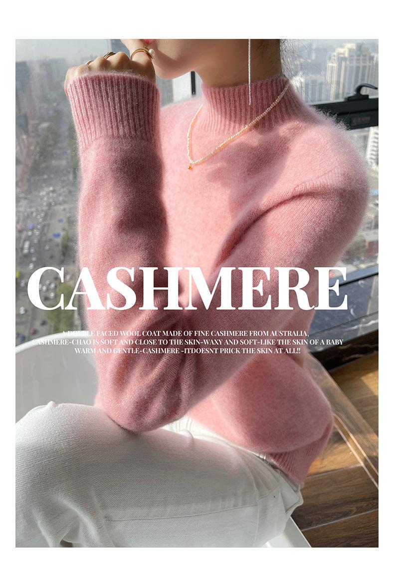 Suéter de Cachemira de Cuello Alto Medio para Mujer, Suéter Grueso de Hombro Raglán, Otoño e Invierno, Nueva Moda, Suelto, de Punto, Base Interior