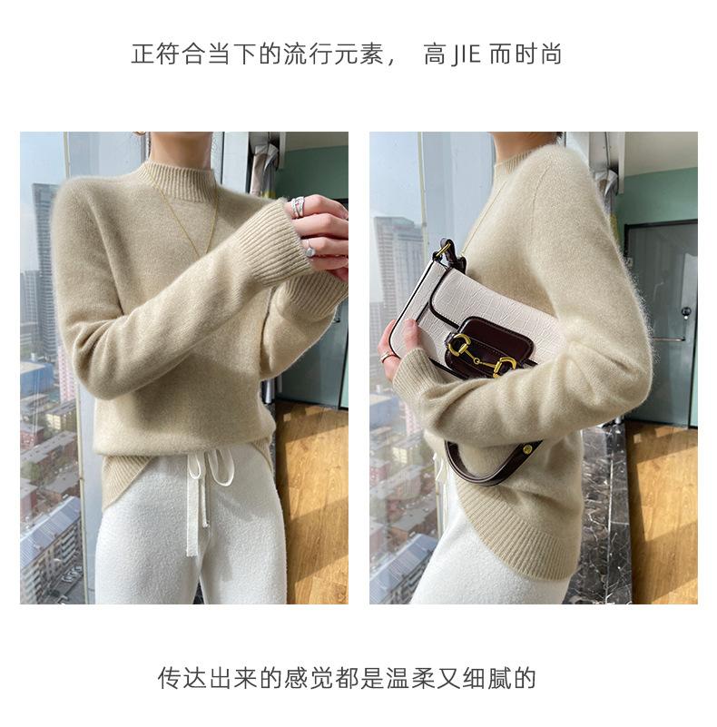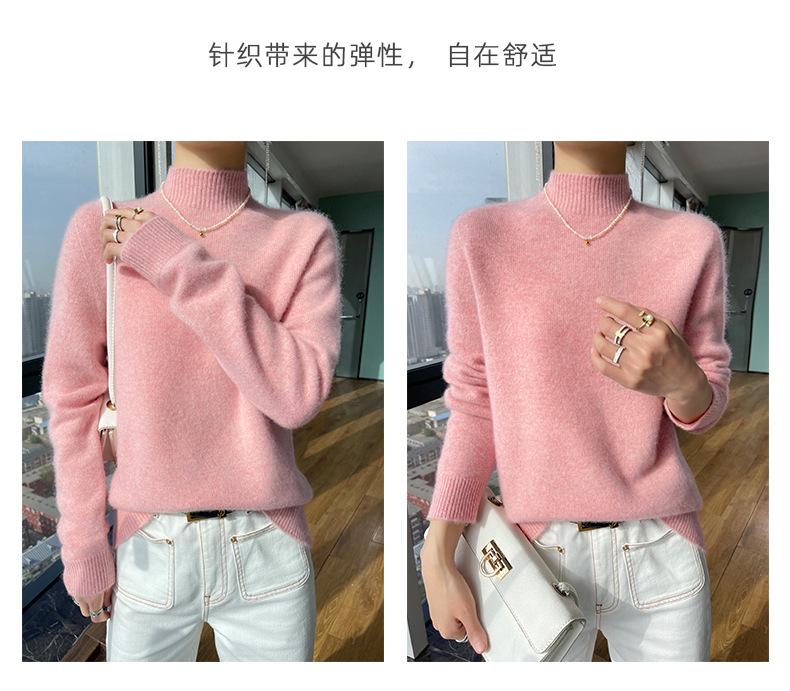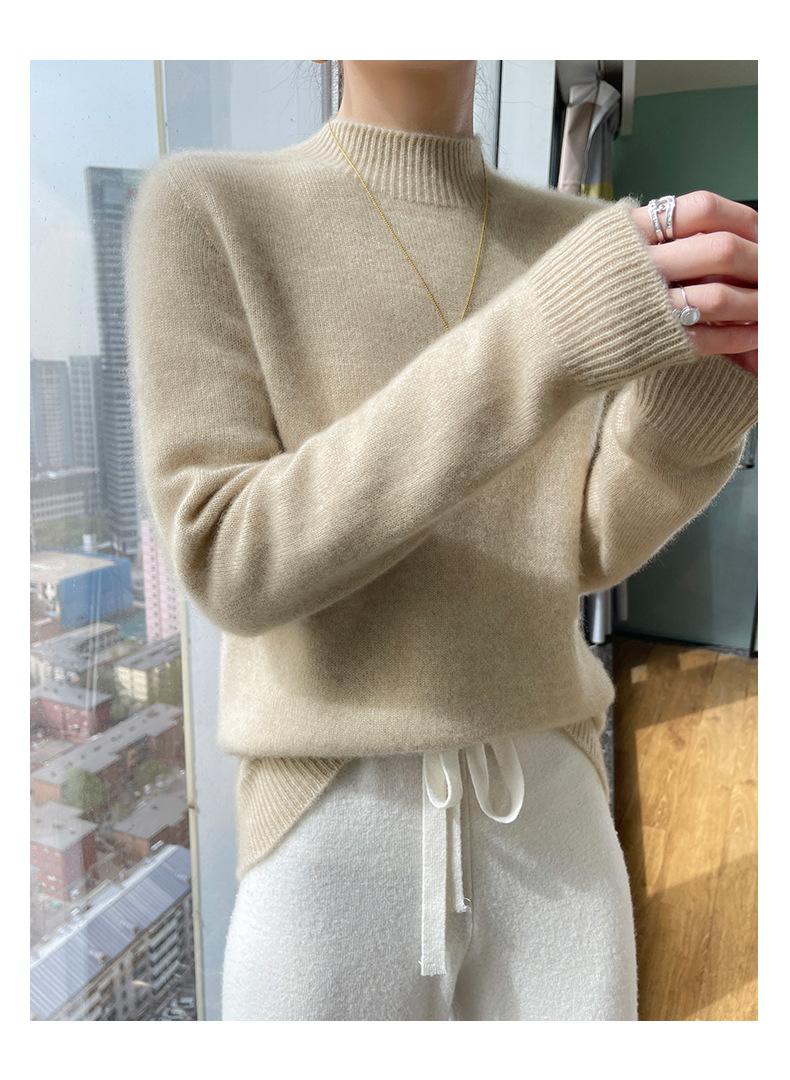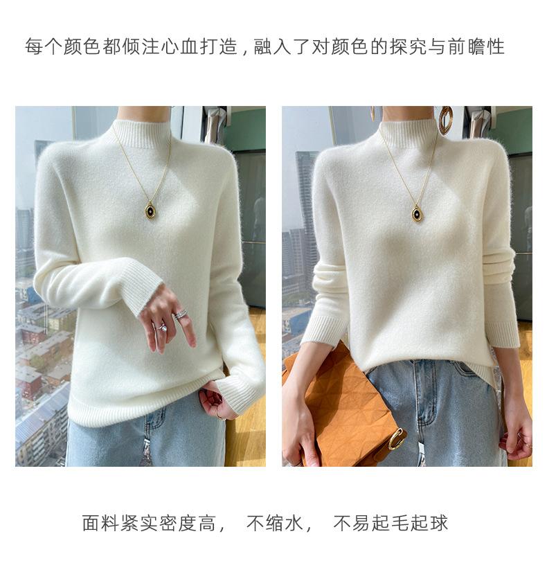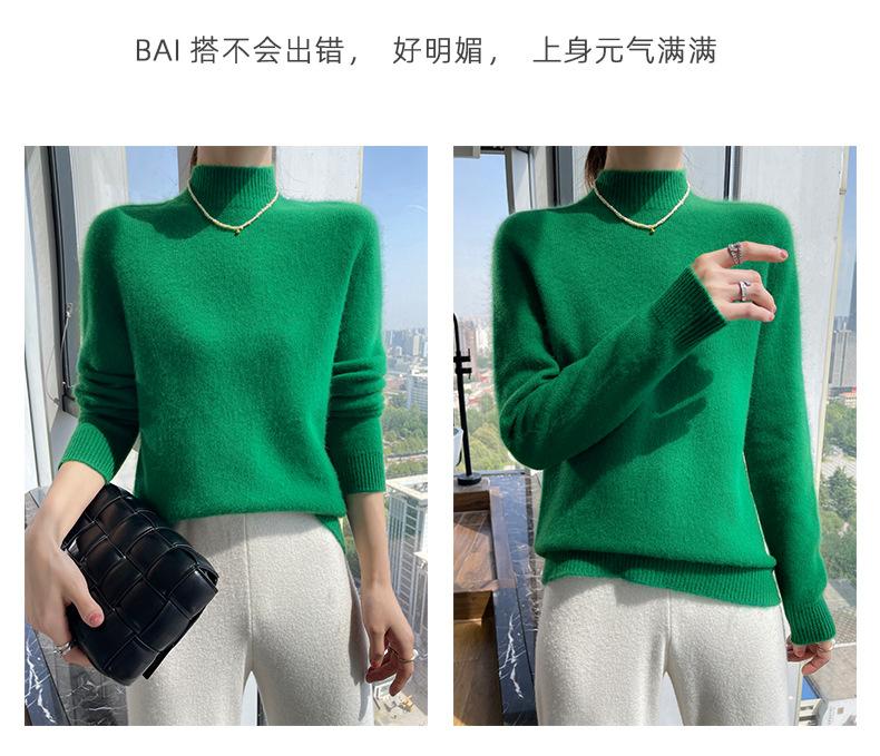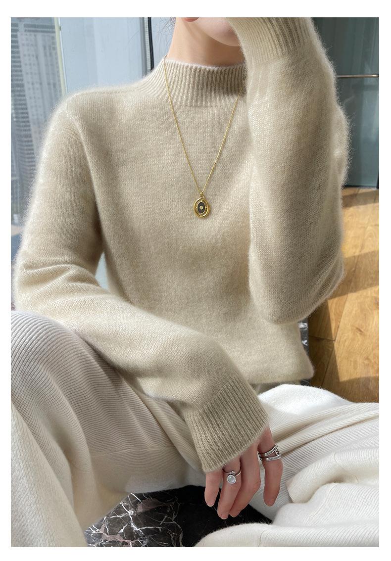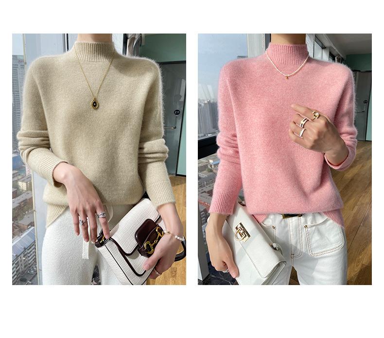 Suéter de Cachemira de Cuello Alto Medio para Mujer, Suéter Grueso de Hombro Raglán, Otoño e Invierno, Nueva Moda, Suelto, de Punto, Base Interior