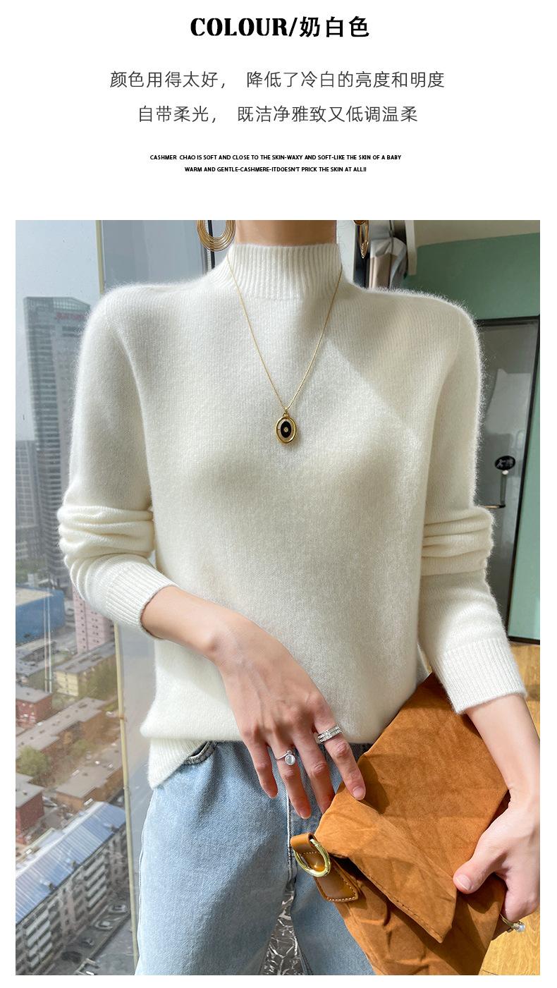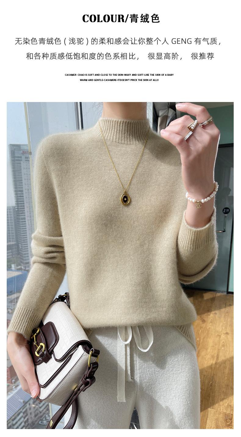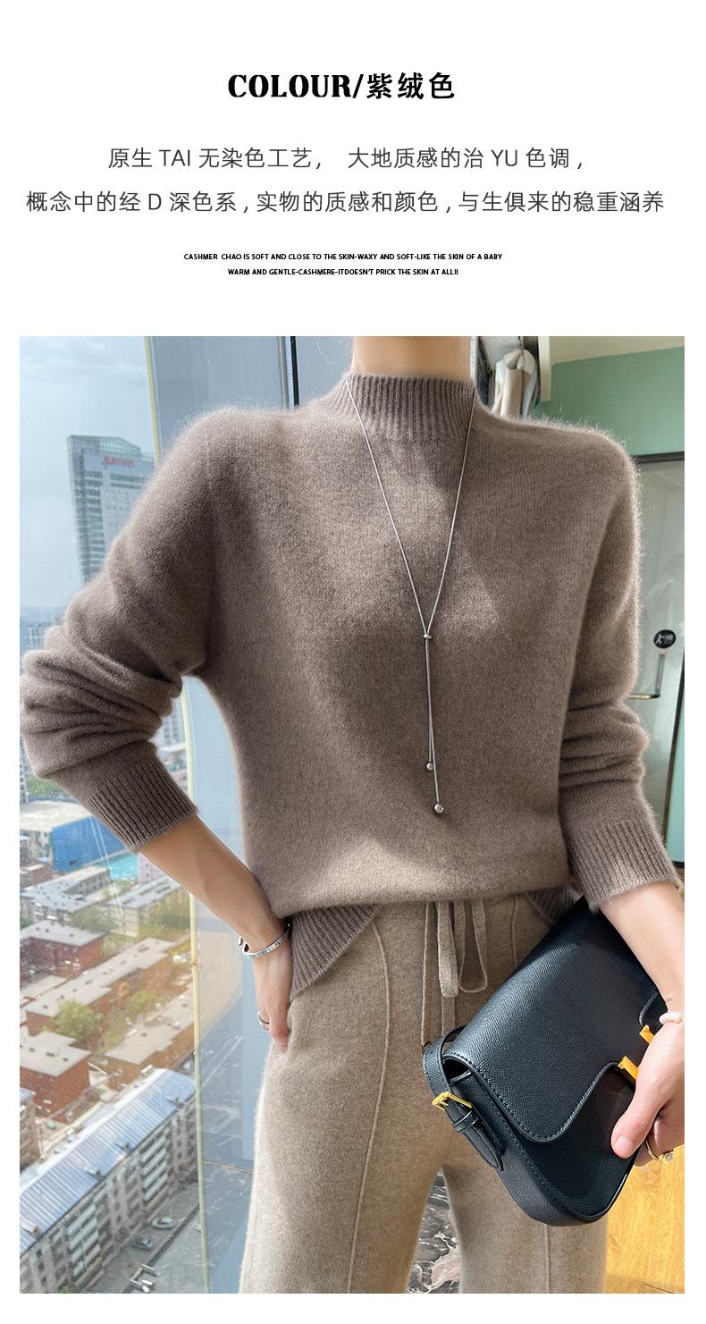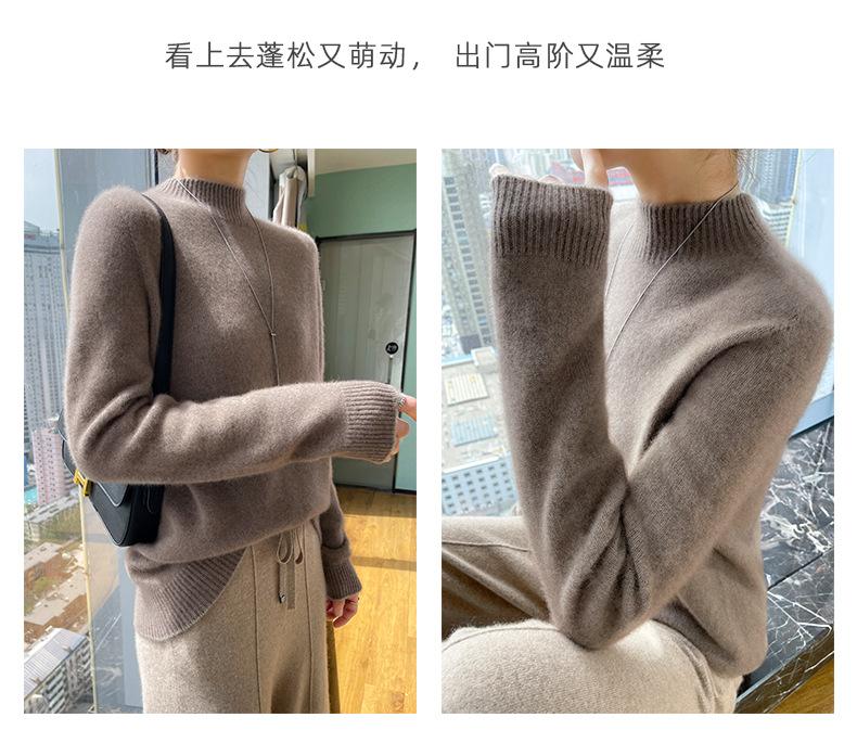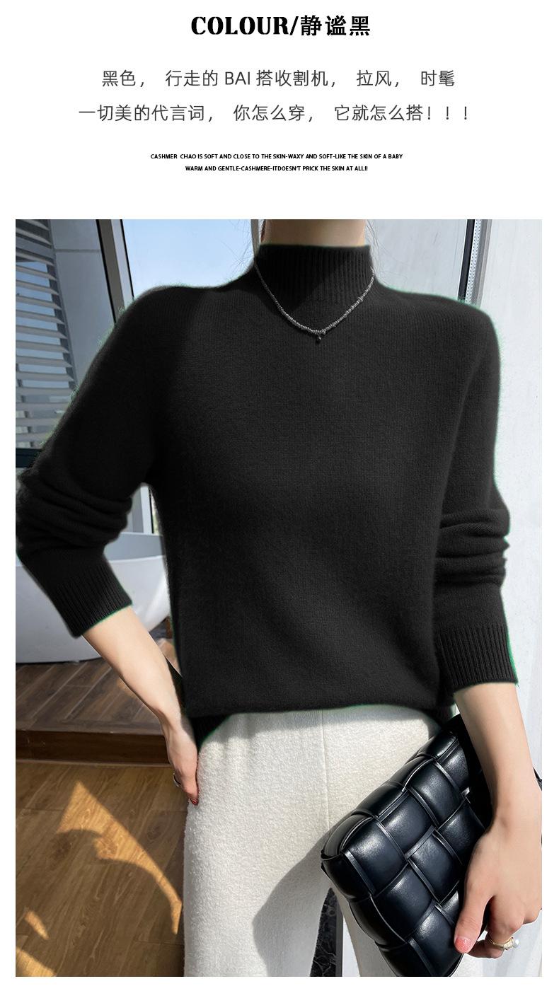 Suéter de Cachemira de Cuello Alto Medio para Mujer, Suéter Grueso de Hombro Raglán, Otoño e Invierno, Nueva Moda, Suelto, de Punto, Base Interior
