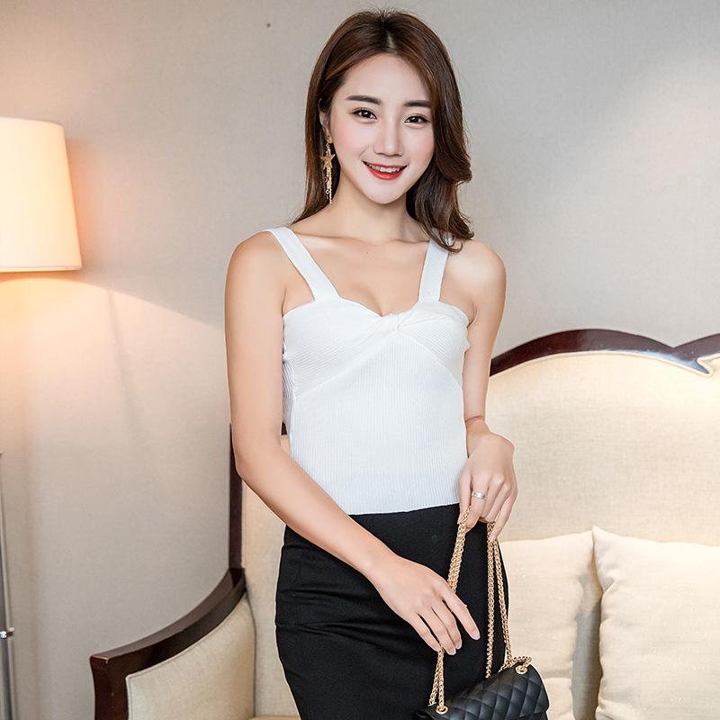Verano Nuevo Camisola Venta al por Mayor Estilo Coreano Sexy Tirante Fino Sin Mangas Top de Moda para Mujer Camiseta Básica