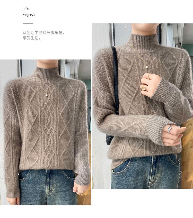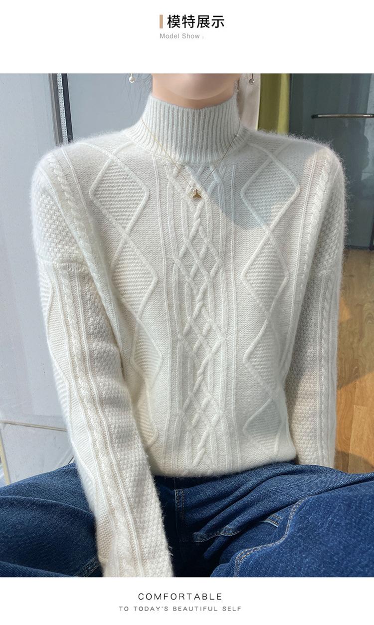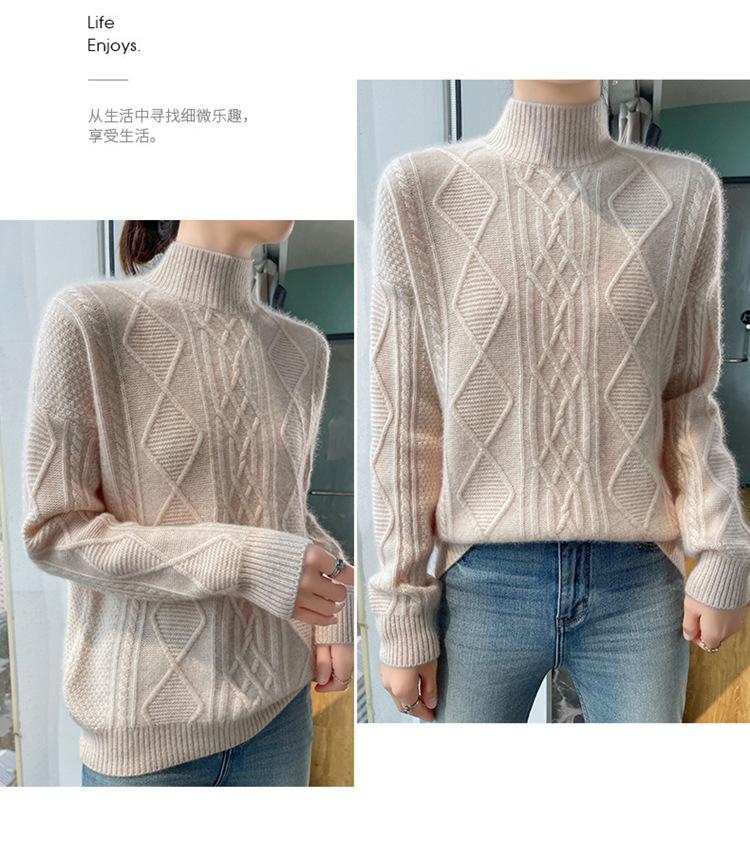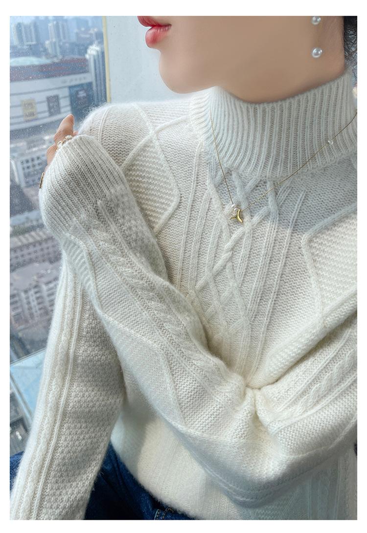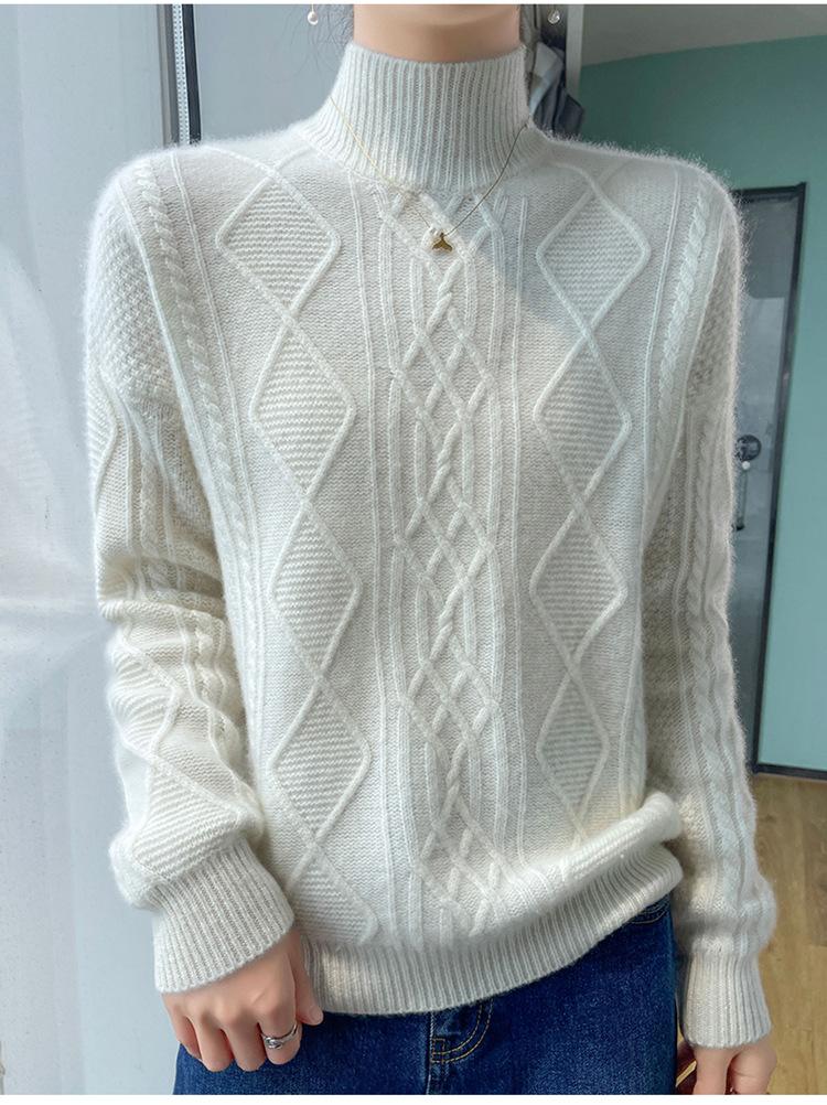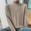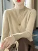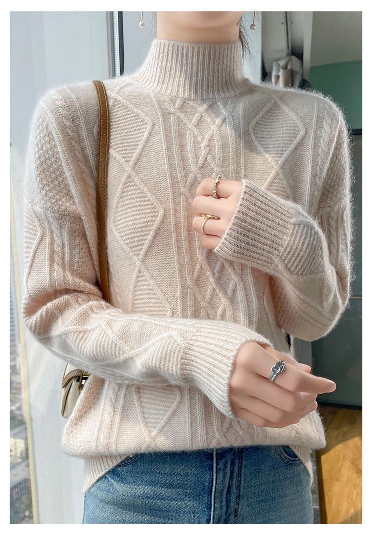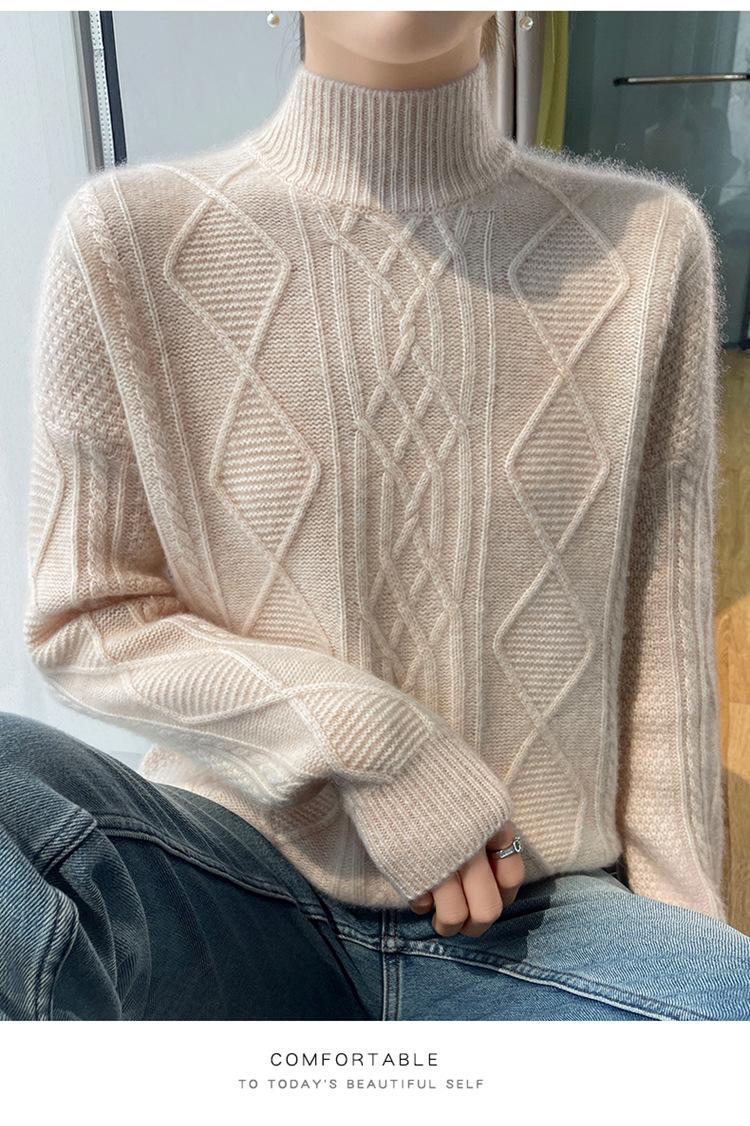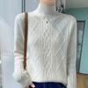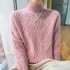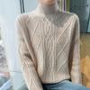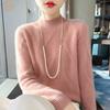 Suéter de lana virgen de otoño e invierno, cuello alto medio grueso, camisa de punto suelta de manga larga para mujer, combinable con todo