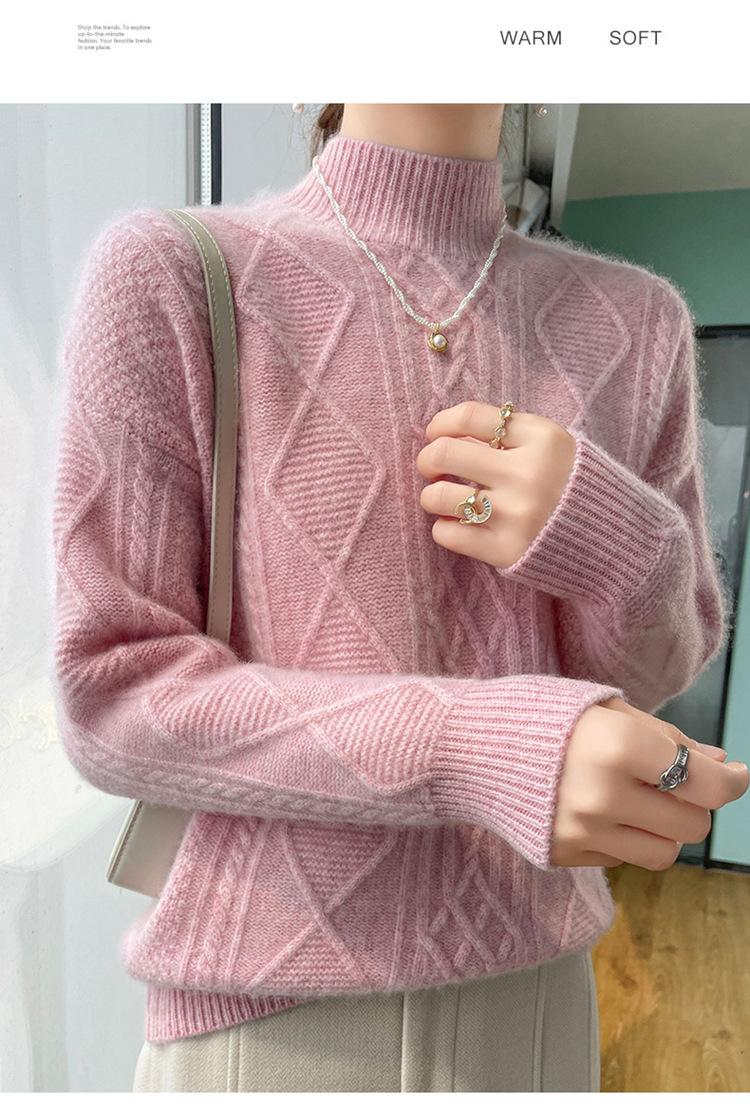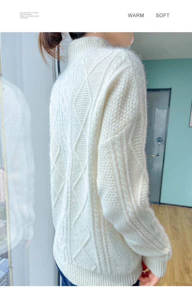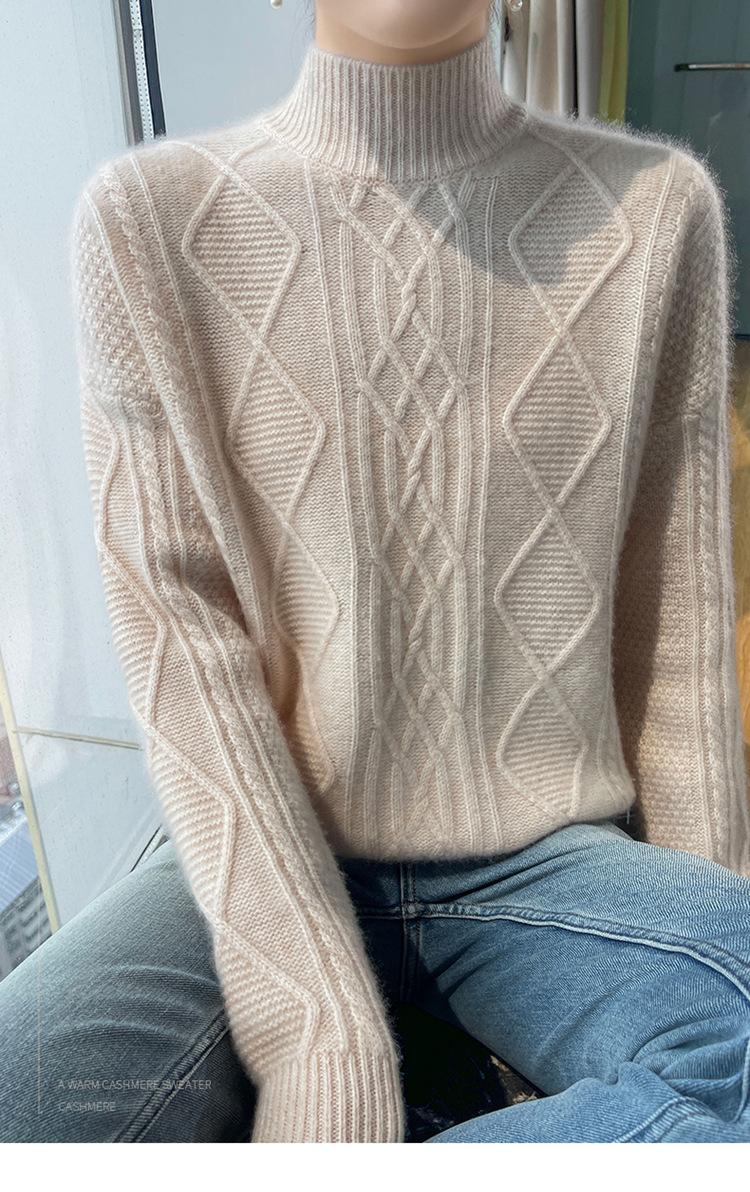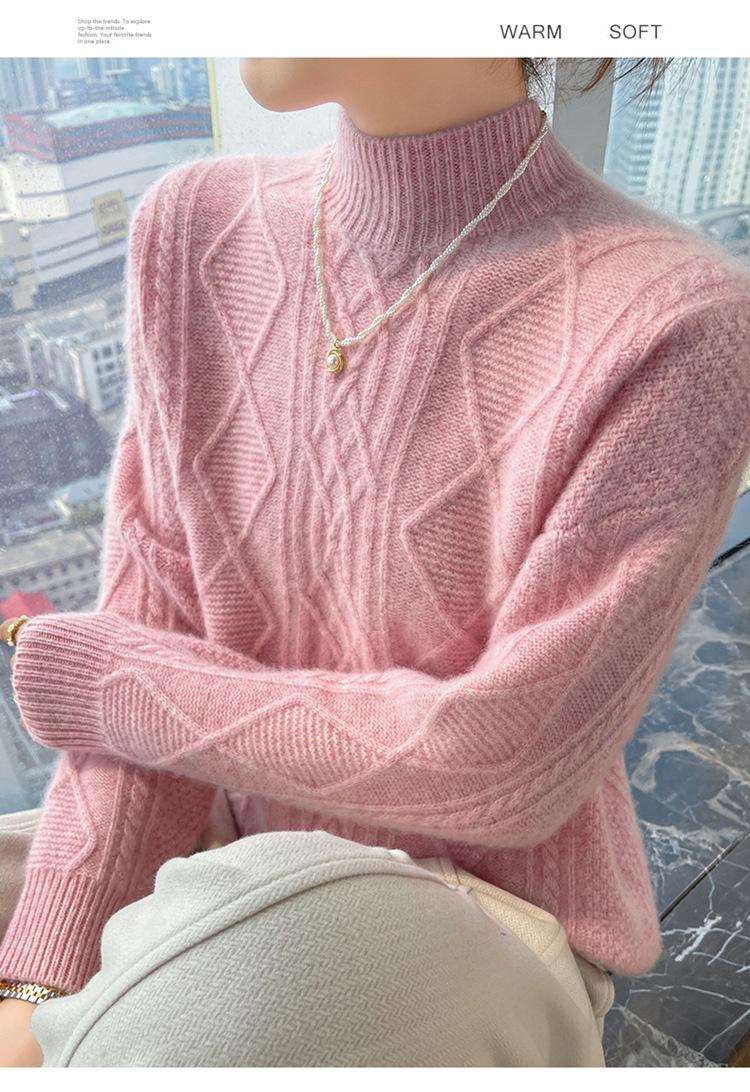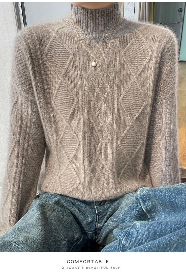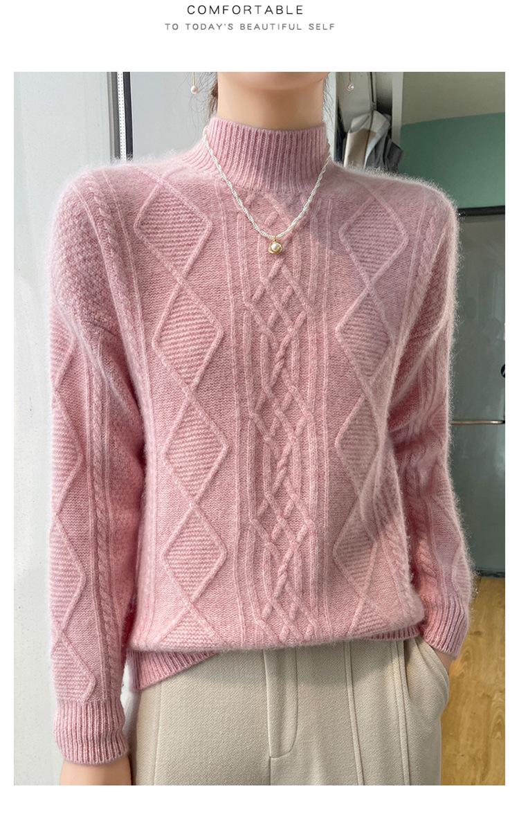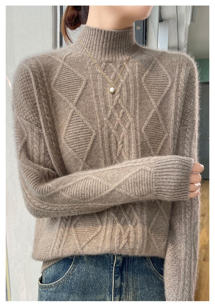 Suéter de lana virgen de otoño e invierno, cuello alto medio grueso, camisa de punto suelta de manga larga para mujer, combinable con todo