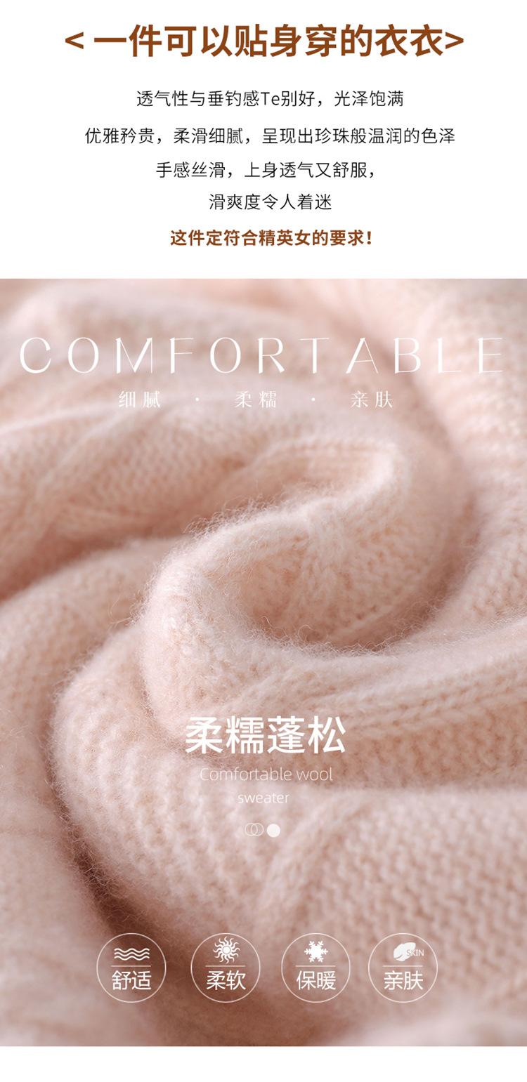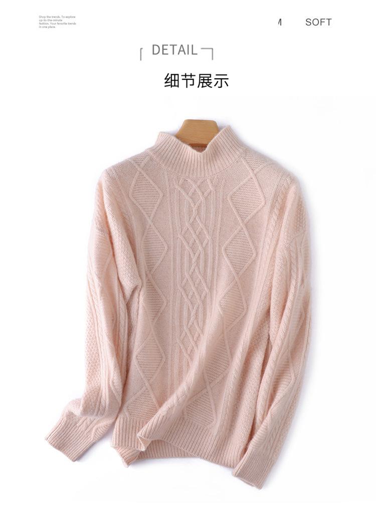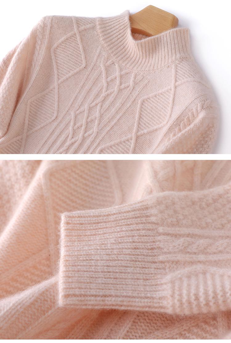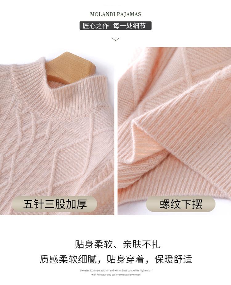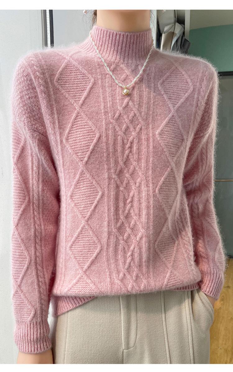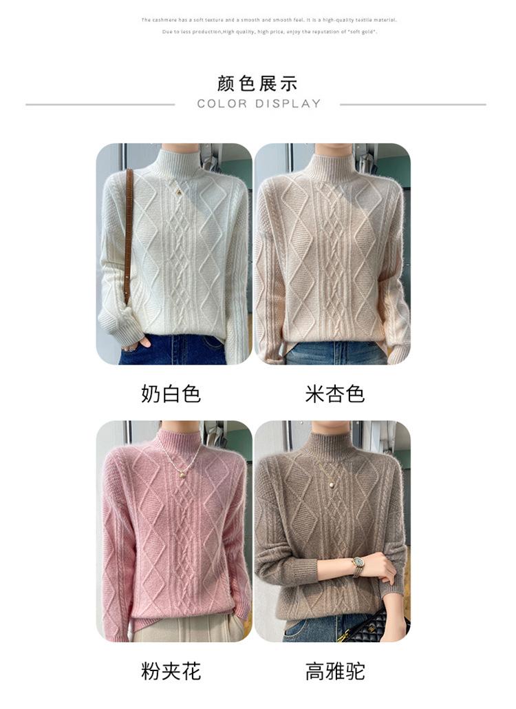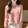 Suéter de lana virgen de otoño e invierno, cuello alto medio grueso, camisa de punto suelta de manga larga para mujer, combinable con todo
