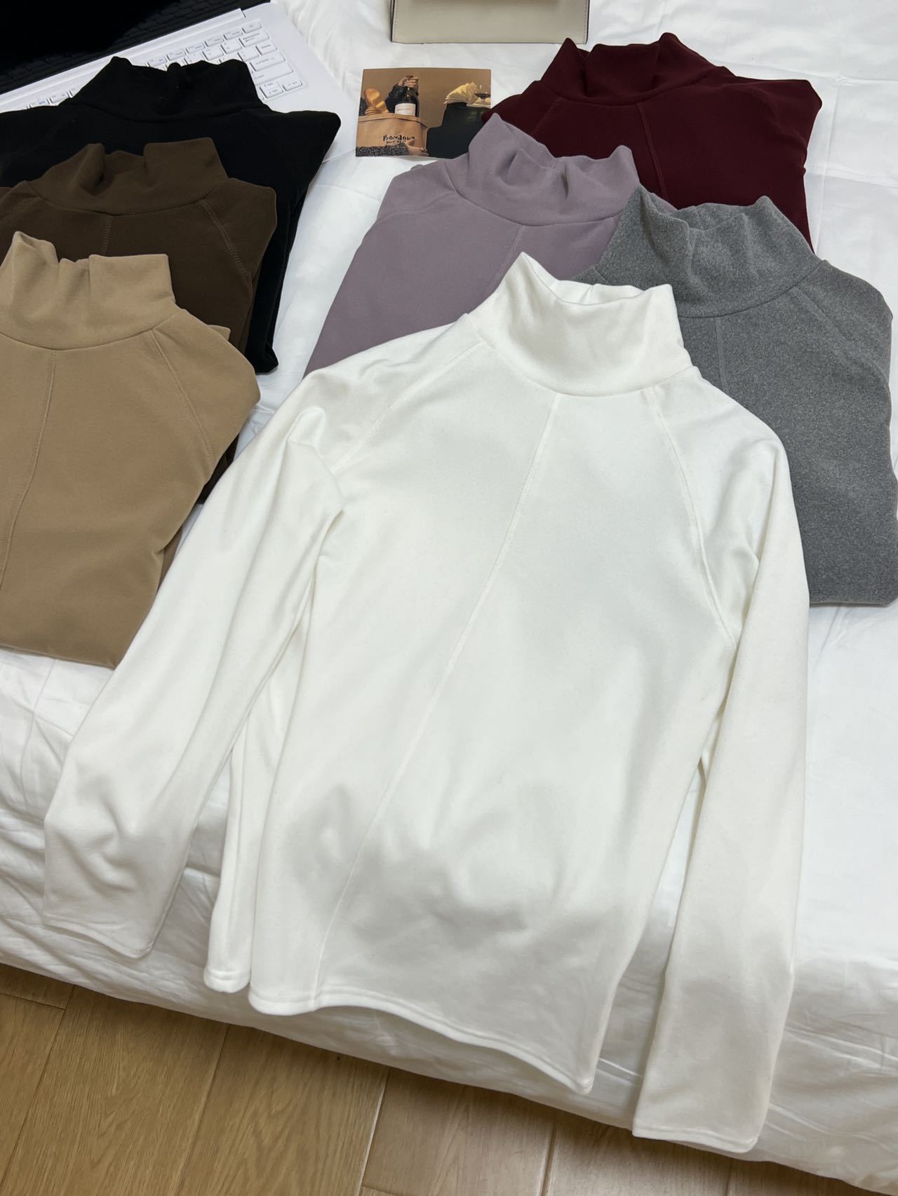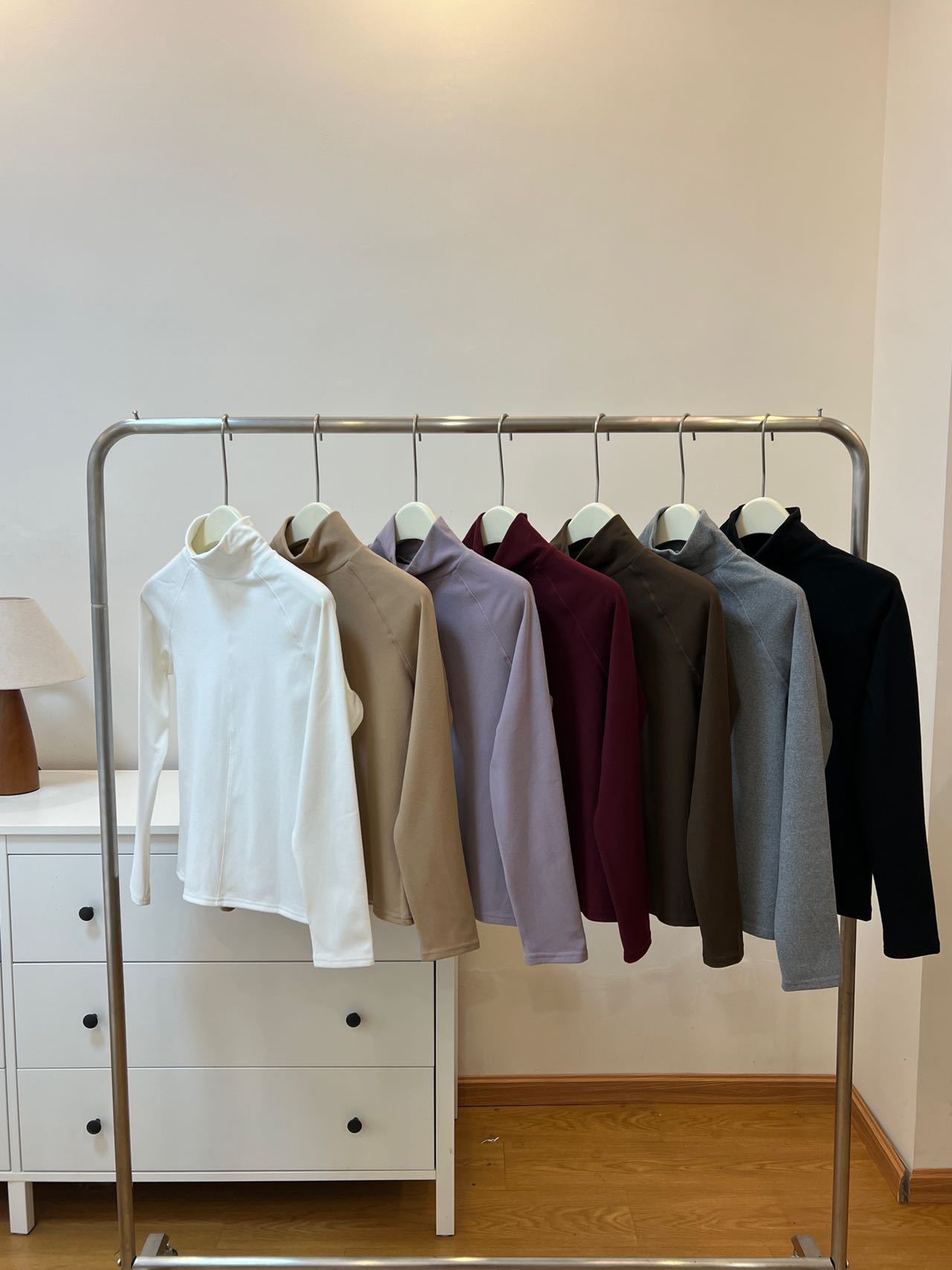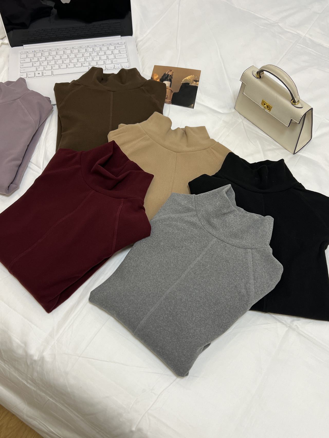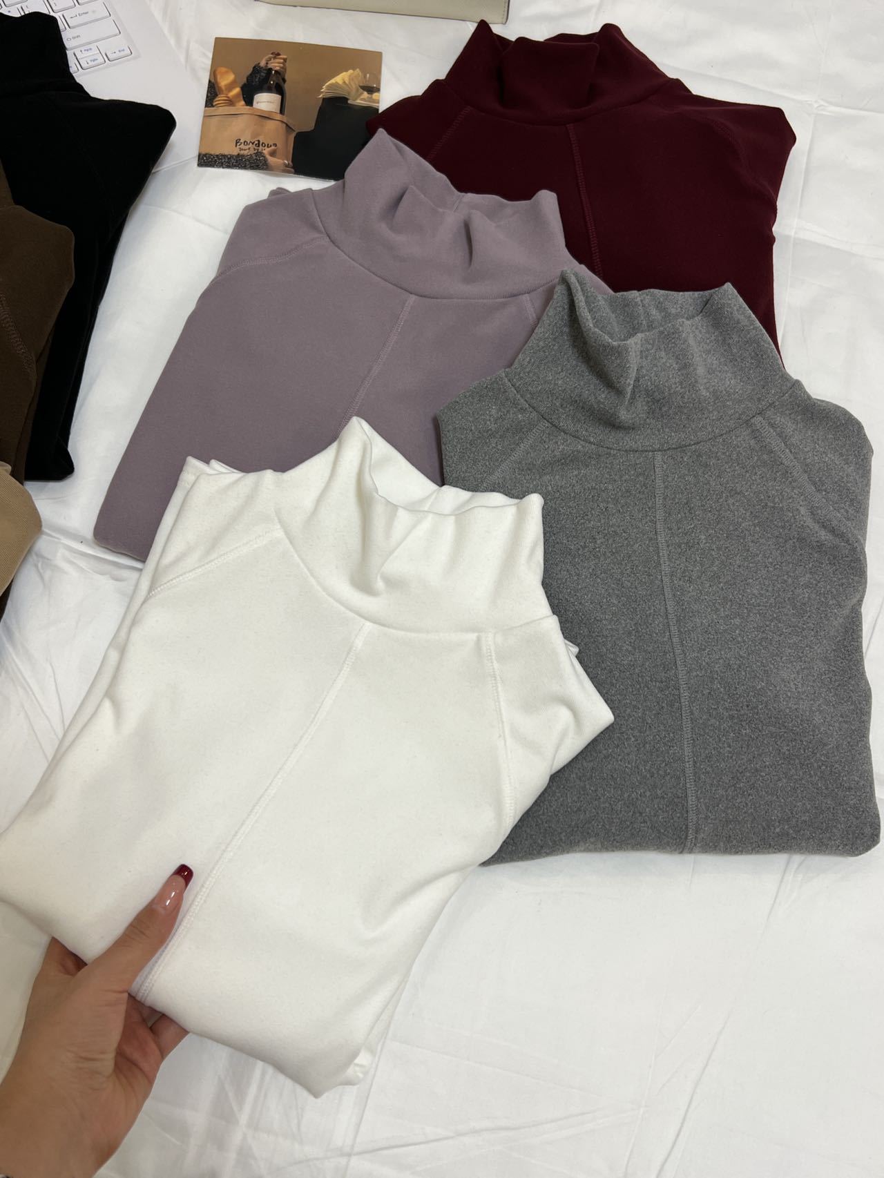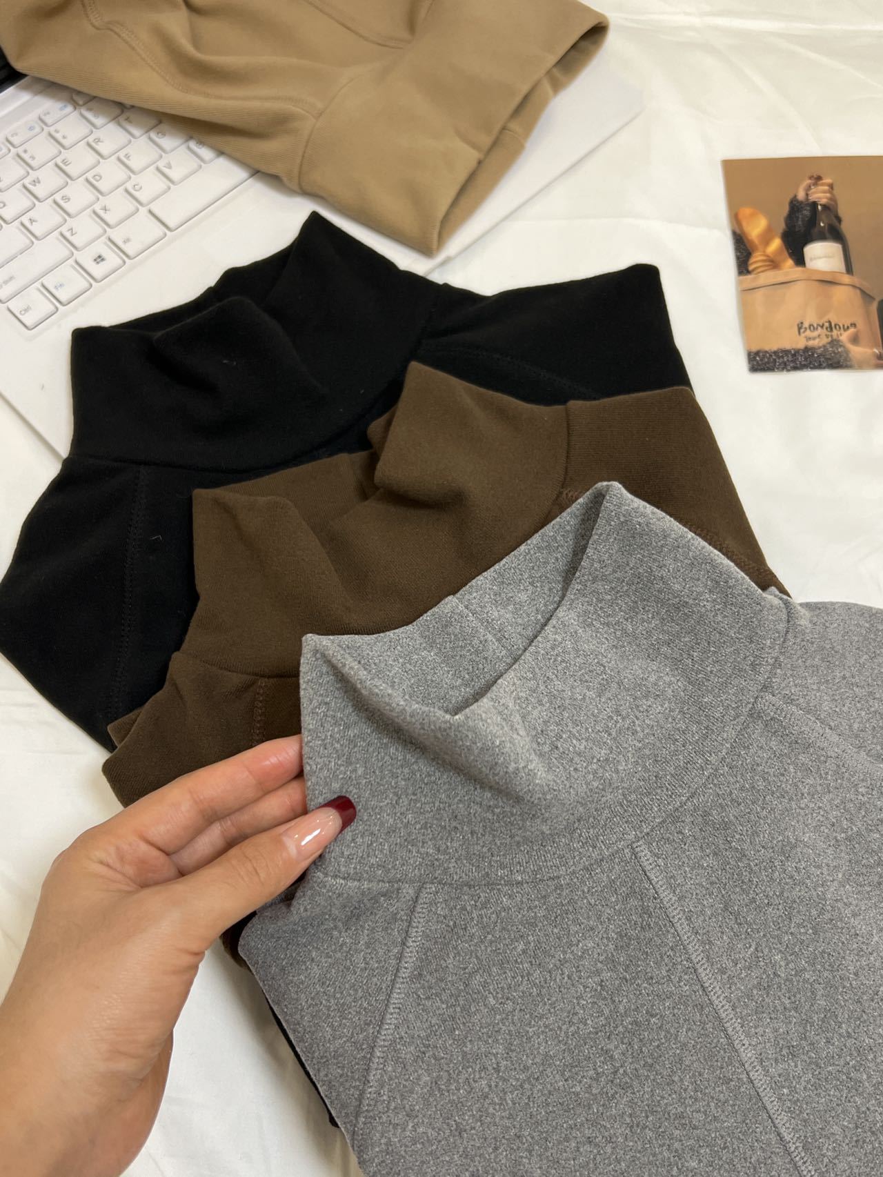 Camisa básica ajustada de polar con cuello alto y manga larga para otoño e invierno.