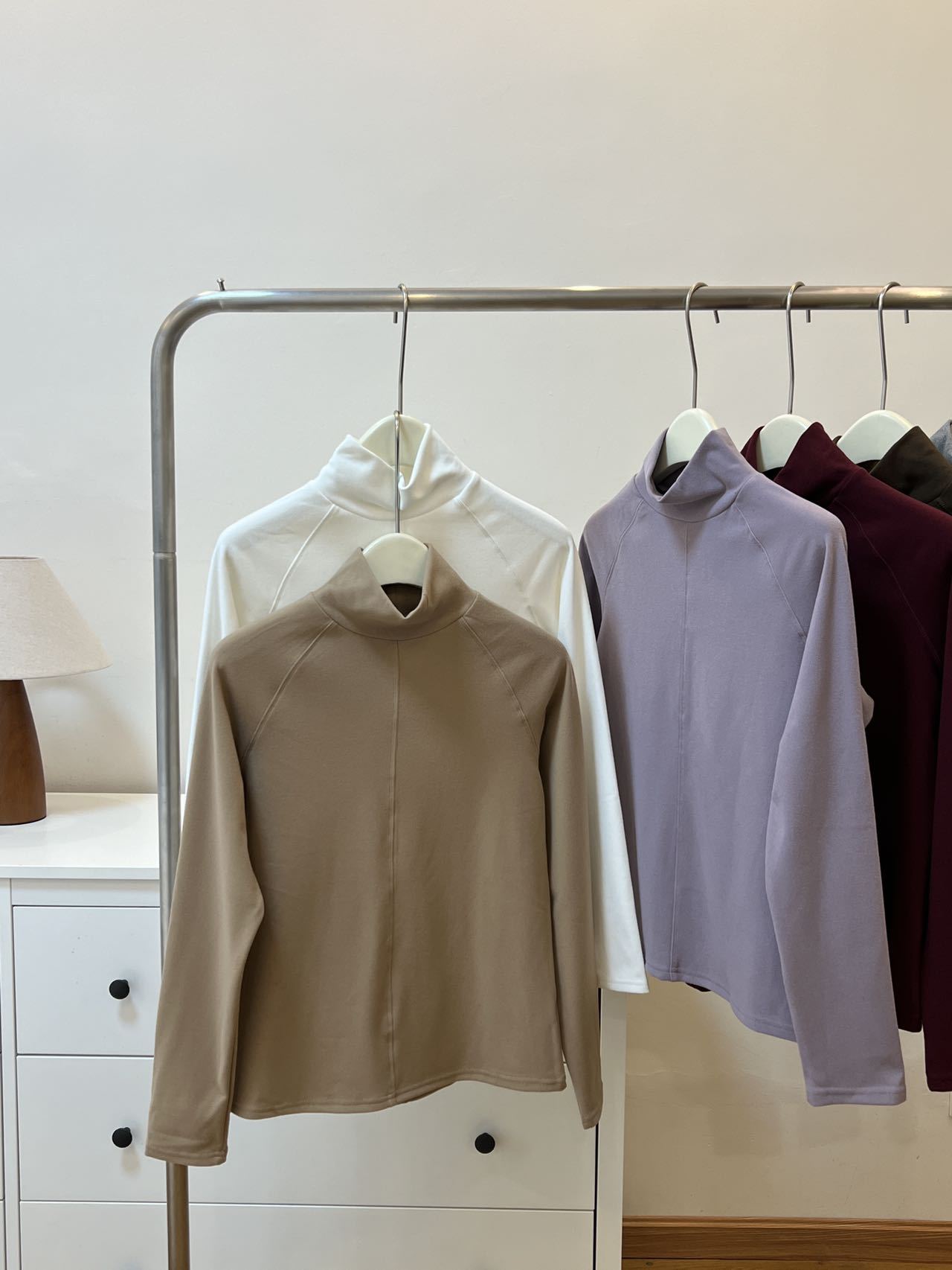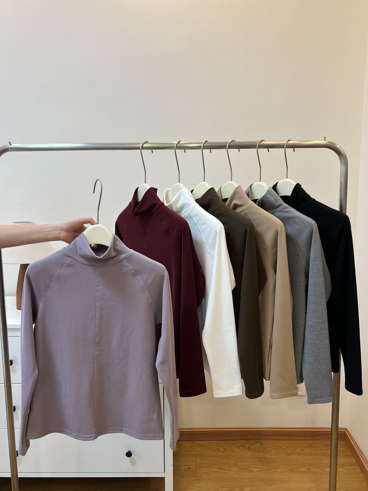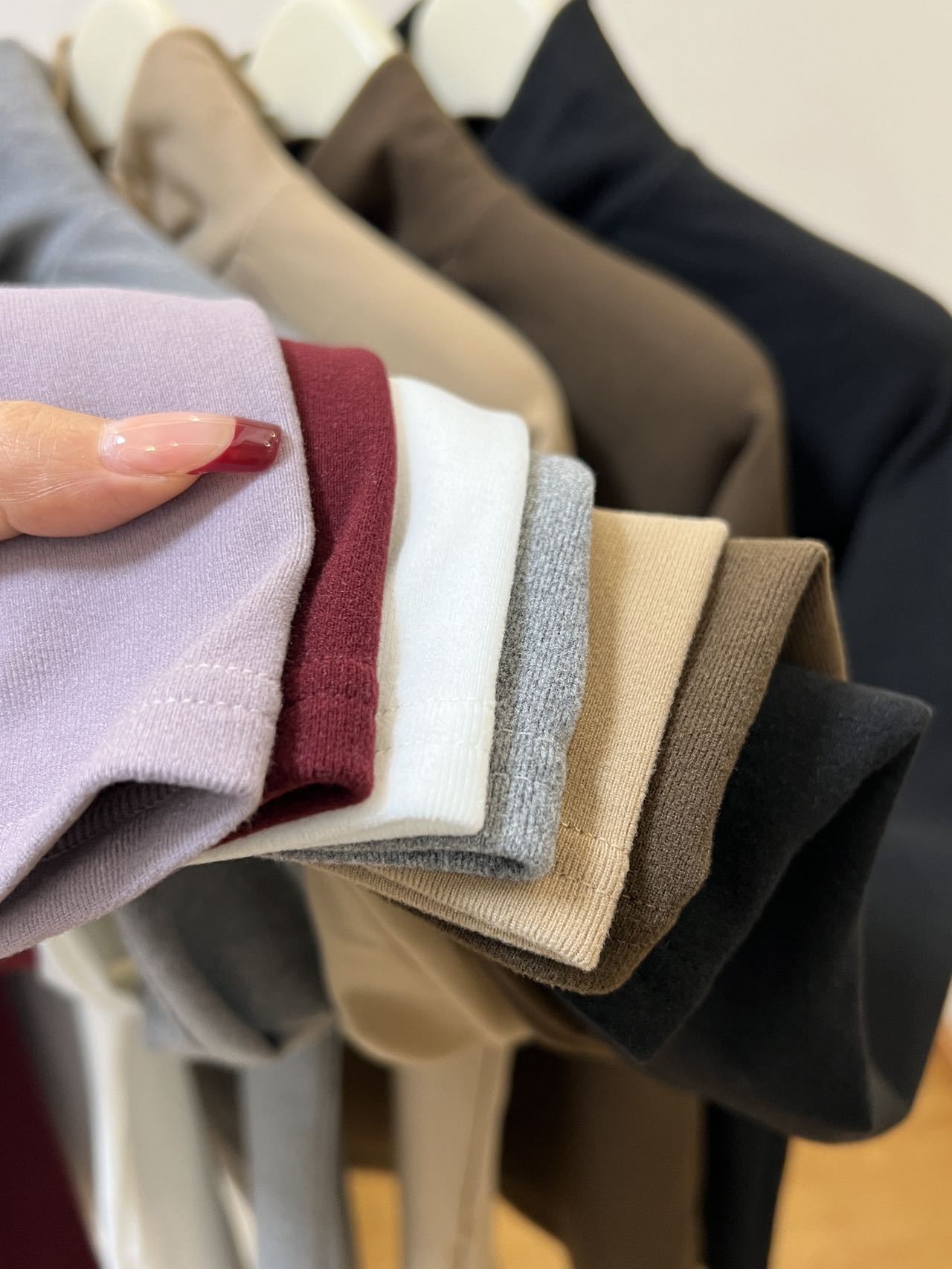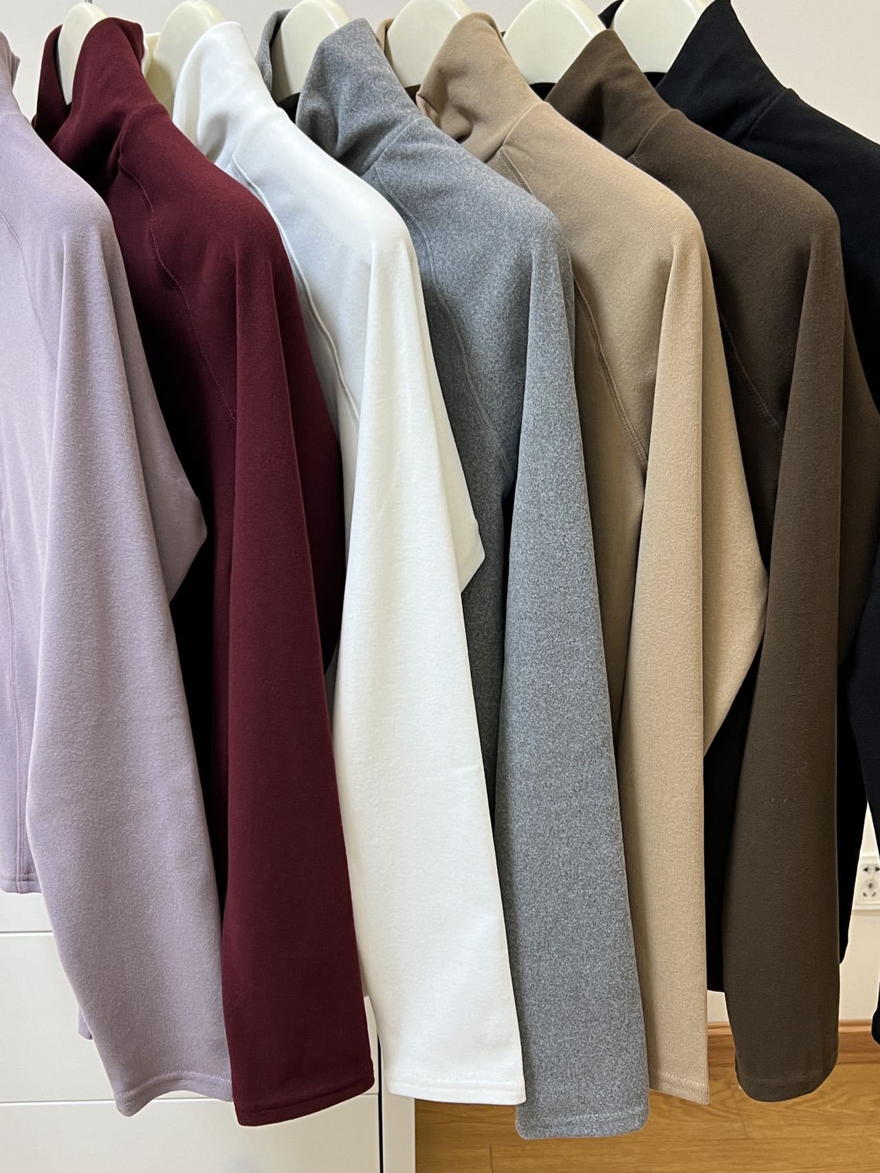 Camisa básica ajustada de polar con cuello alto y manga larga para otoño e invierno.
