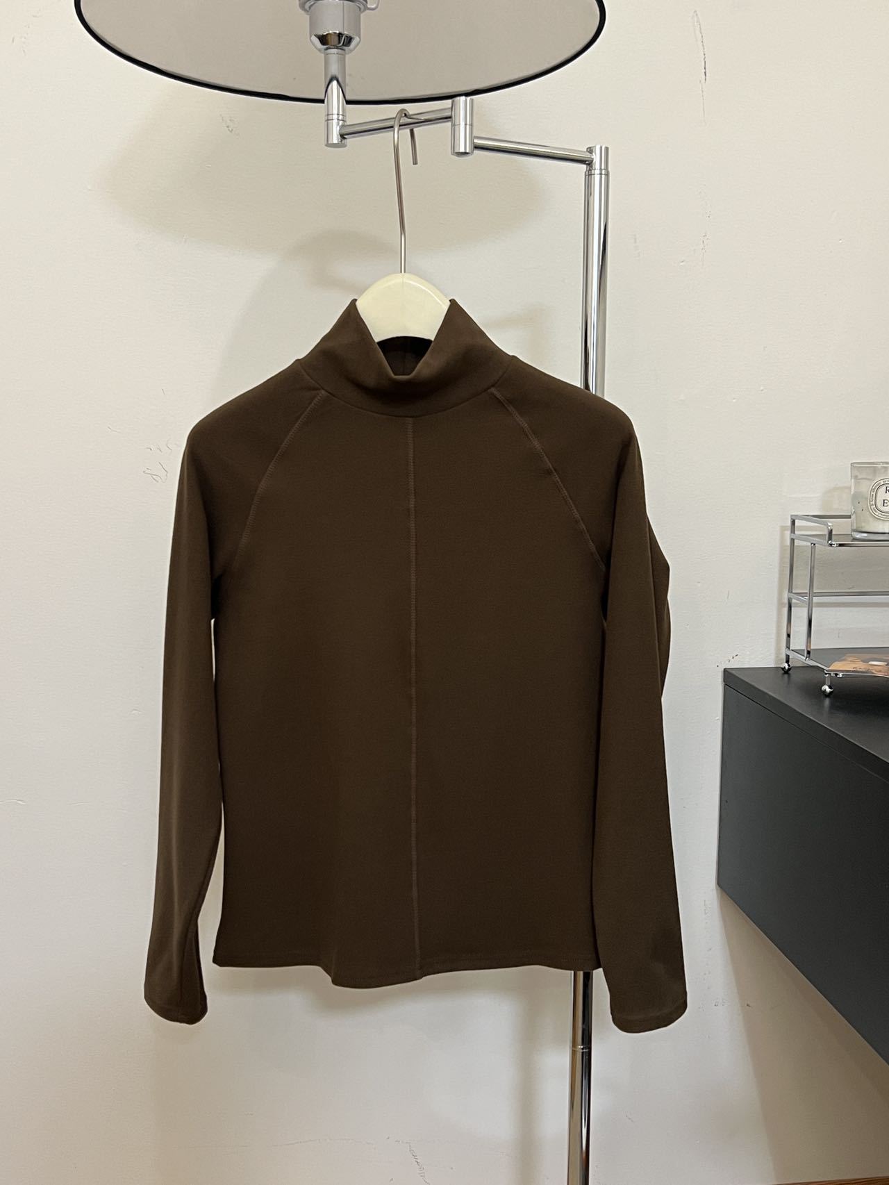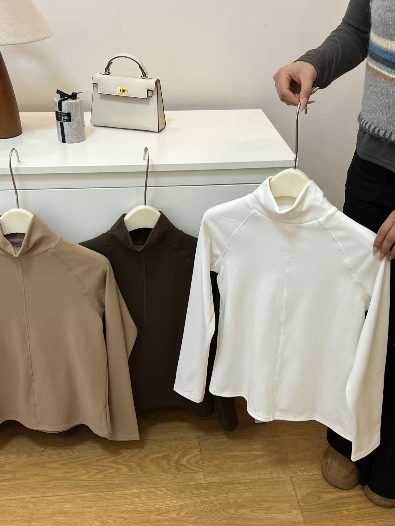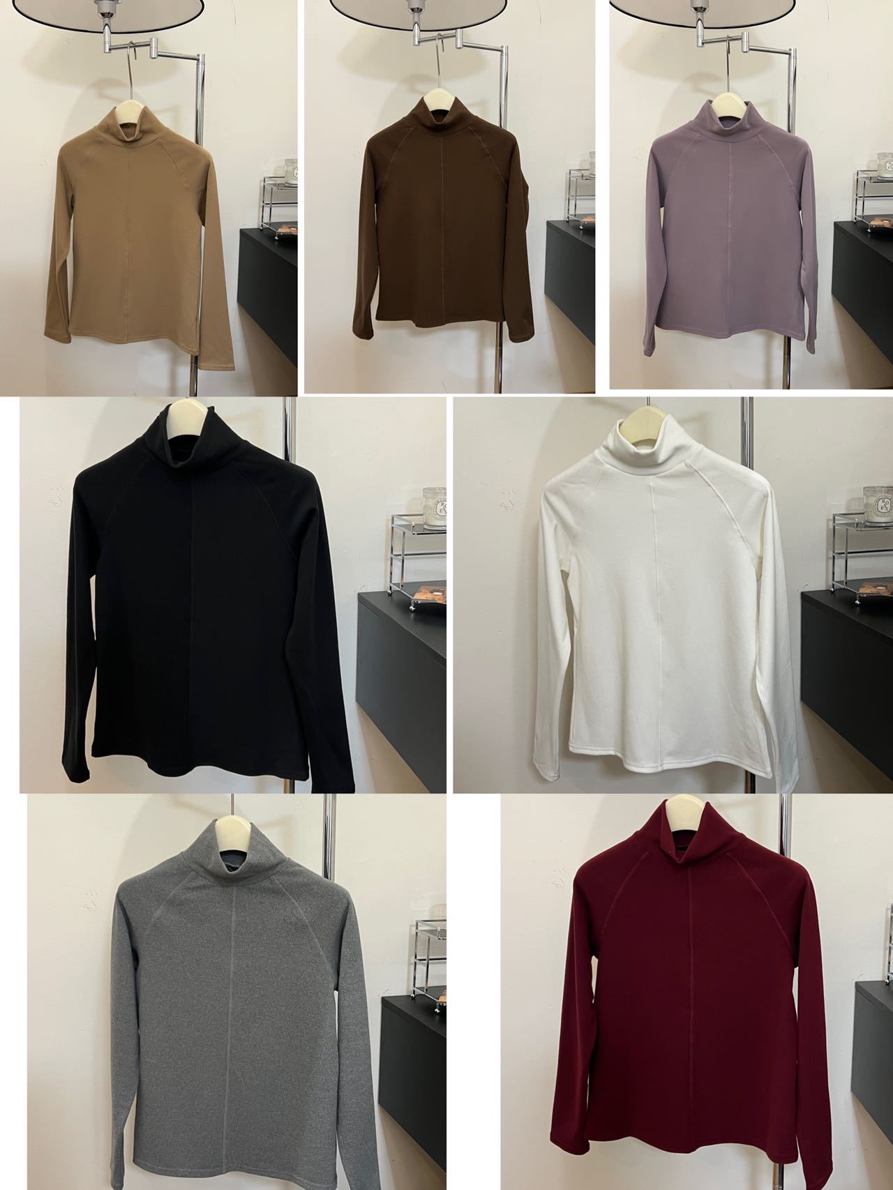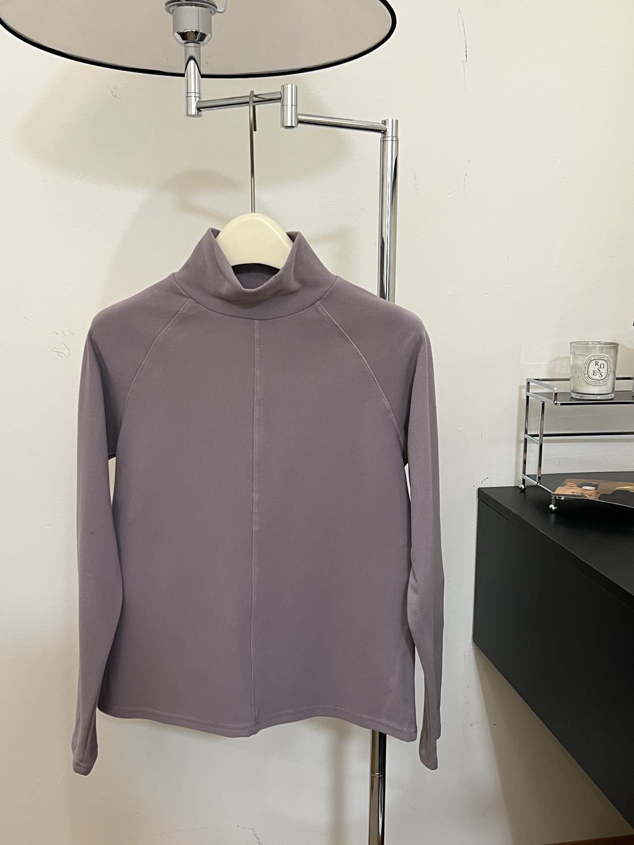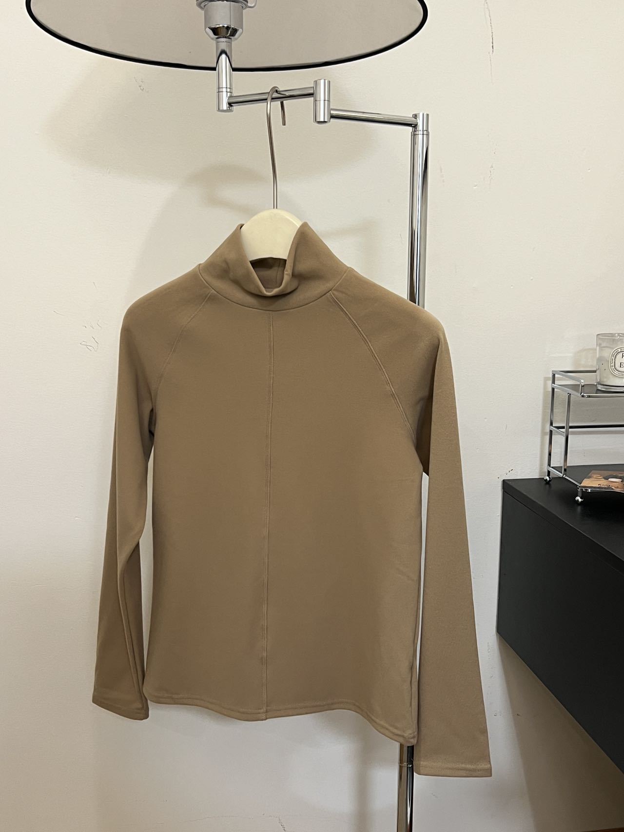Camisa básica ajustada de polar con cuello alto y manga larga para otoño e invierno.