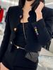 Abrigo Elegante de Lana de Alta Calidad Estilo Chanel Francés para Otoño e Invierno para Mujer, Tweed Verde, Solapa, Doble Botonadura, Cálido