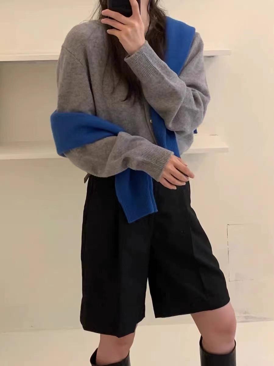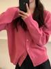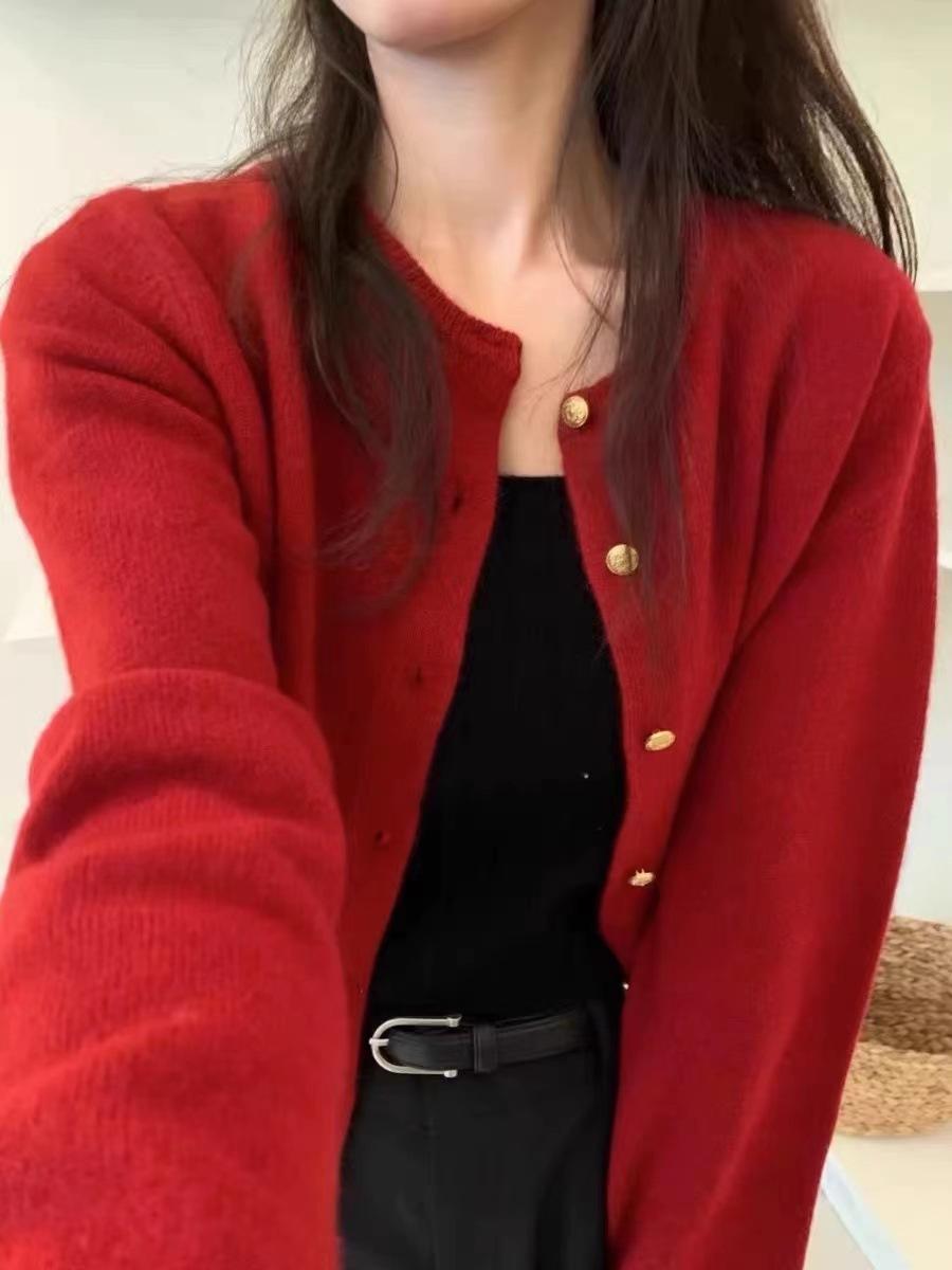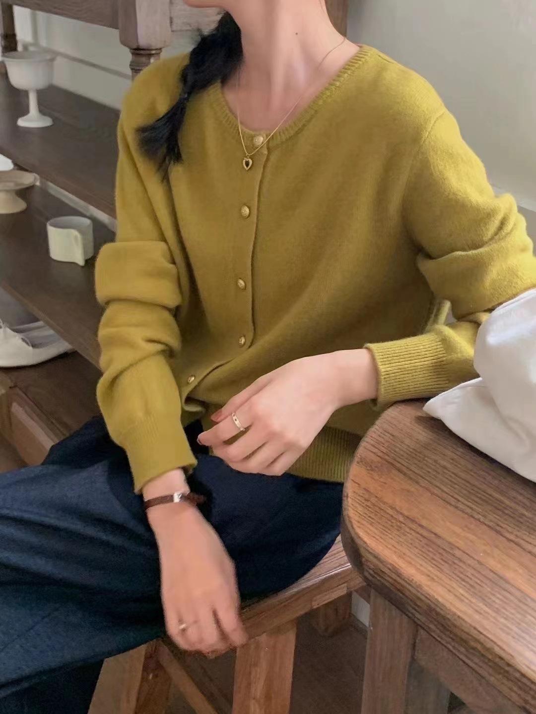 Cárdigan de lana pura para mujer, nuevo cárdigan de cuello redondo, diseño holgado, con botones de metal, cárdigan de punto que combina con todo, otoño e invierno.