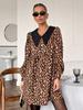 Vestido de manga larga con estampado de leopardo europeo y americano de Amazon para mujer 2025 Moda Otoño e Invierno Estampado Cintura Interior Falda A-Line para Mujer