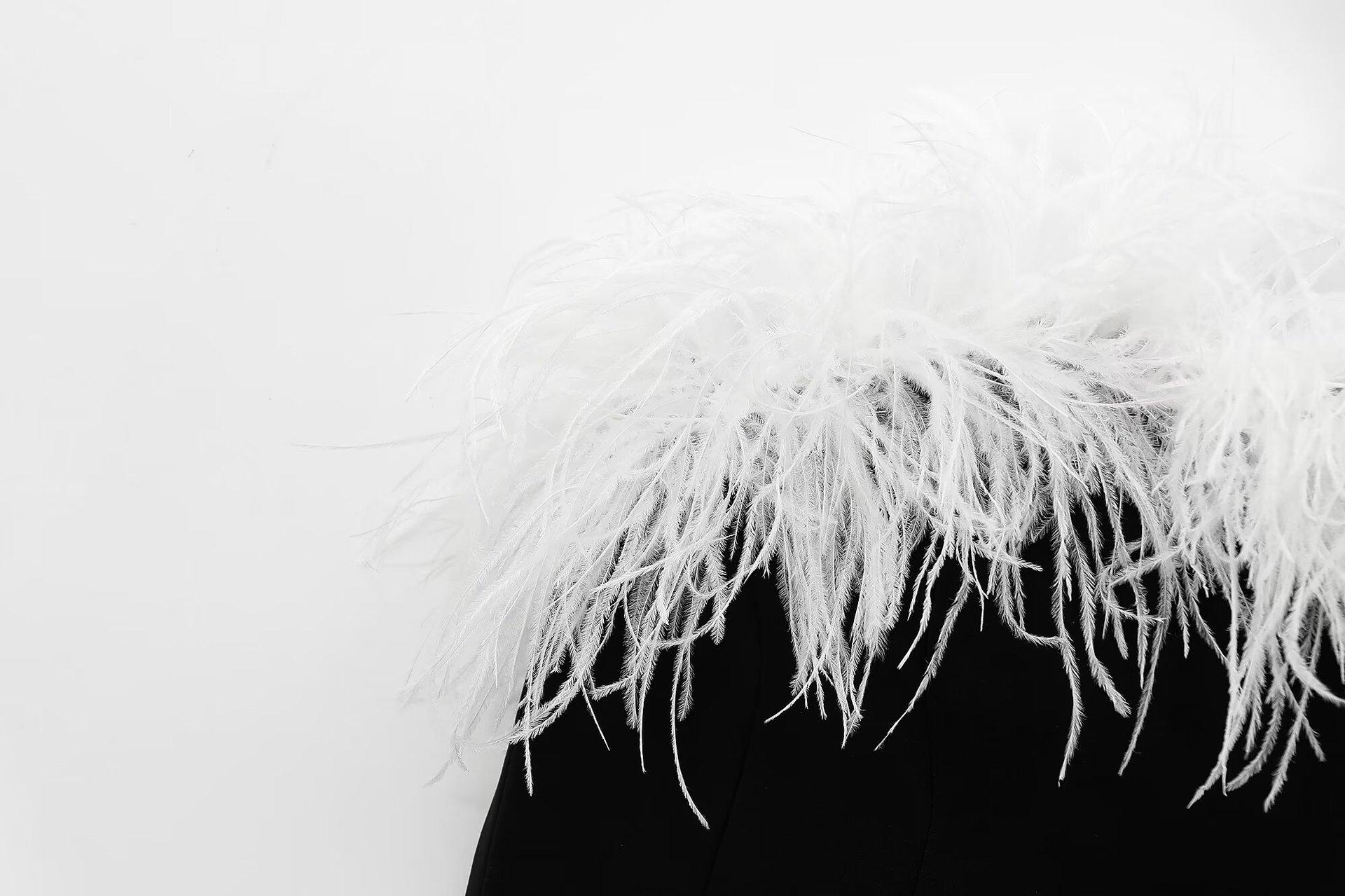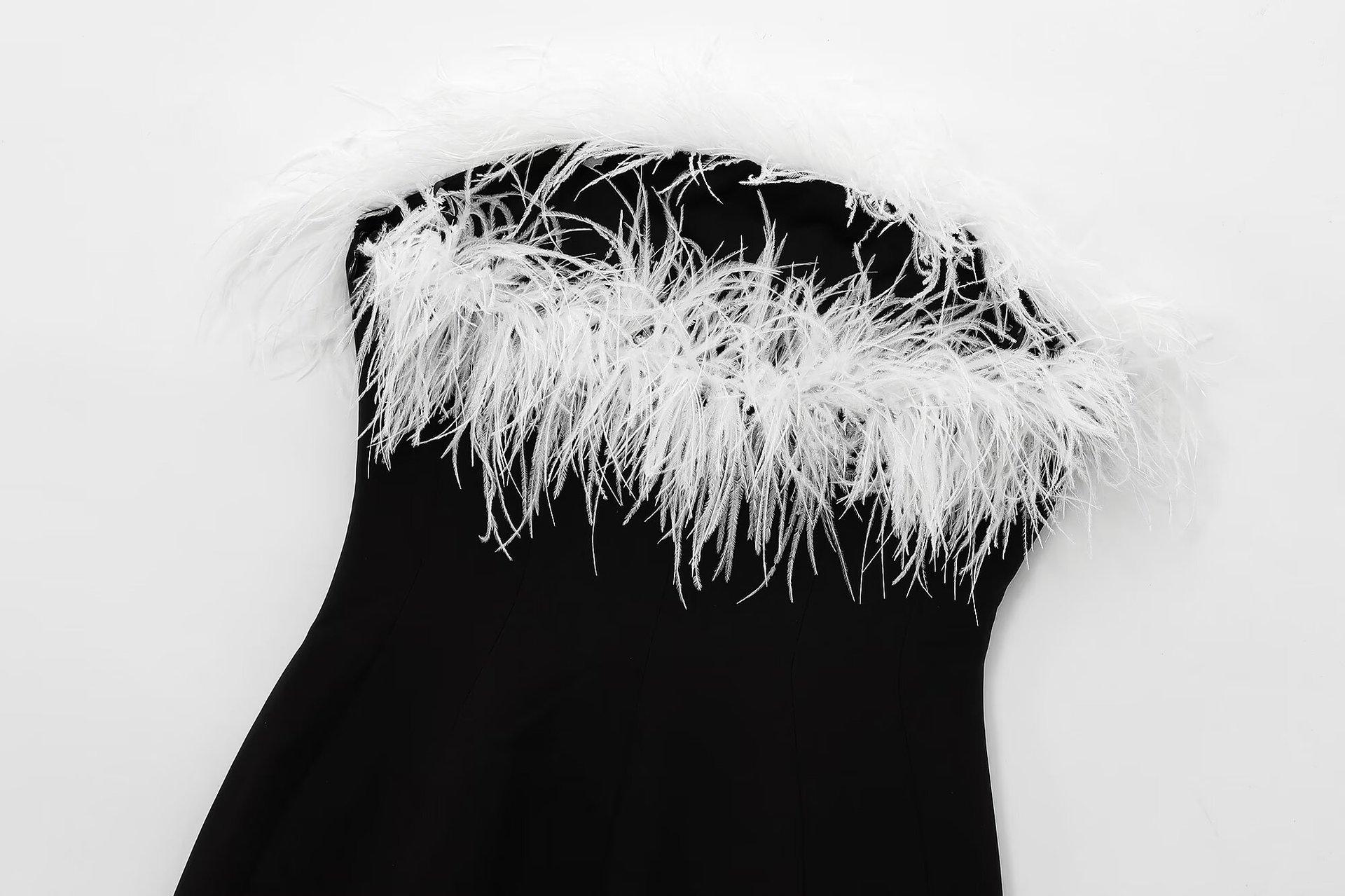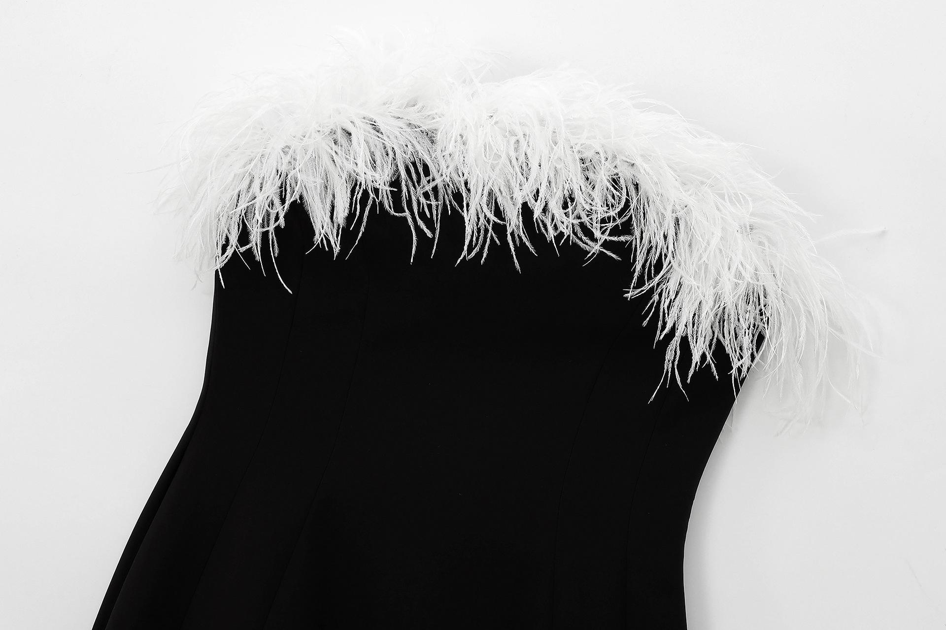 Ropa de mujer europea y americana comercio exterior al por mayor nuevo cuello palabra sexy chica caliente hombros descubiertos ajustado decoración de plumas elástico tubo top vestido