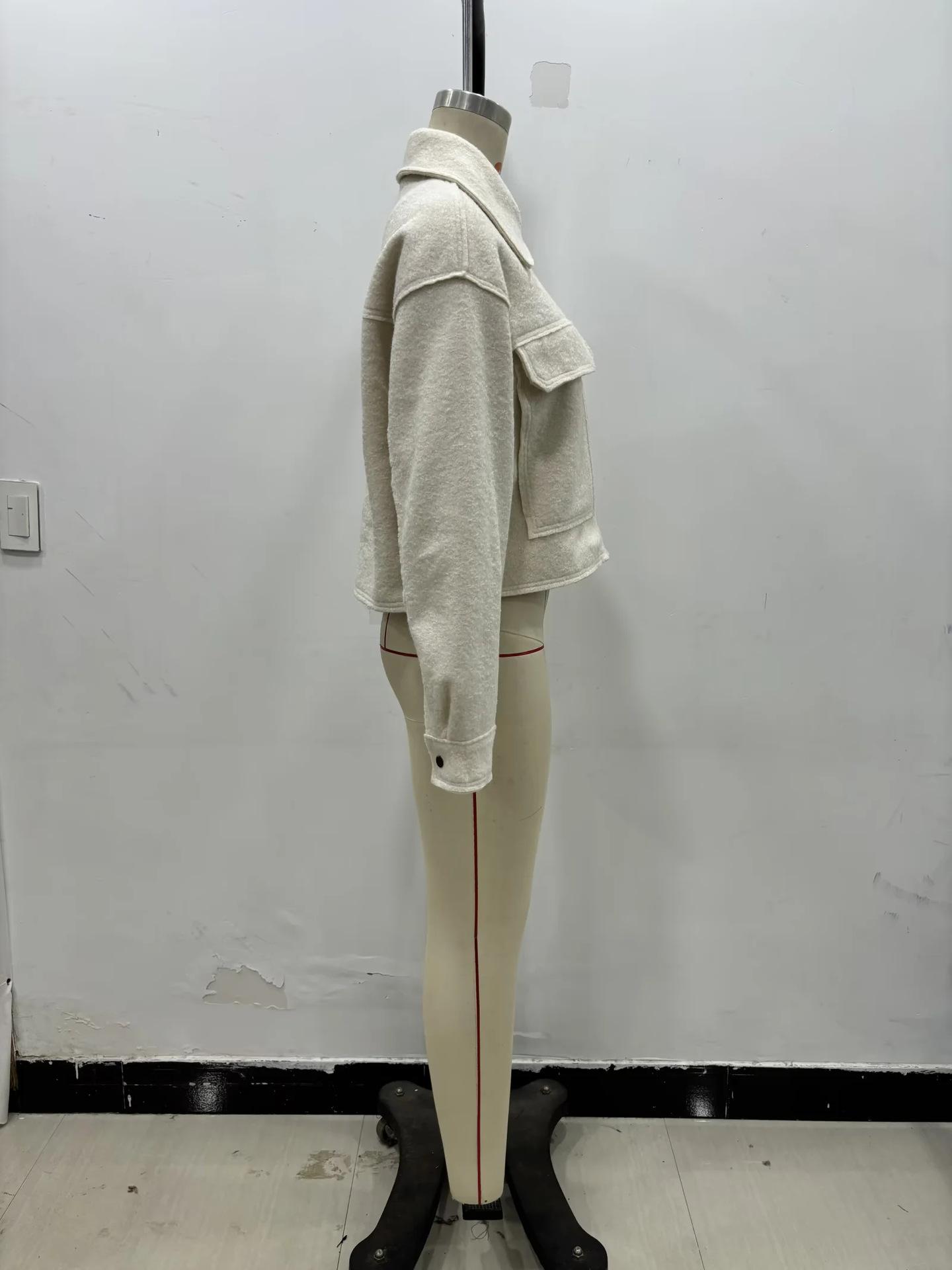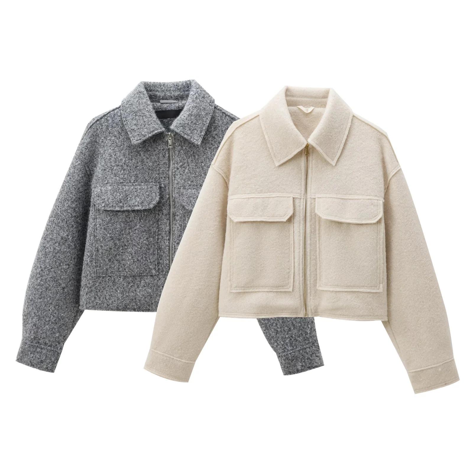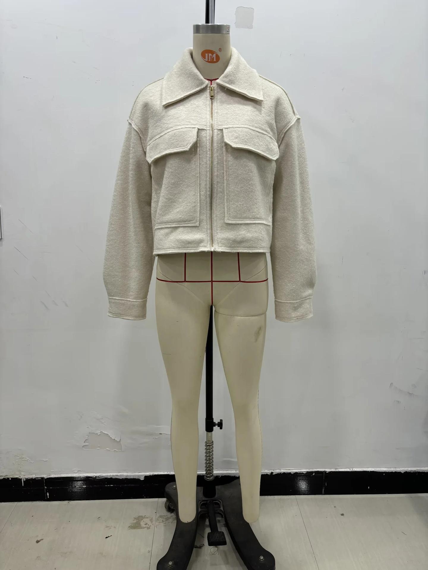 Otoño 2024 Nueva Chaqueta de Cuero con Cuentas y Bolsillo de Manga Larga con Solapa y Cremallera de Estilo Europeo y Americano Transfronterizo