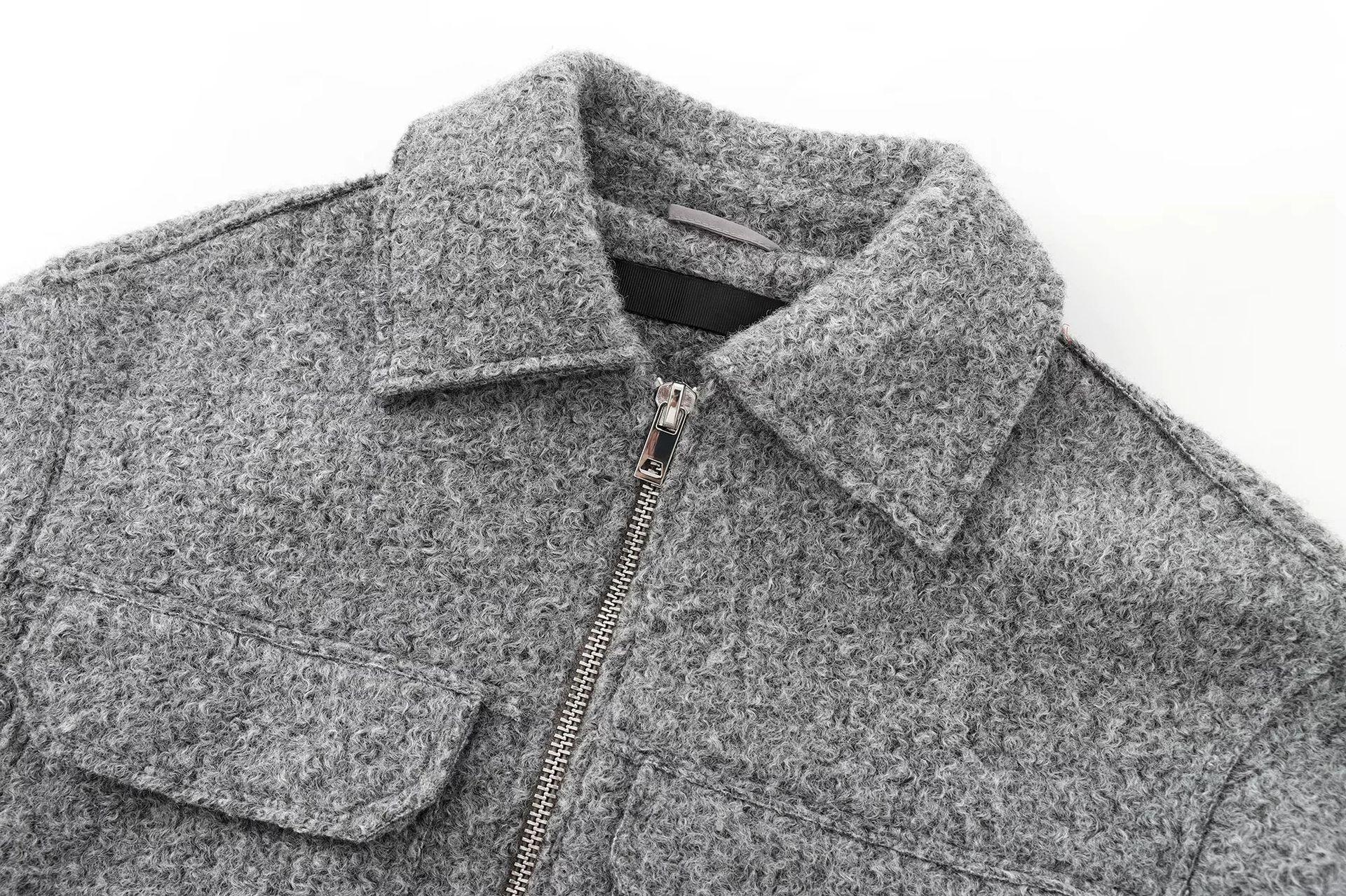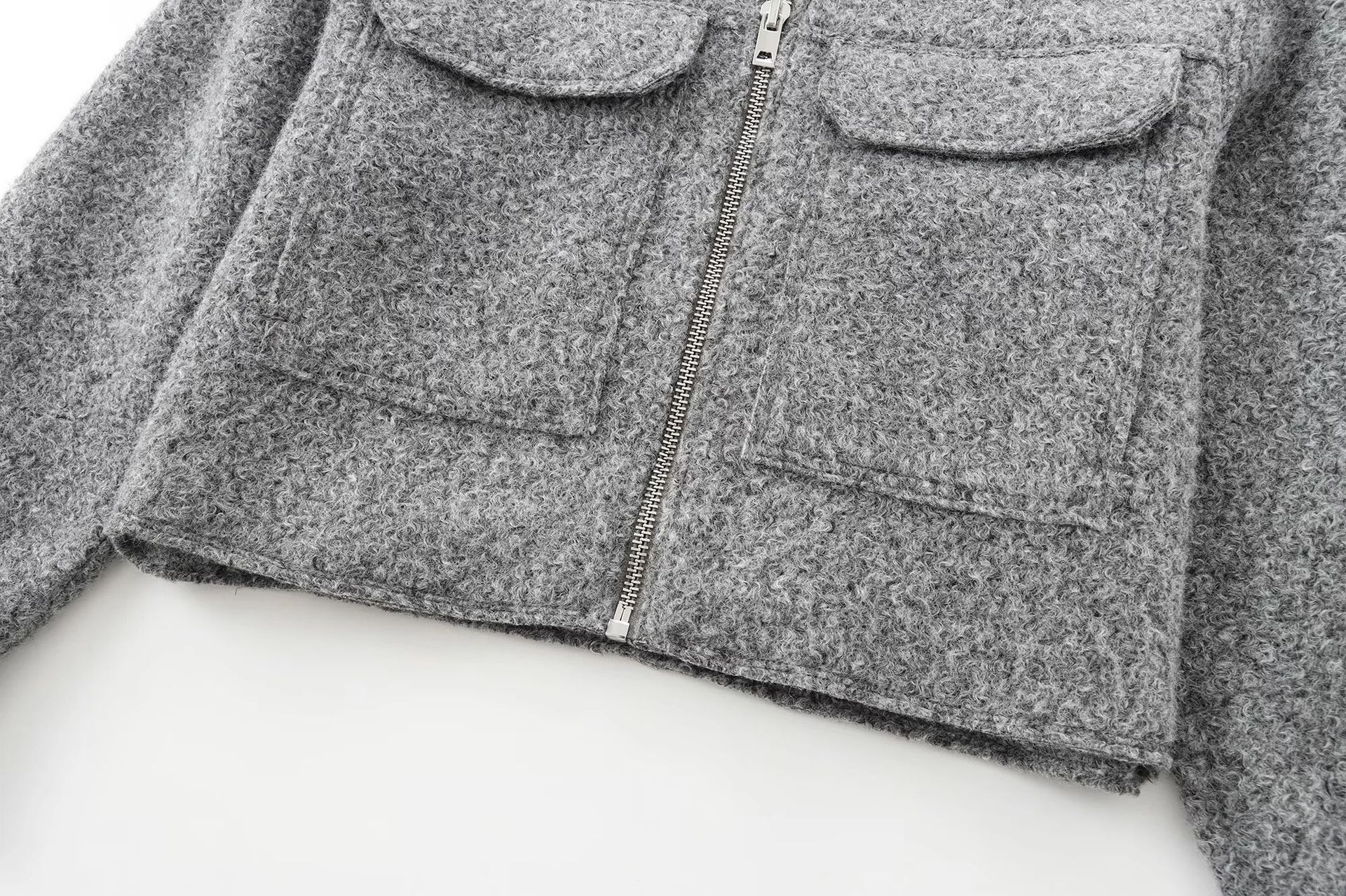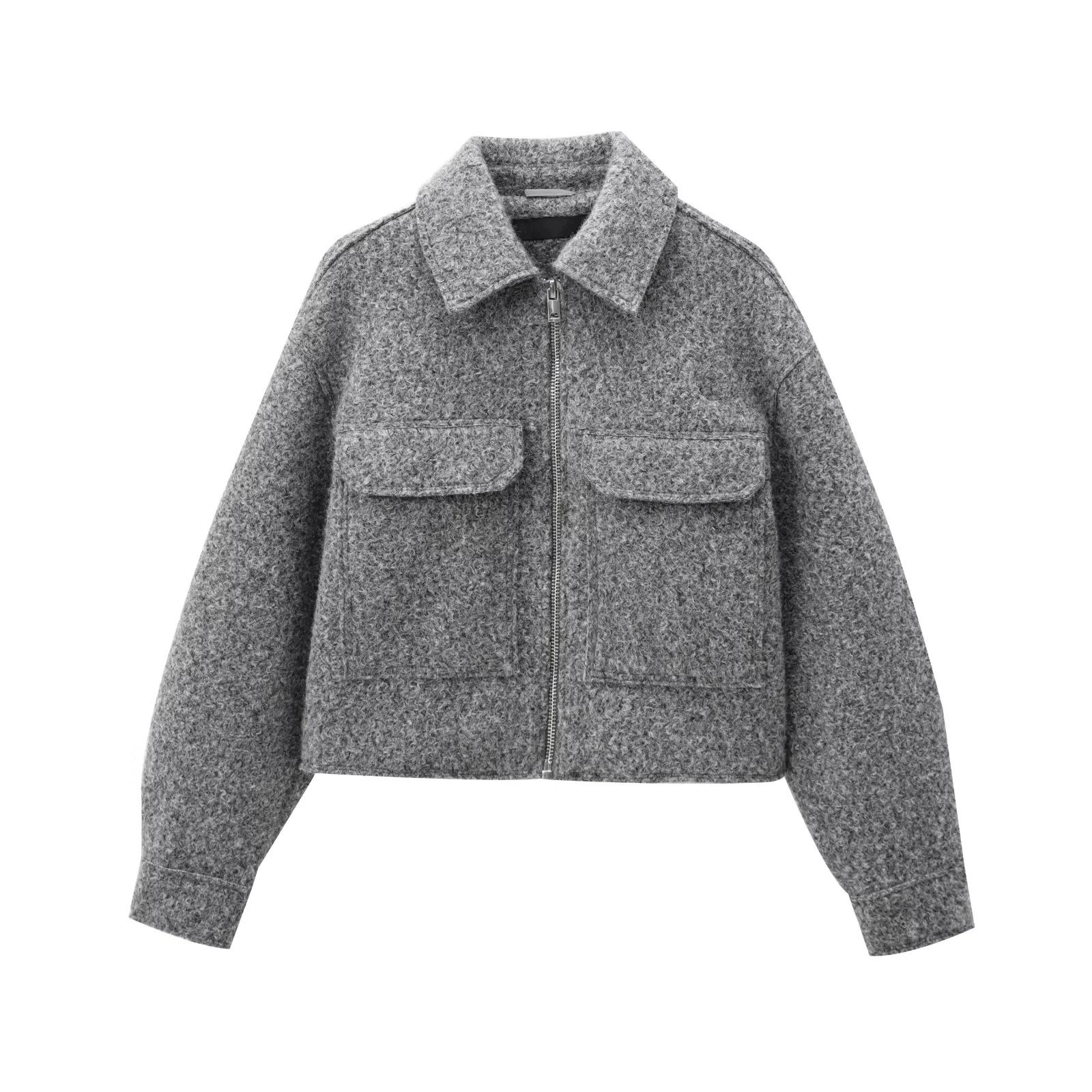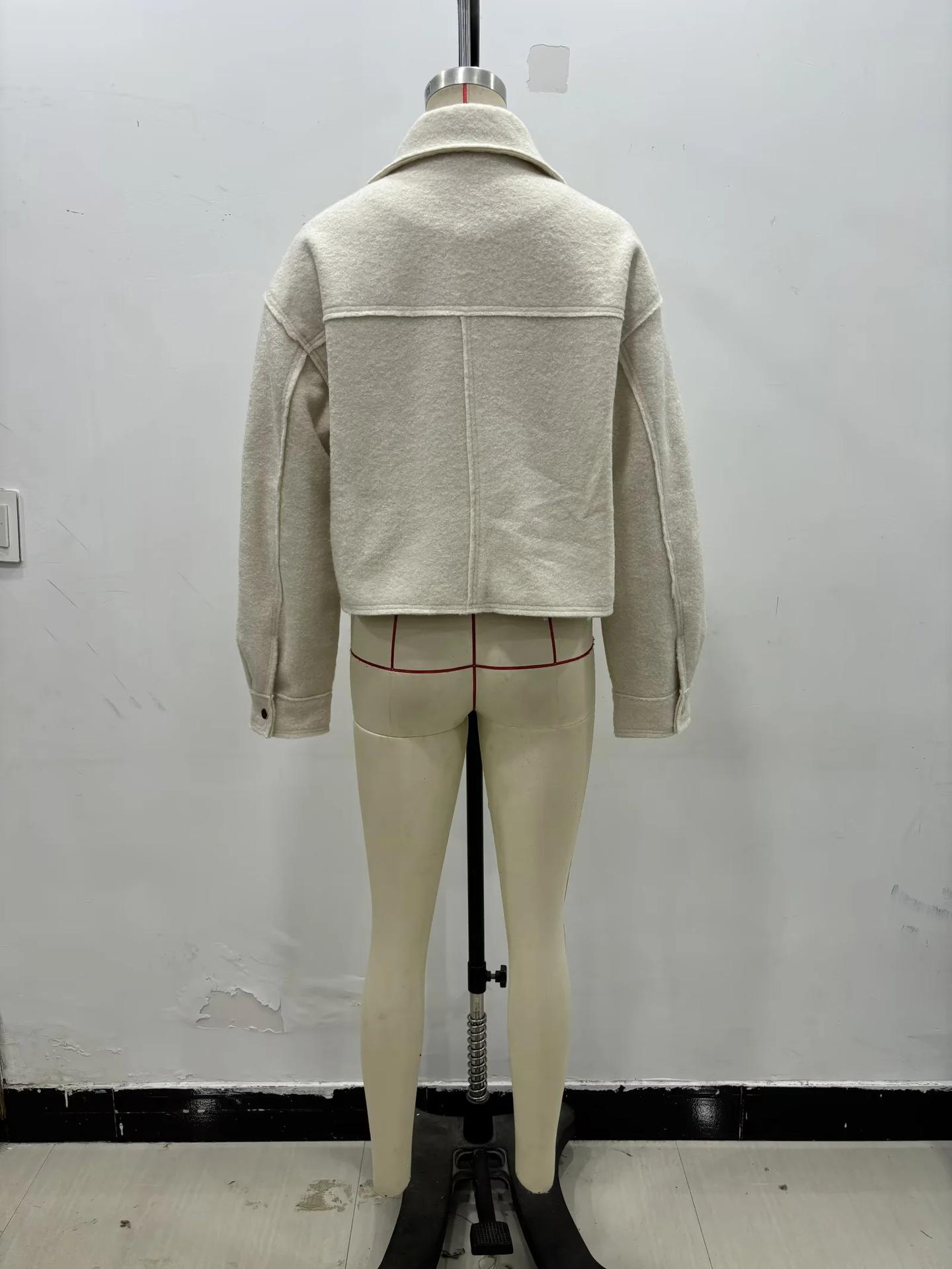 Otoño 2024 Nueva Chaqueta de Cuero con Cuentas y Bolsillo de Manga Larga con Solapa y Cremallera de Estilo Europeo y Americano Transfronterizo