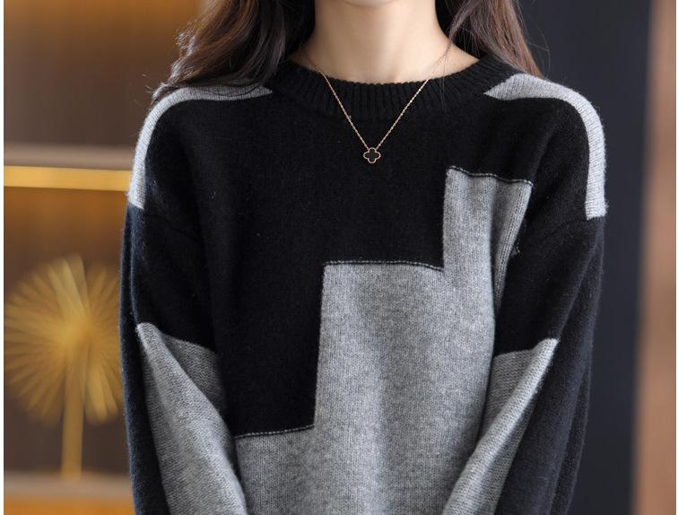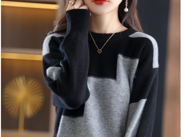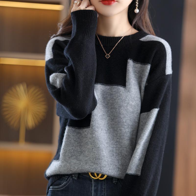 Ropa de Mujer al Mayoreo Nuevo 2024 Primavera Nuevo Suéter Tejido Tops Estilo Coreano Holgado Fondo Combinación de Colores Suéter Mujer