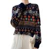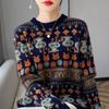Cárdigan de otoño e invierno 100% de color liso para mujer, suéter vintage de jacquard con cuello redondo, jersey de punto de lana.