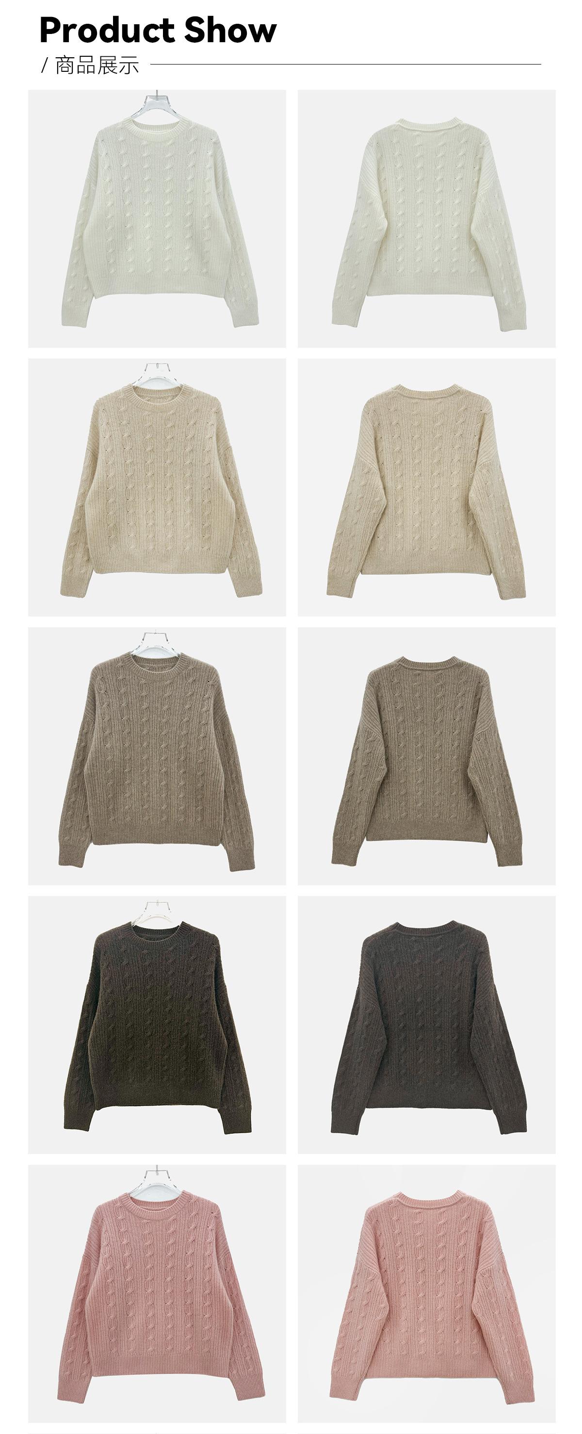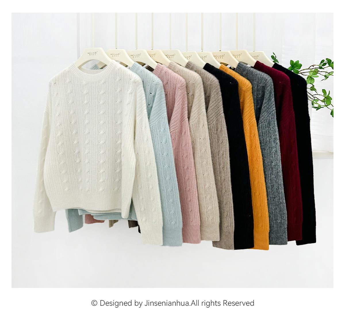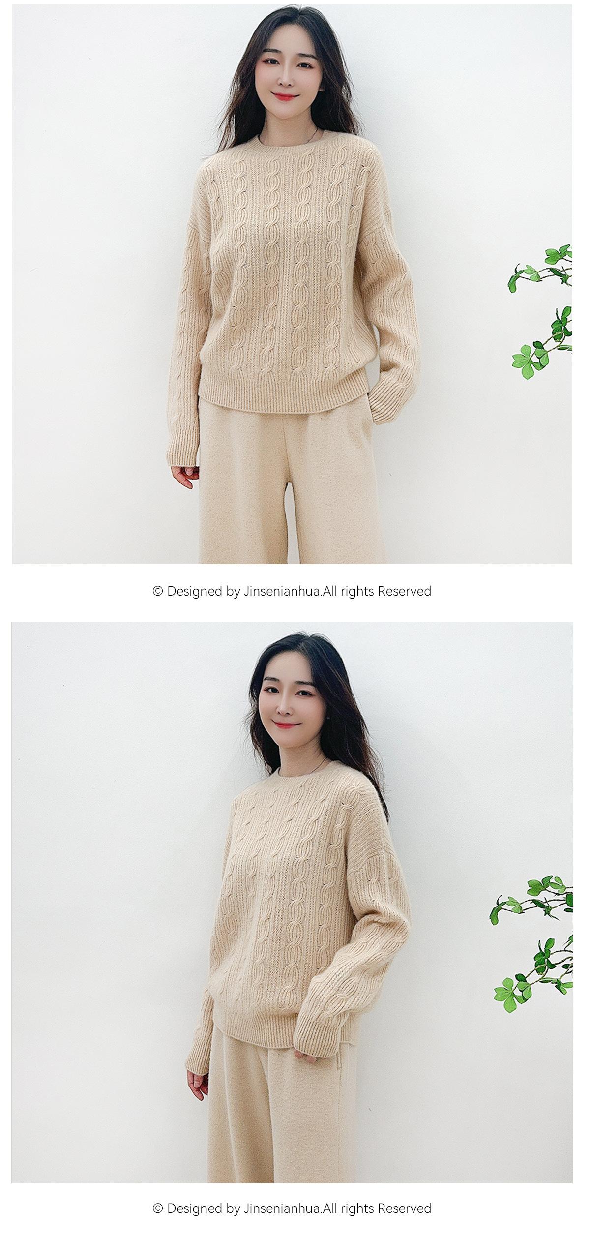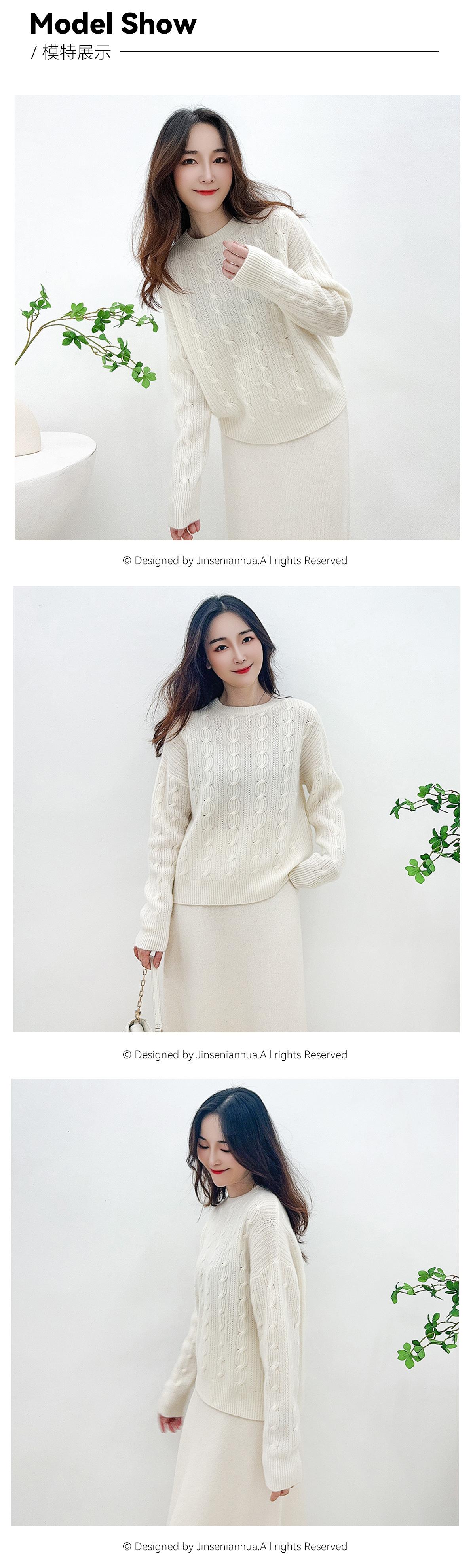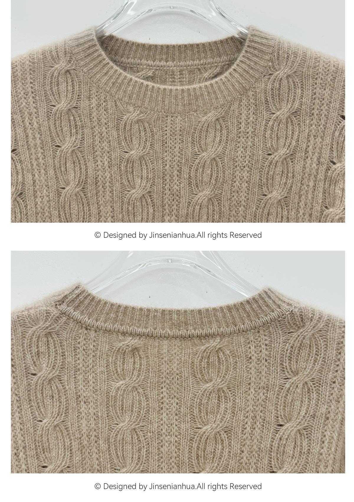 Suéter de cachemira pura de cuello redondo, manga larga y tres dimensiones, tejido trenzado, para mujer, otoño e invierno 2024.