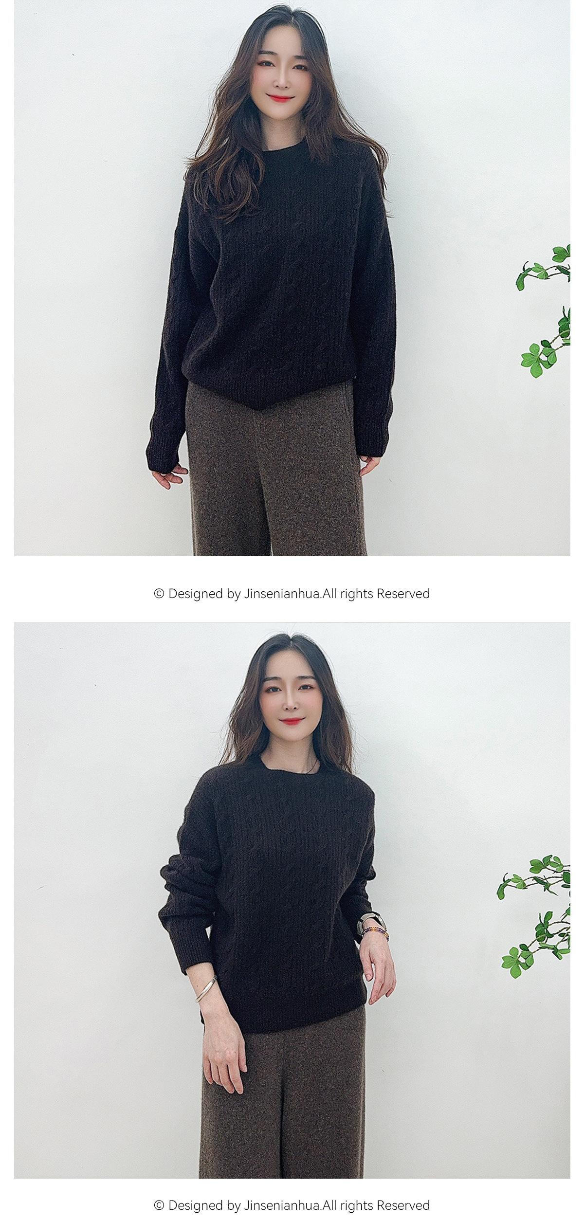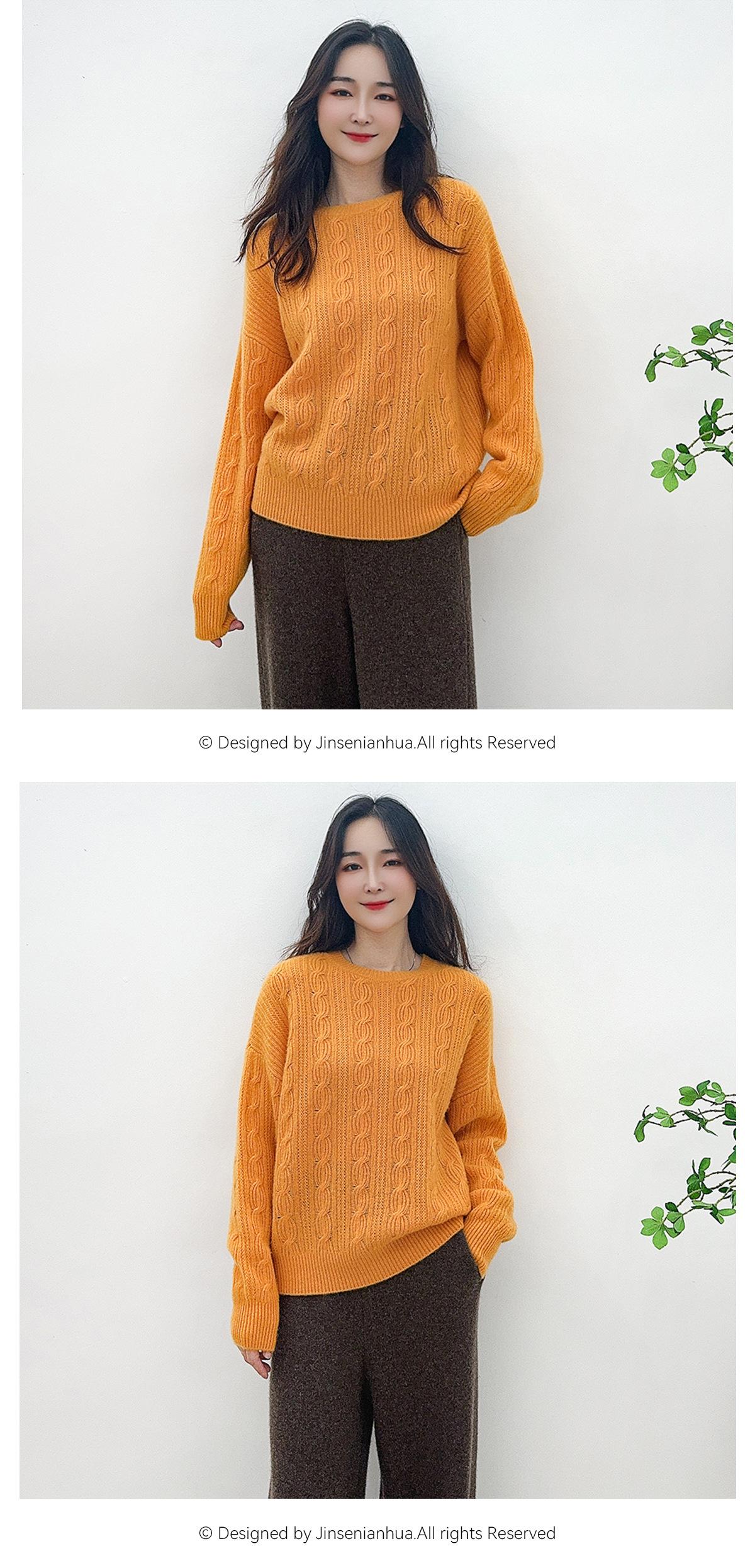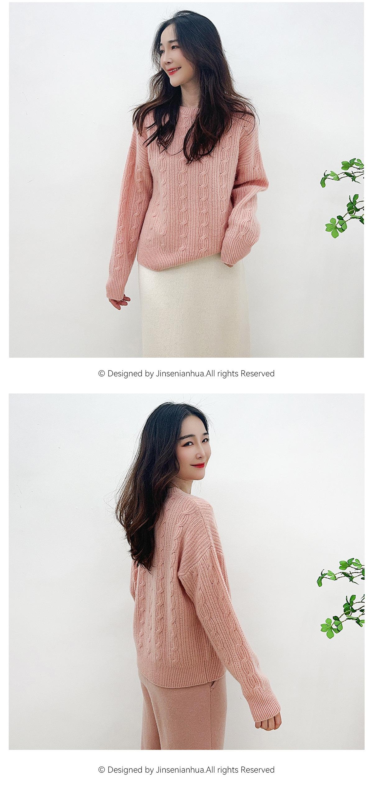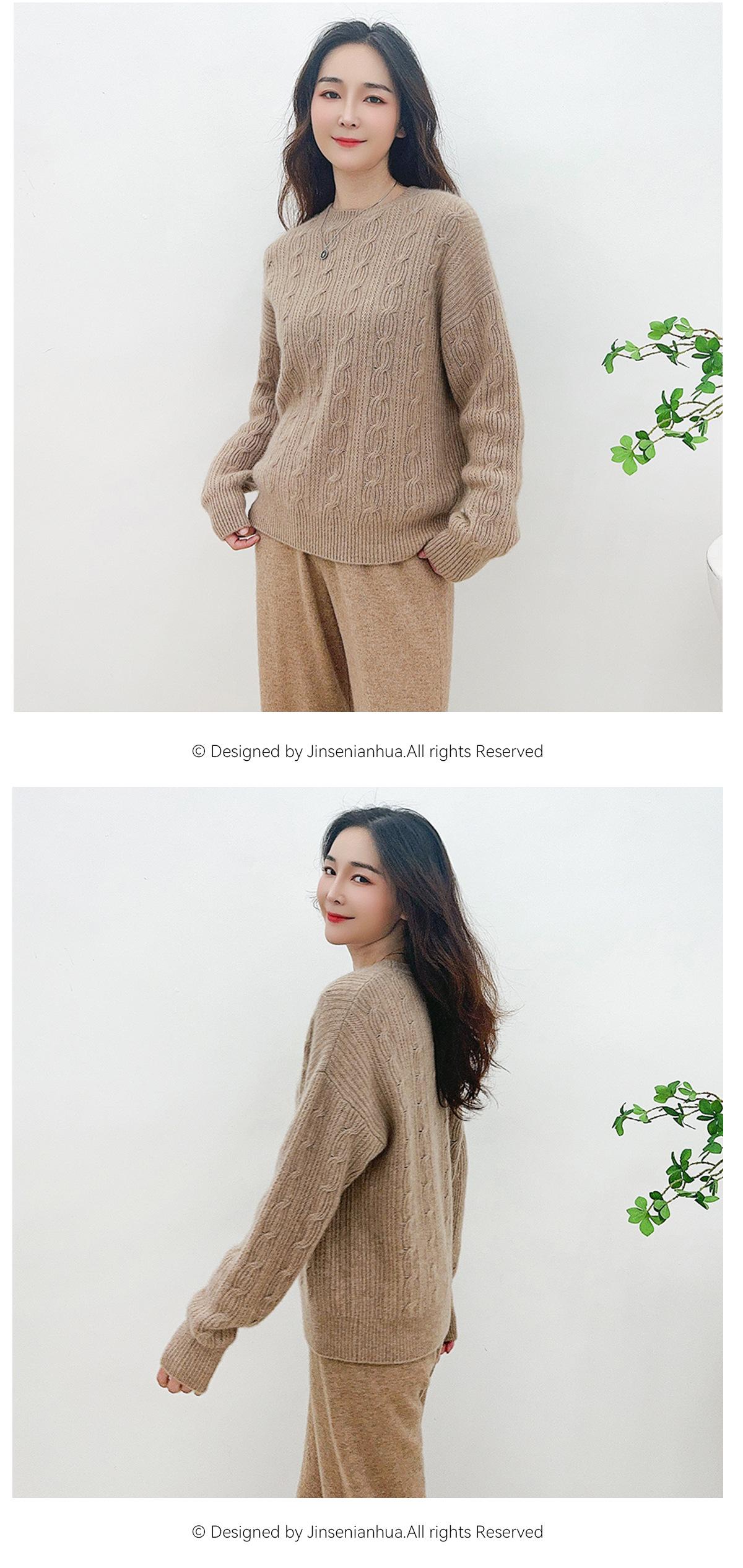 Suéter de cachemira pura de cuello redondo, manga larga y tres dimensiones, tejido trenzado, para mujer, otoño e invierno 2024.