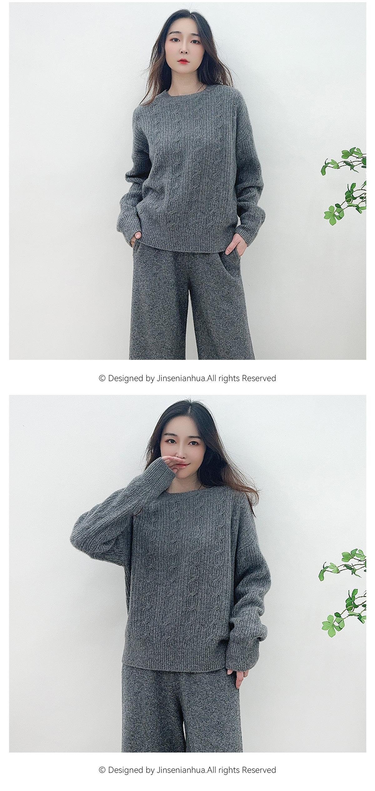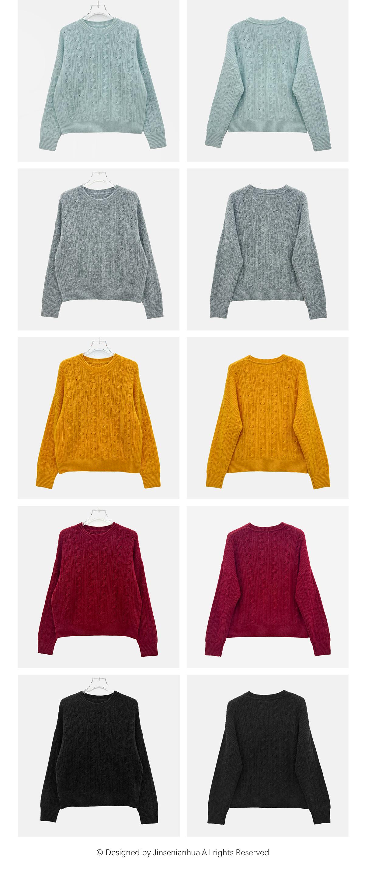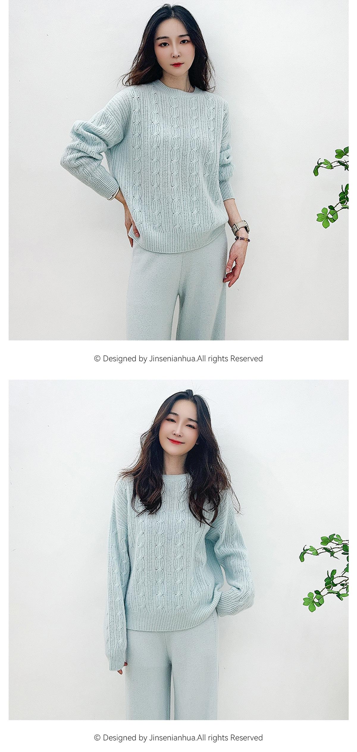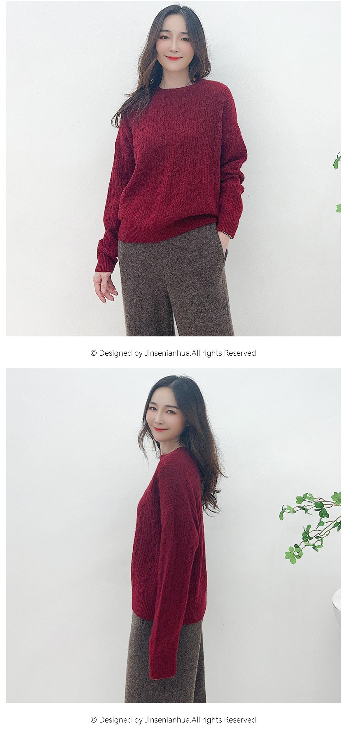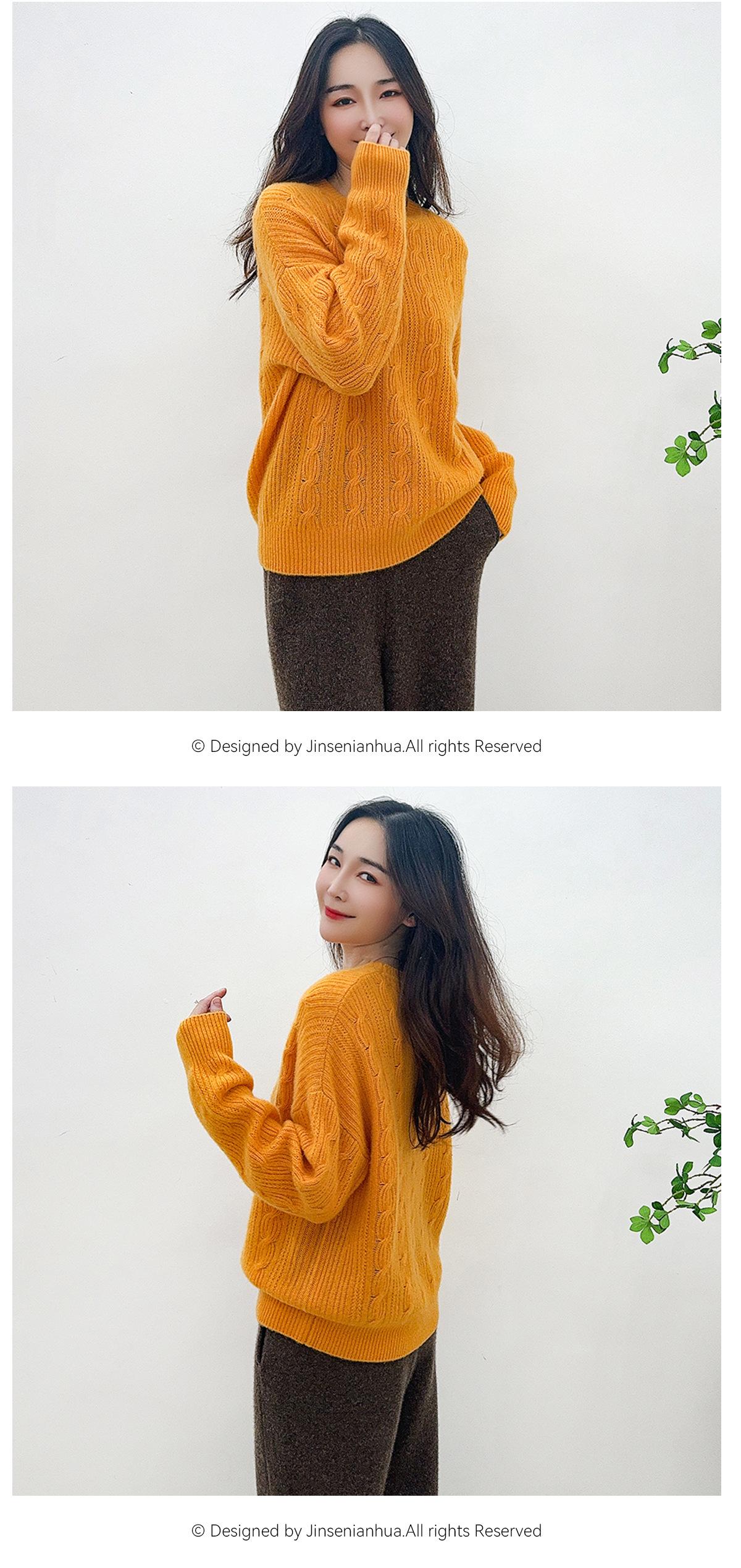 Suéter de cachemira pura de cuello redondo, manga larga y tres dimensiones, tejido trenzado, para mujer, otoño e invierno 2024.