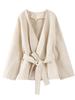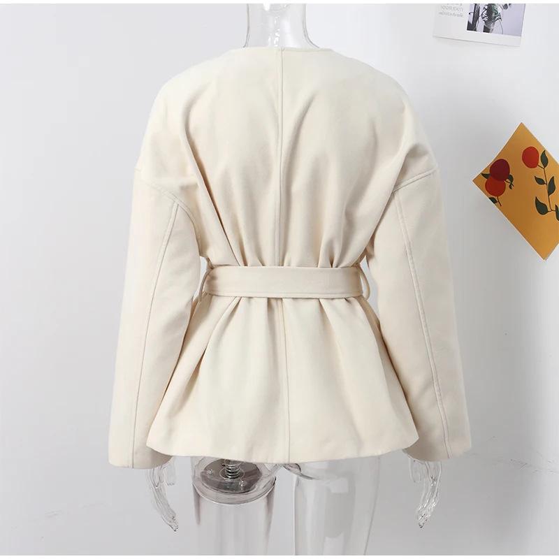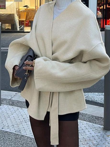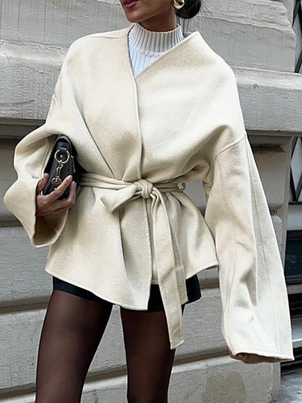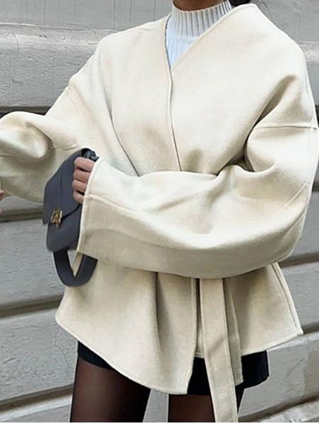 Chaqueta de mujer de otoño 2024, elegante, de lana de color liso, informal, transfronteriza entre Europa y América