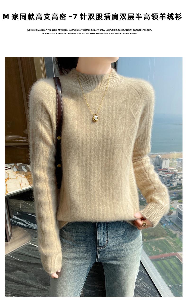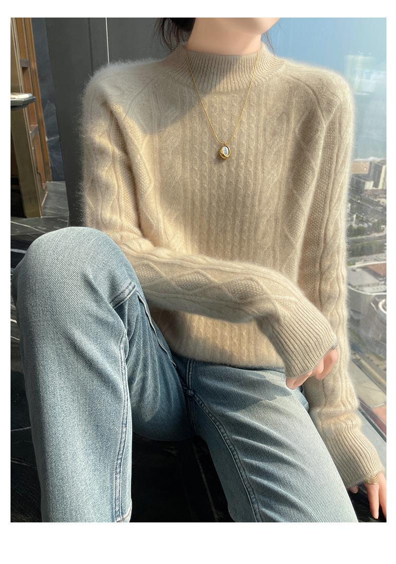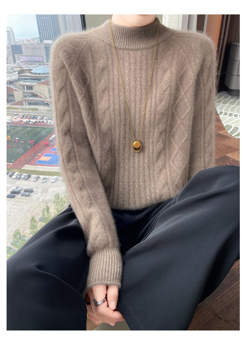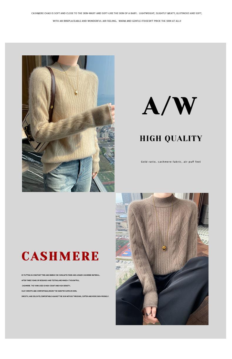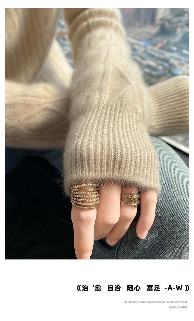 Suéter de Cachemira de Montaña Grueso con Trenzas Vintage de Otoño e Invierno para Mujer, Suéter Tejido Cálido y Holgado para Base