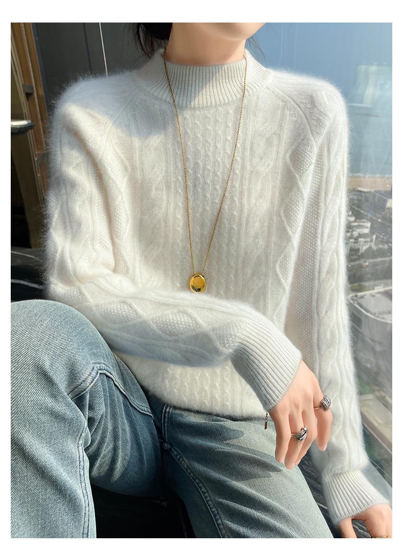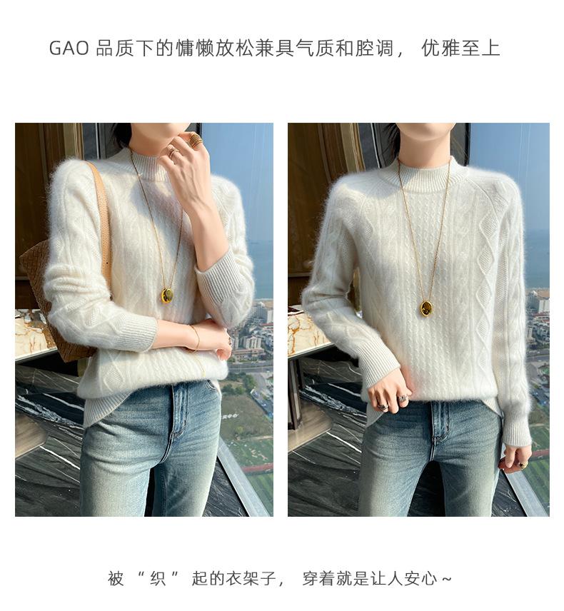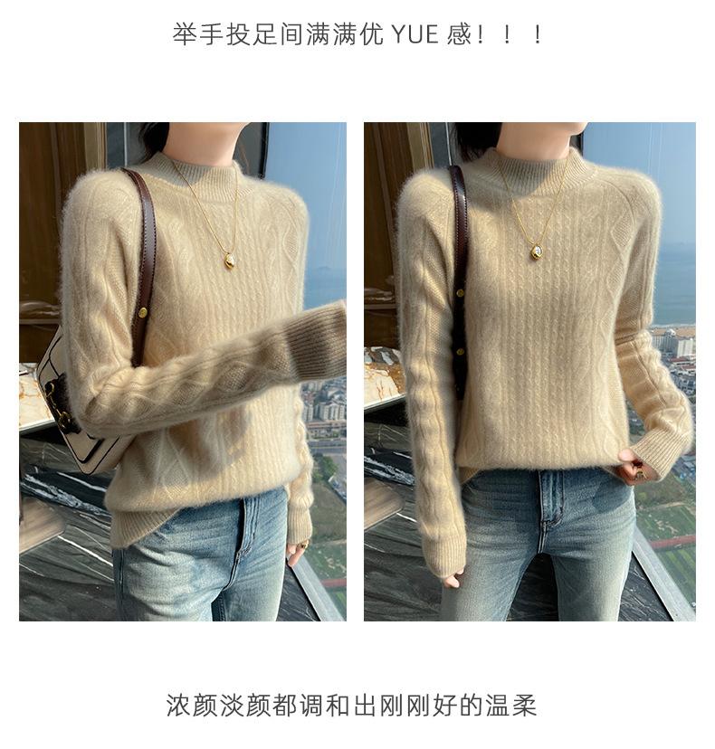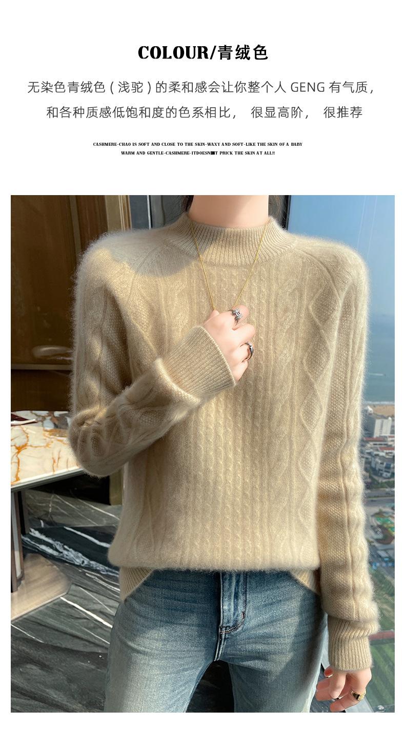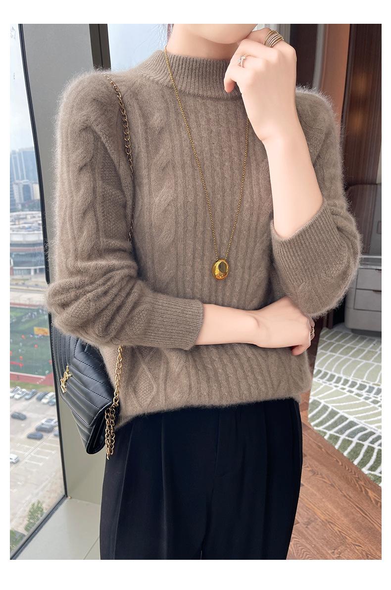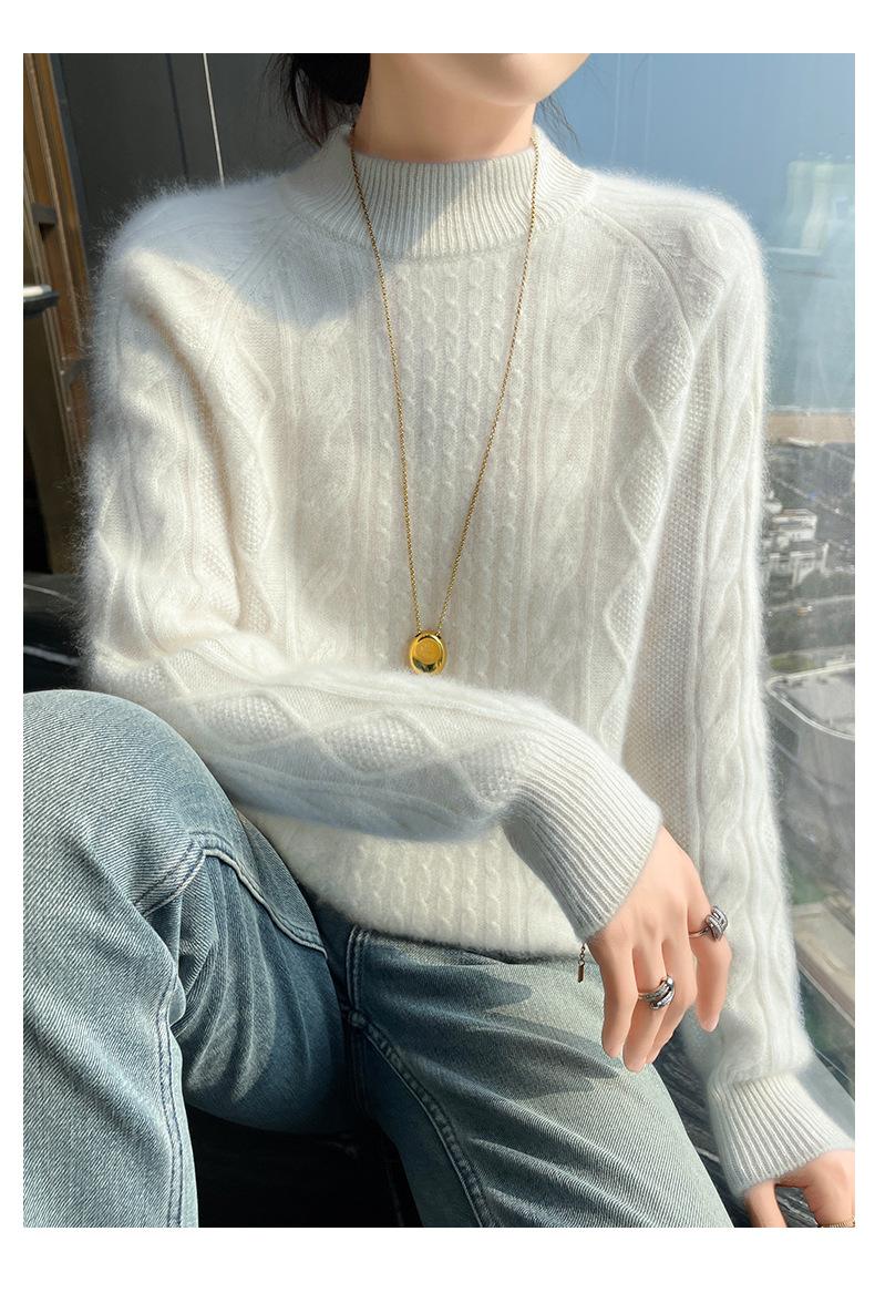 Suéter de Cachemira de Montaña Grueso con Trenzas Vintage de Otoño e Invierno para Mujer, Suéter Tejido Cálido y Holgado para Base