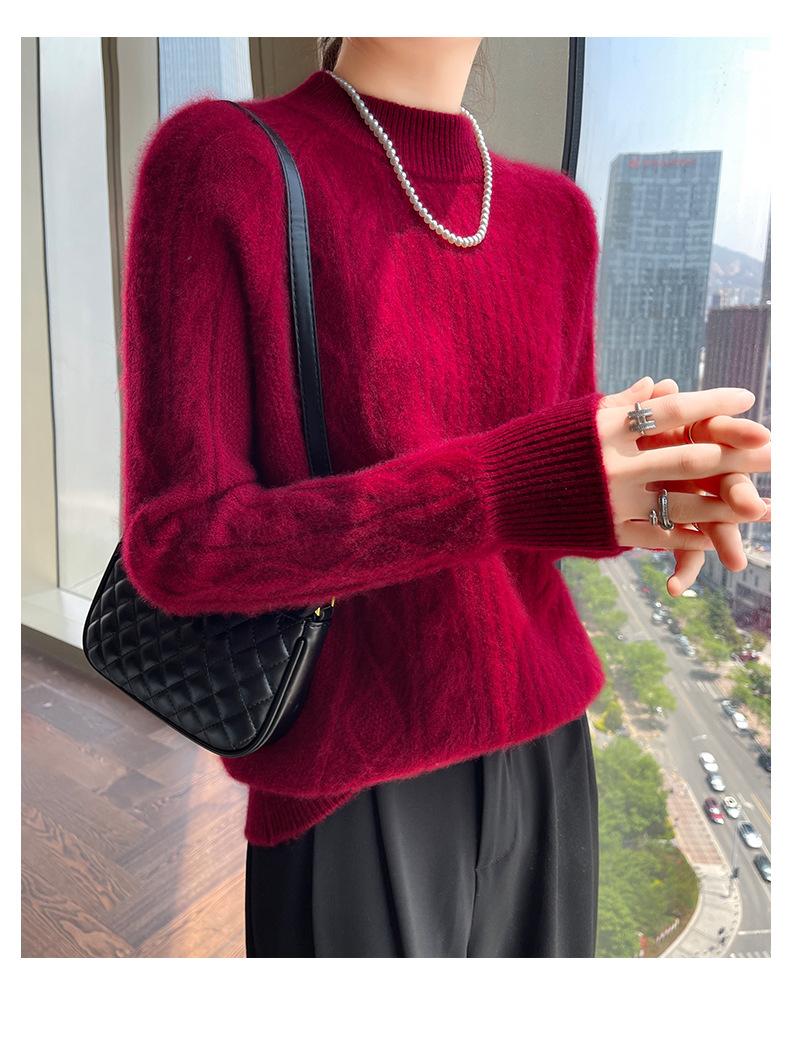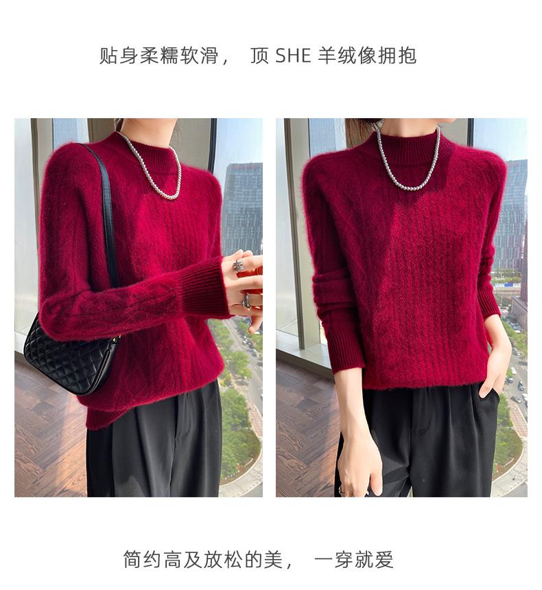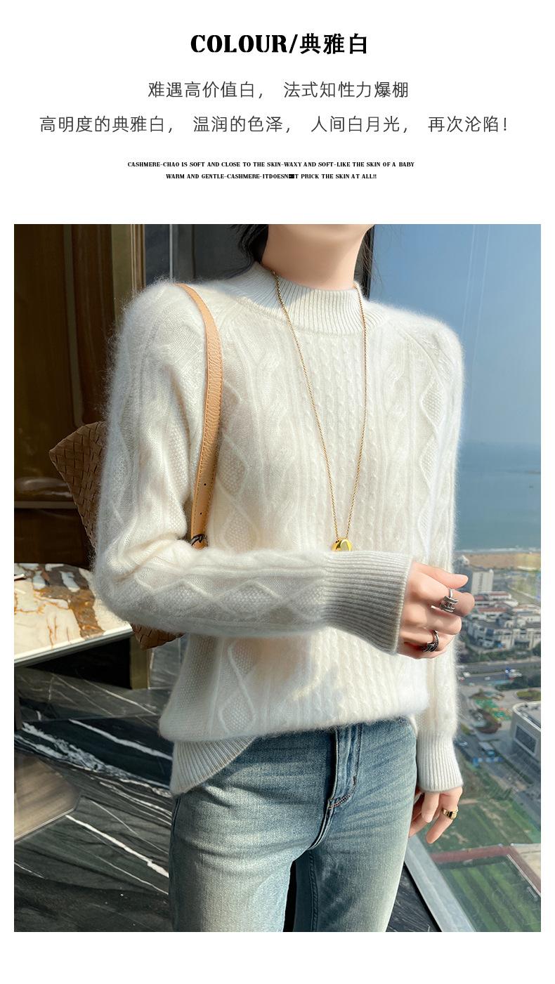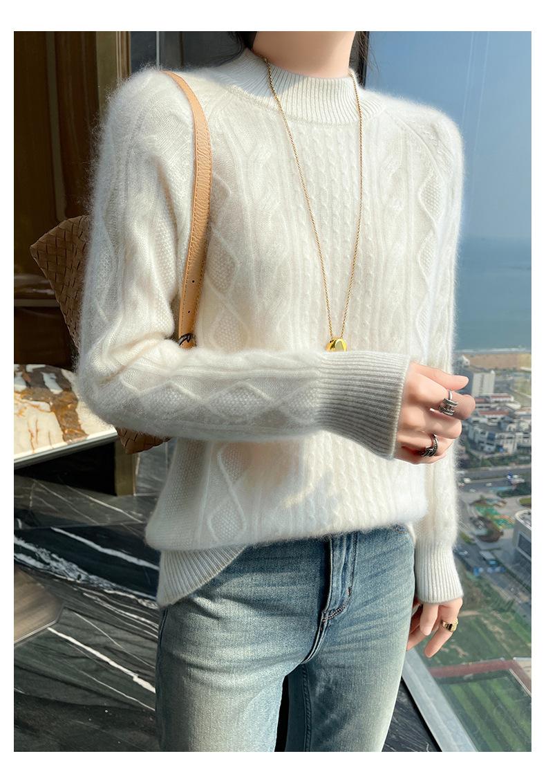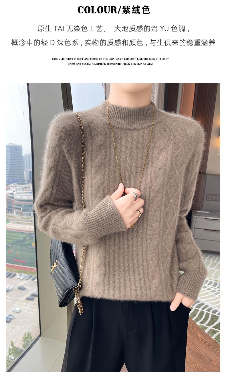 Suéter de Cachemira de Montaña Grueso con Trenzas Vintage de Otoño e Invierno para Mujer, Suéter Tejido Cálido y Holgado para Base