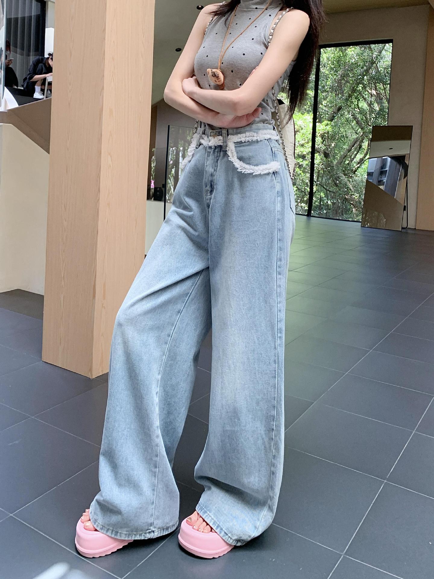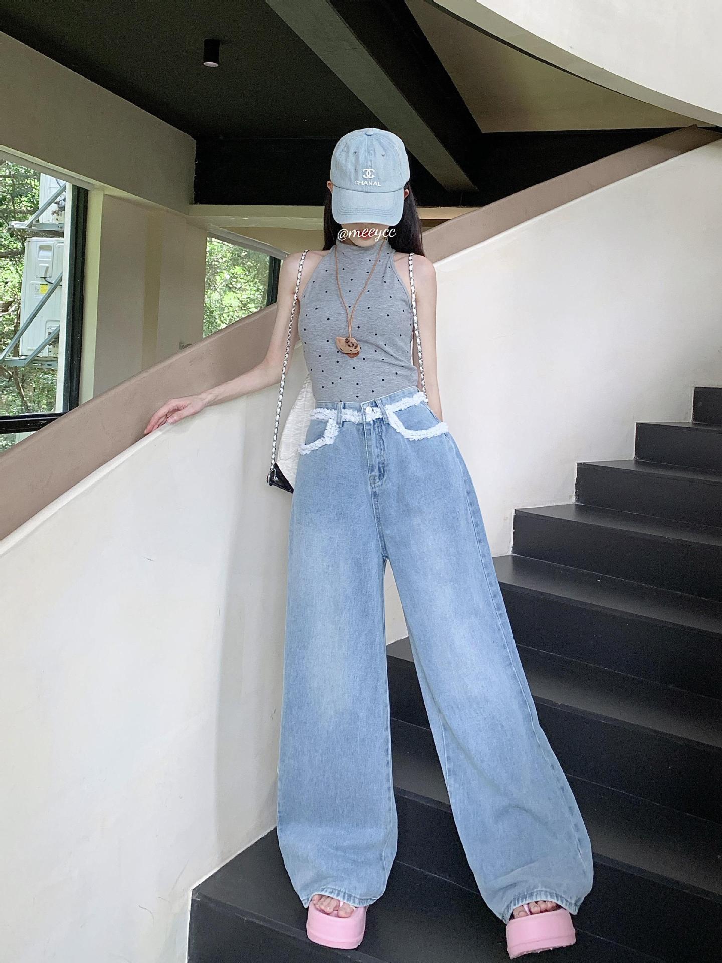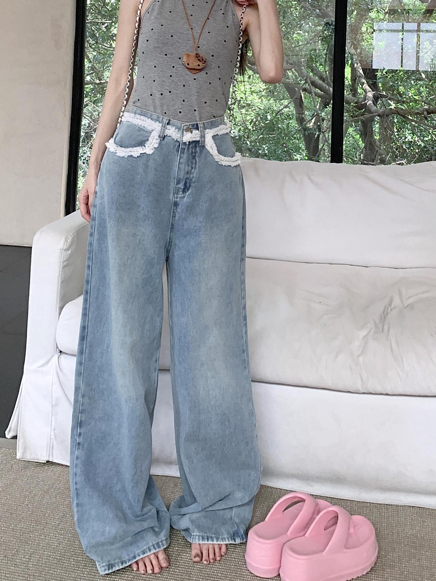 Nicho Jeans de Cintura Alta Sueltos Slim-fit Envolventes para Mujer Commuter Combinan con Todo Pantalones Rectos