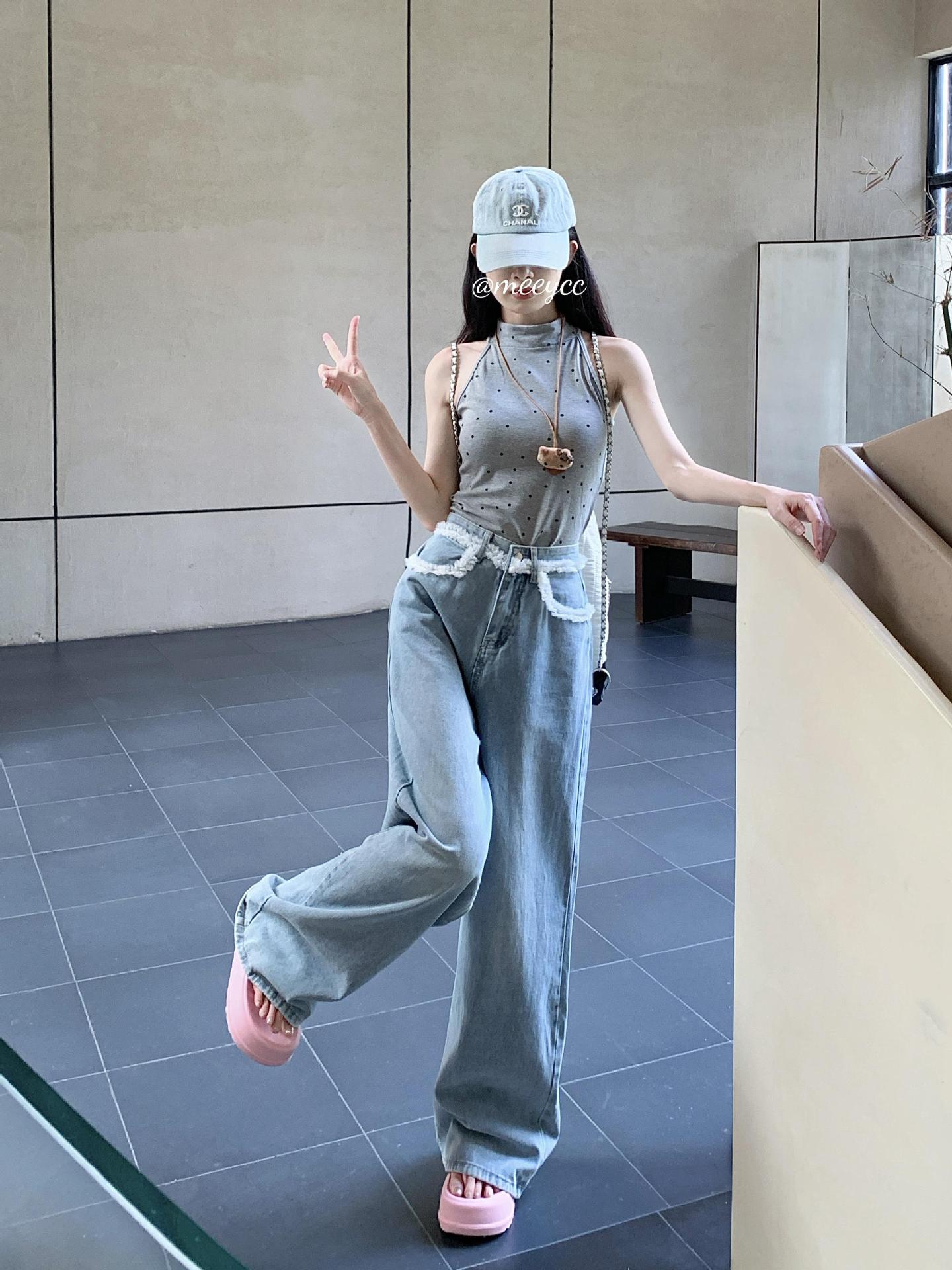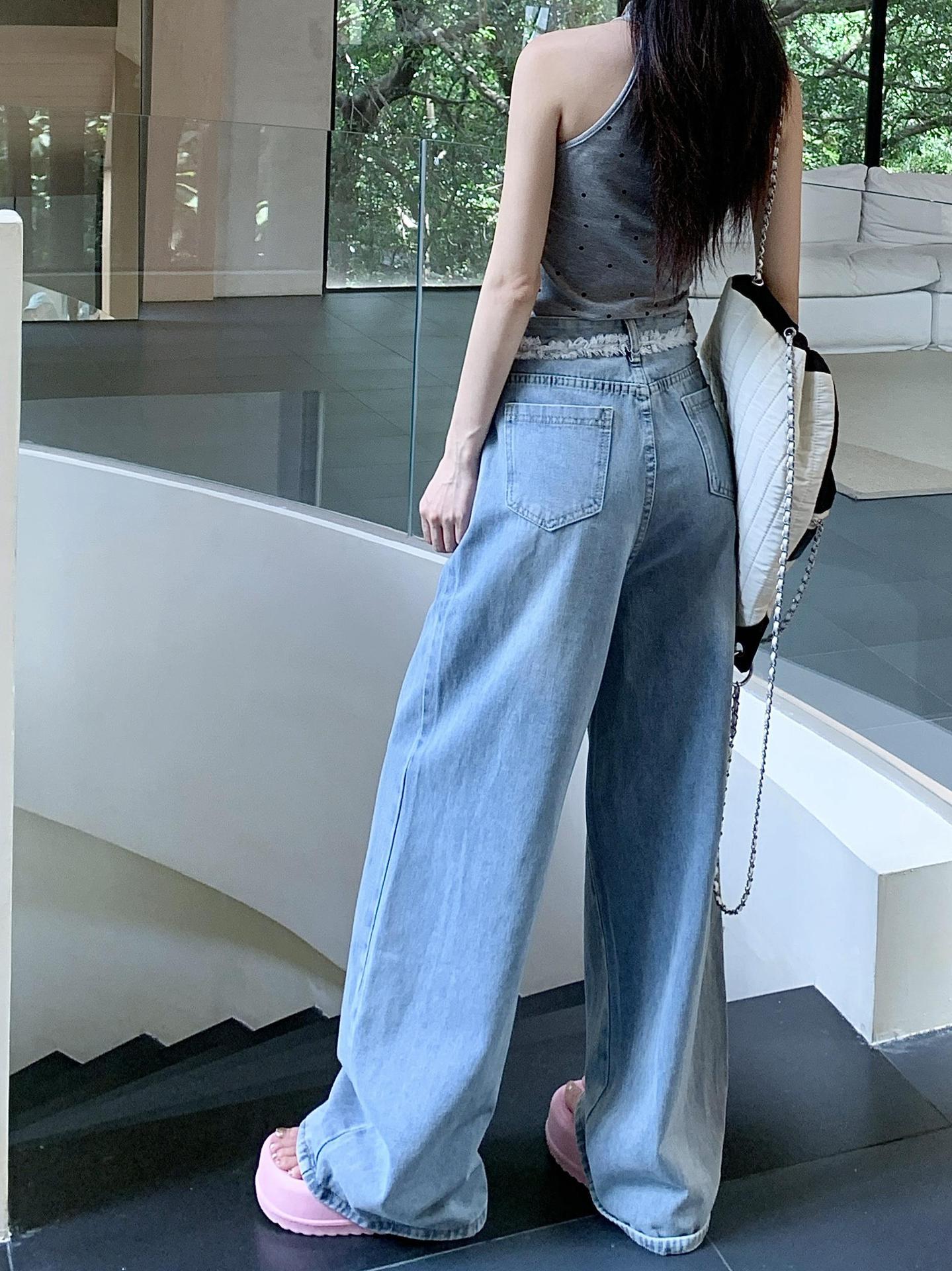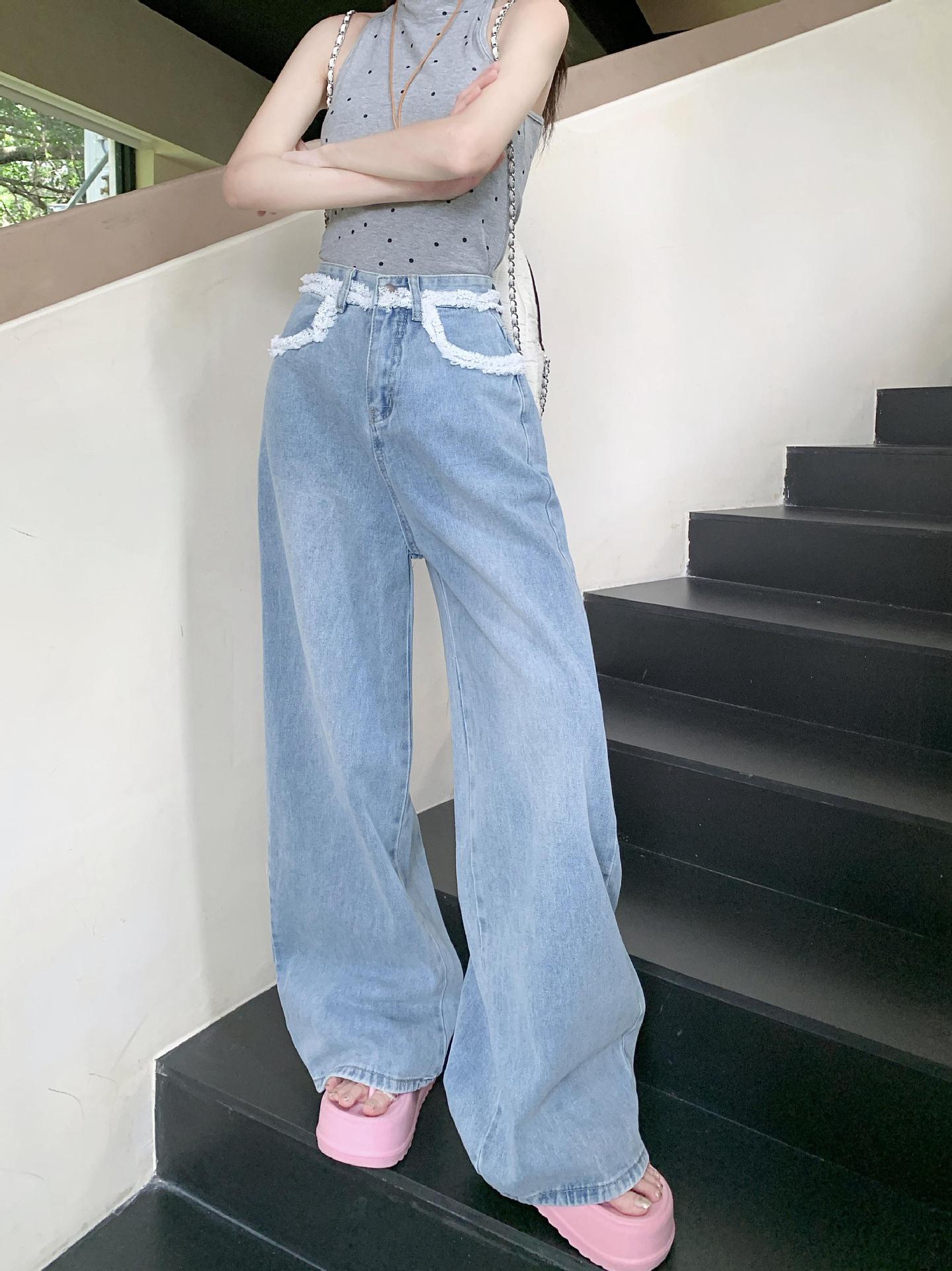 Nicho Jeans de Cintura Alta Sueltos Slim-fit Envolventes para Mujer Commuter Combinan con Todo Pantalones Rectos