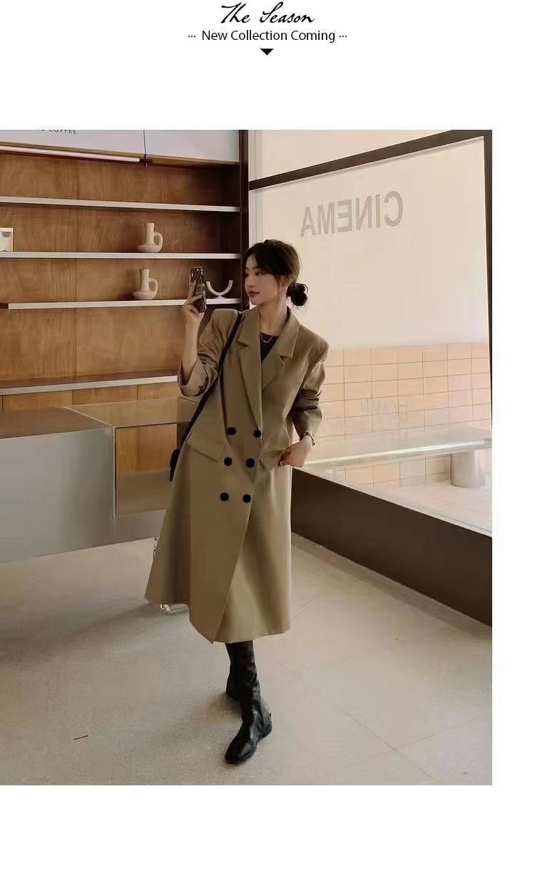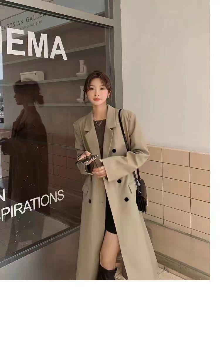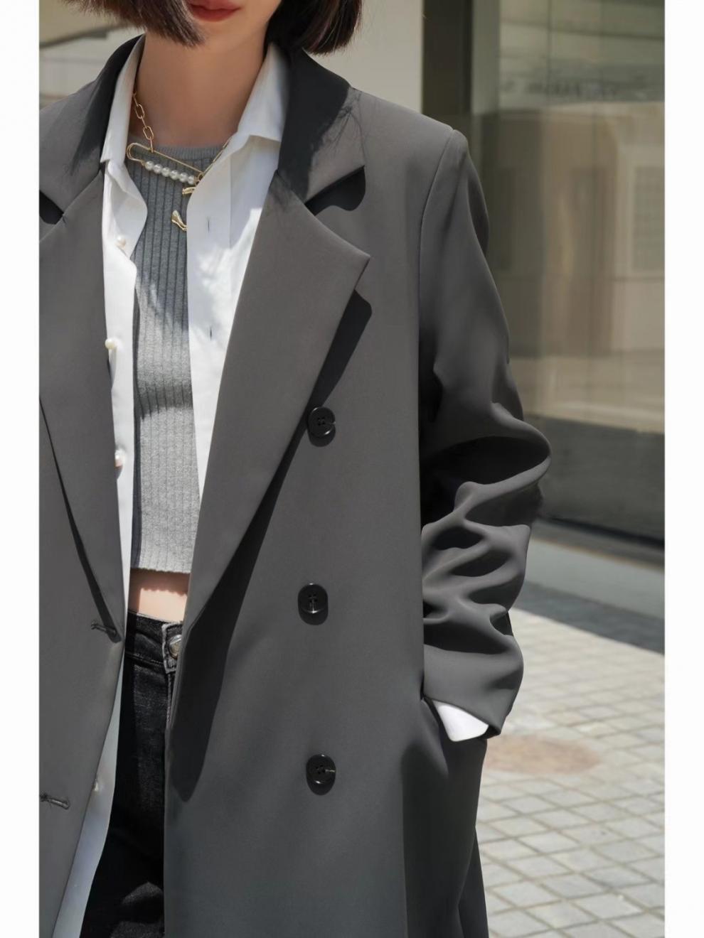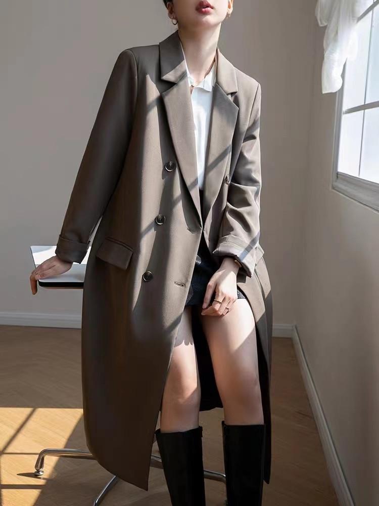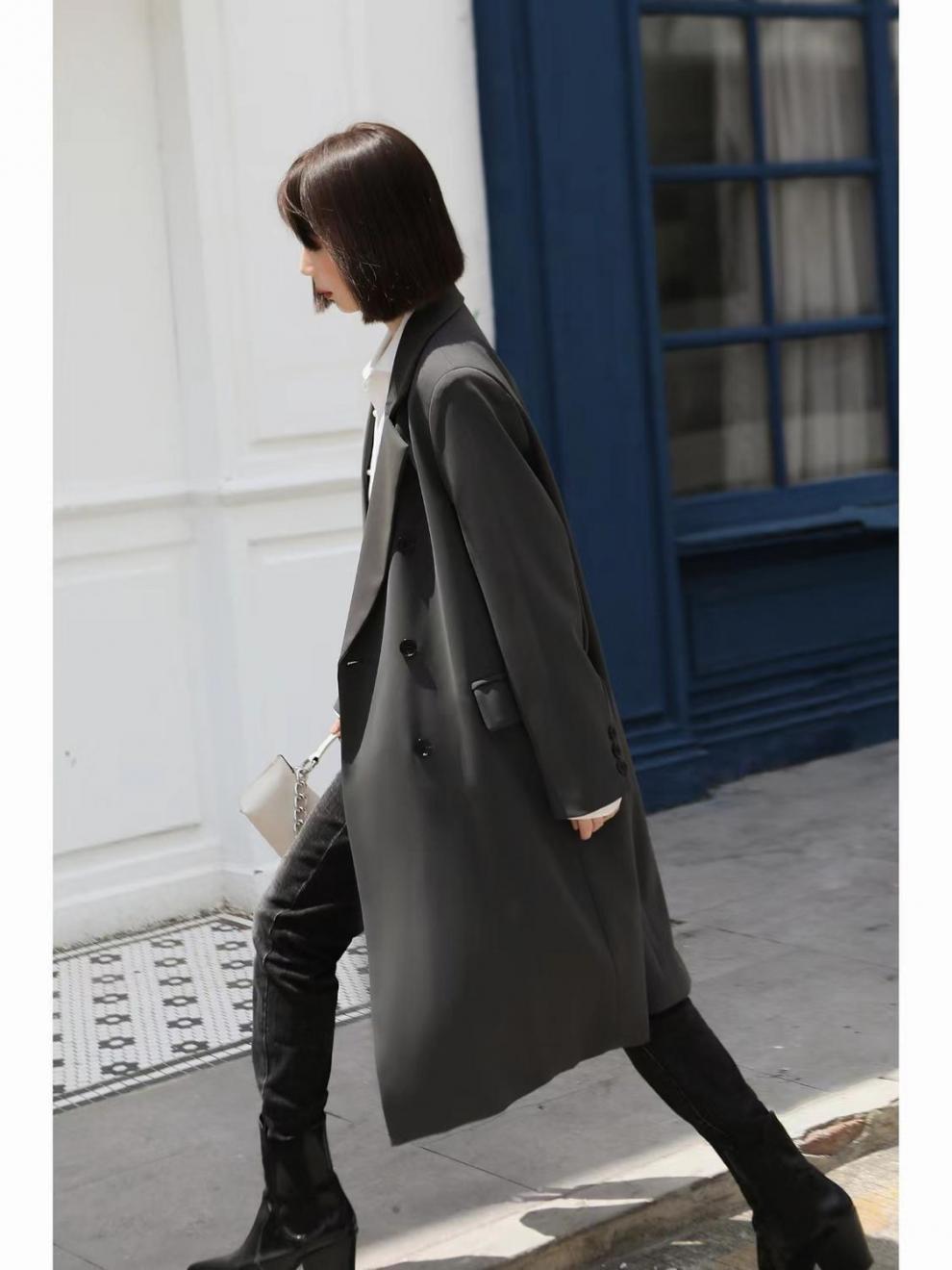Diseño Cortavientos Gris Extra Largo Estilo Traje Chaqueta Cortavientos para Mujer Otoño e Invierno 2024 Nuevo Popular Retro Británico Ropa Exterior
