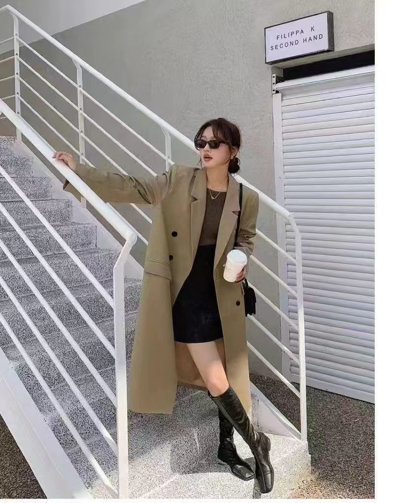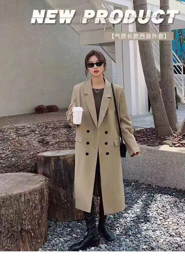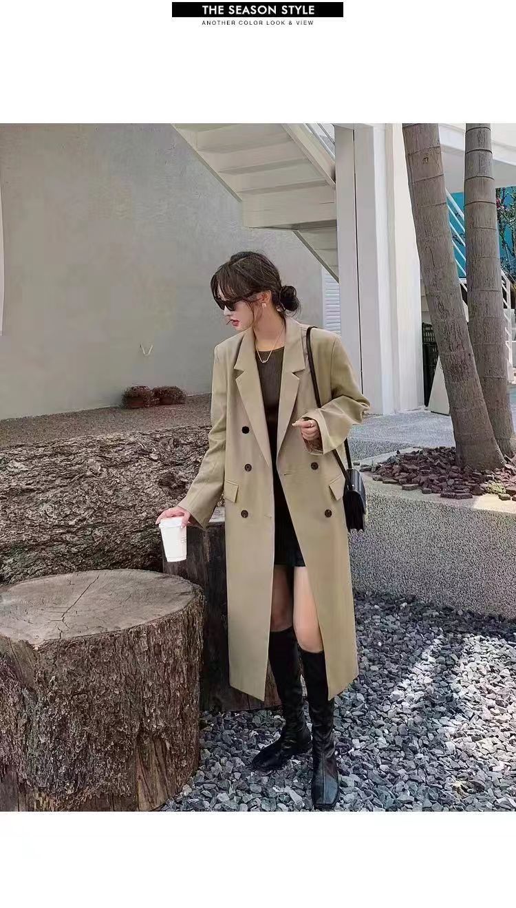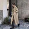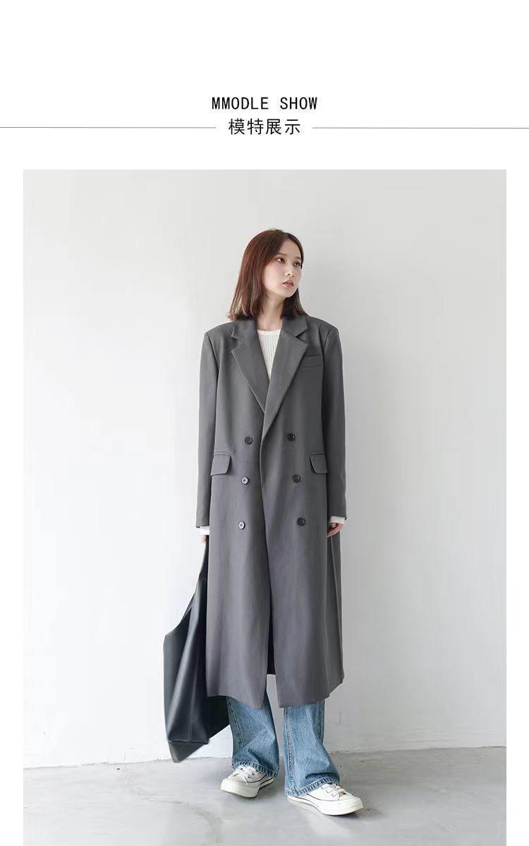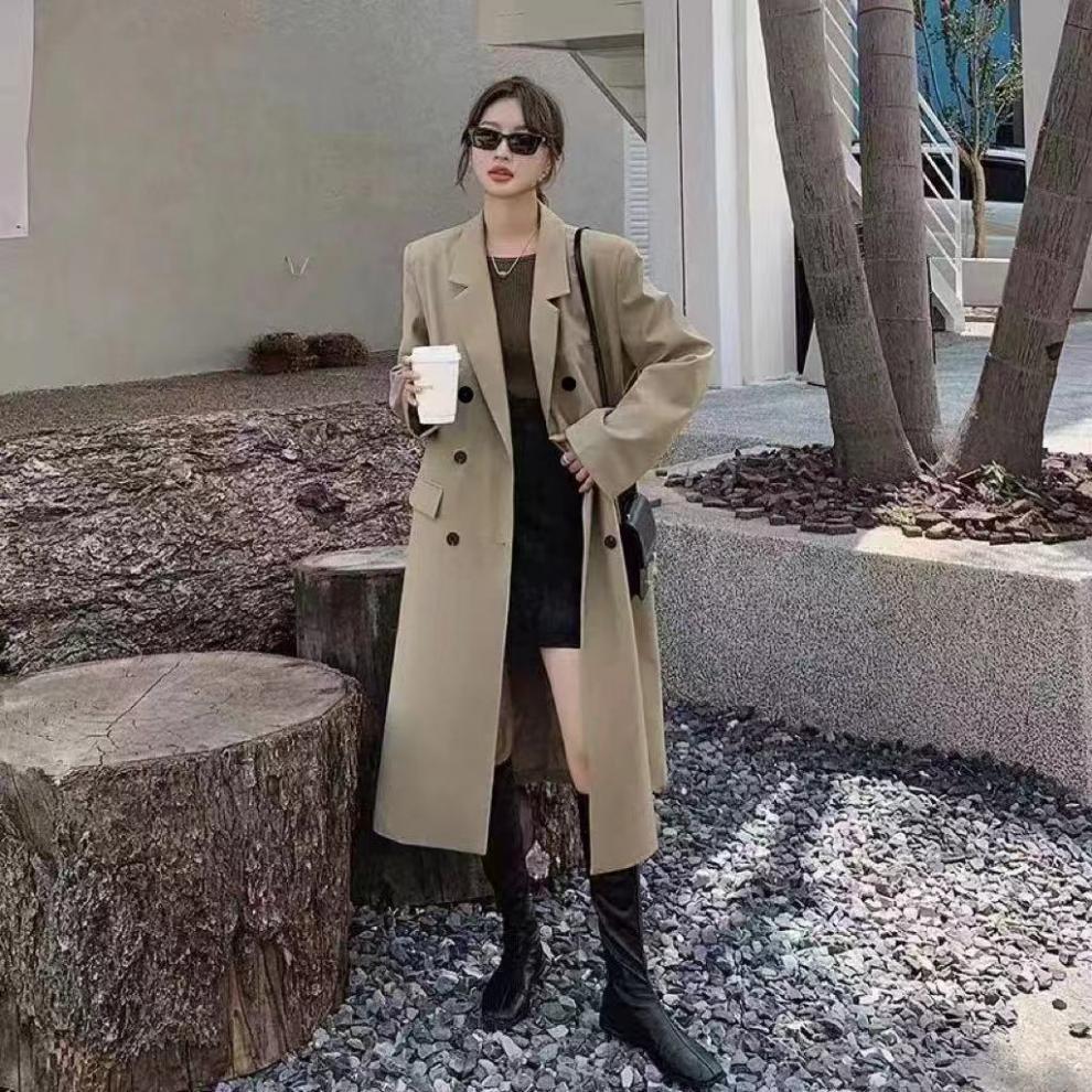 Diseño Cortavientos Gris Extra Largo Estilo Traje Chaqueta Cortavientos para Mujer Otoño e Invierno 2024 Nuevo Popular Retro Británico Ropa Exterior