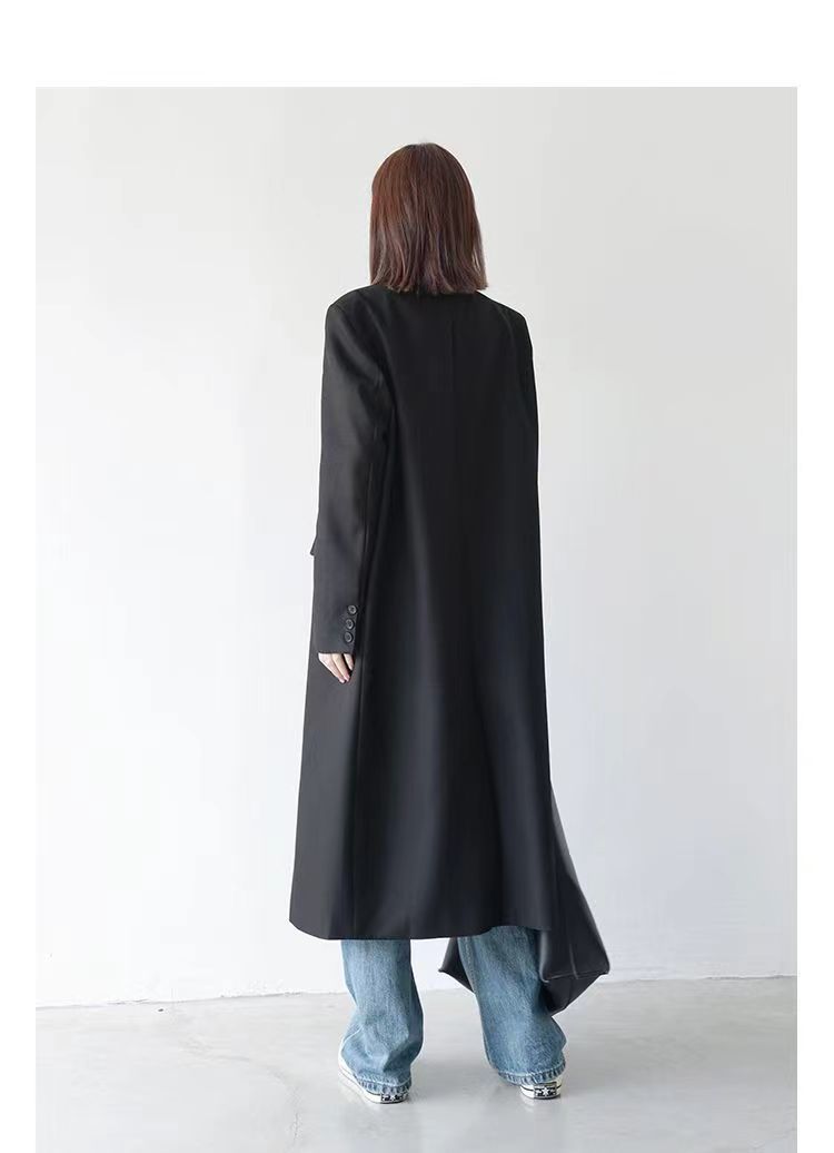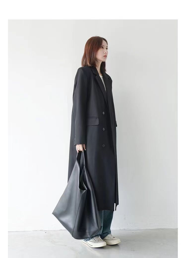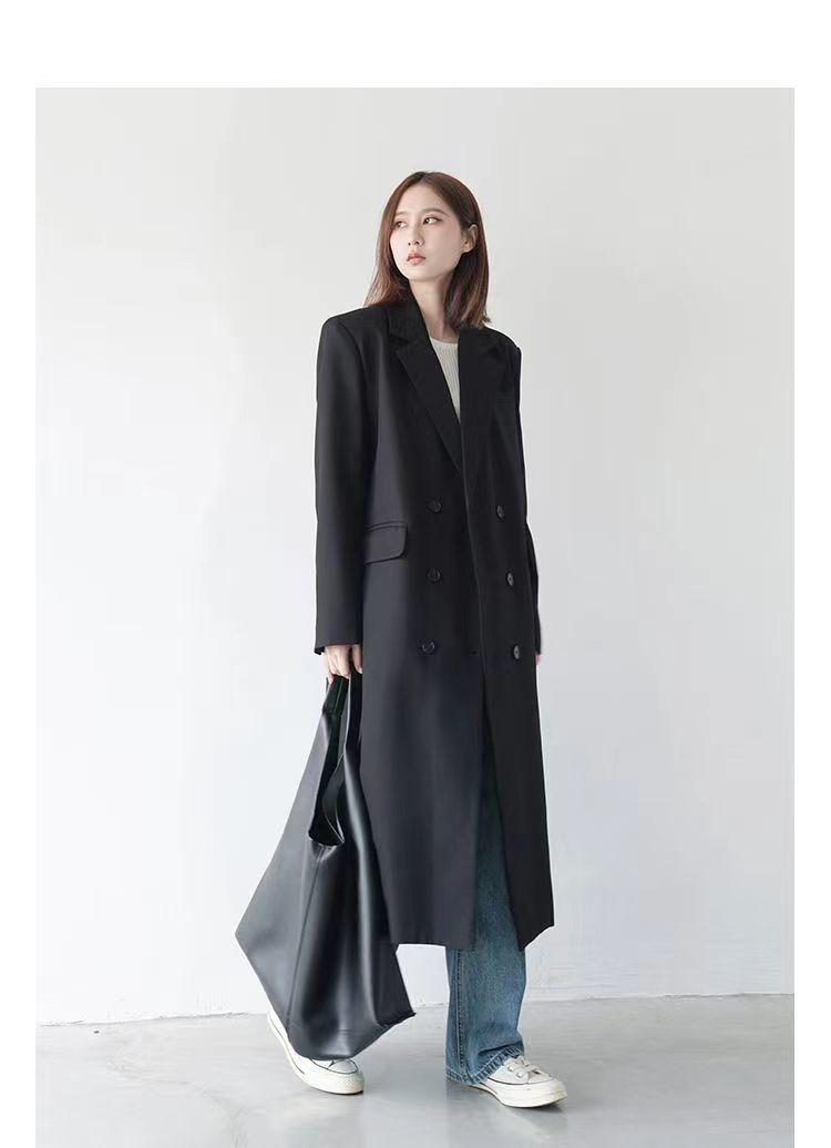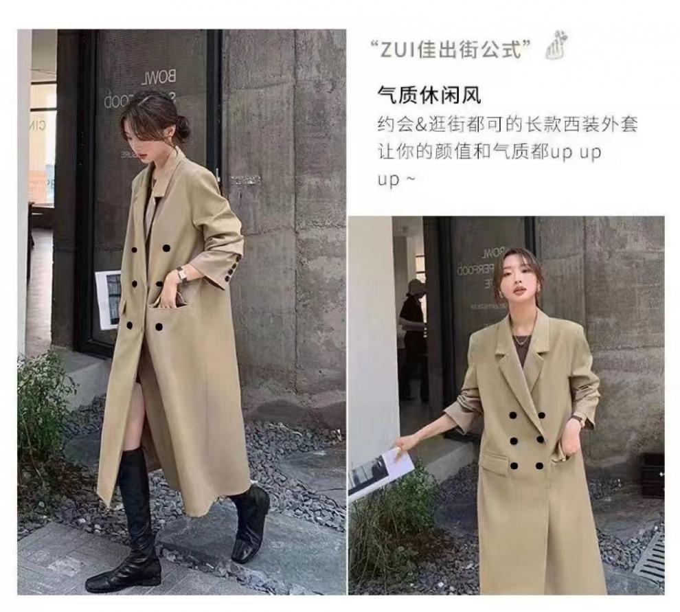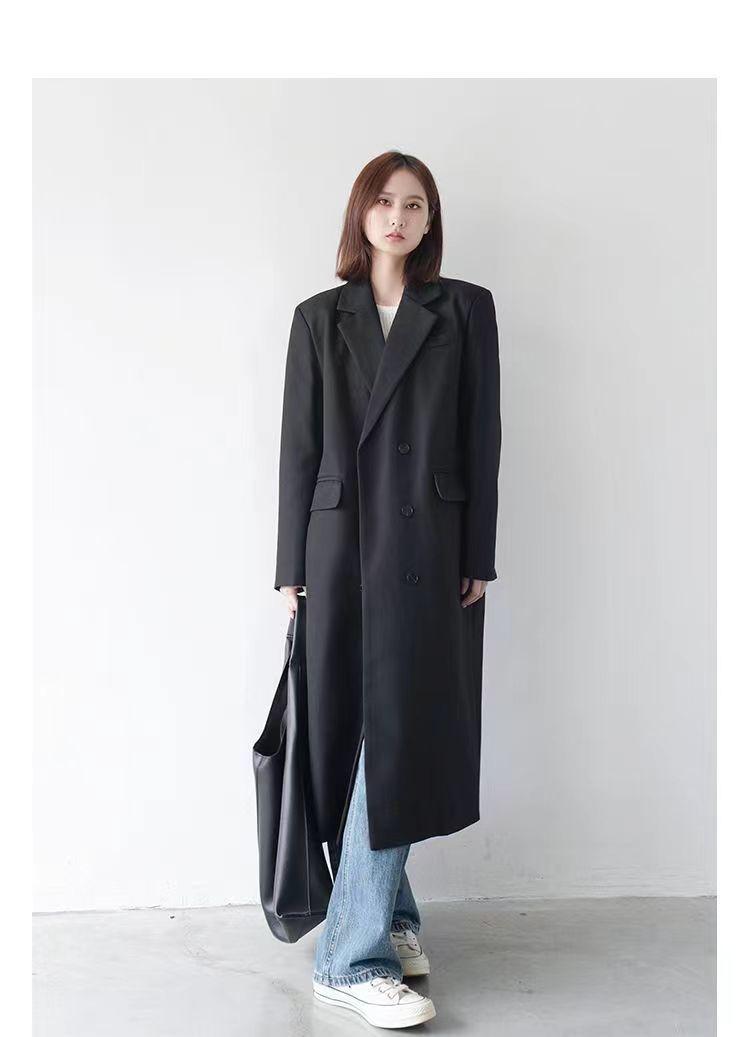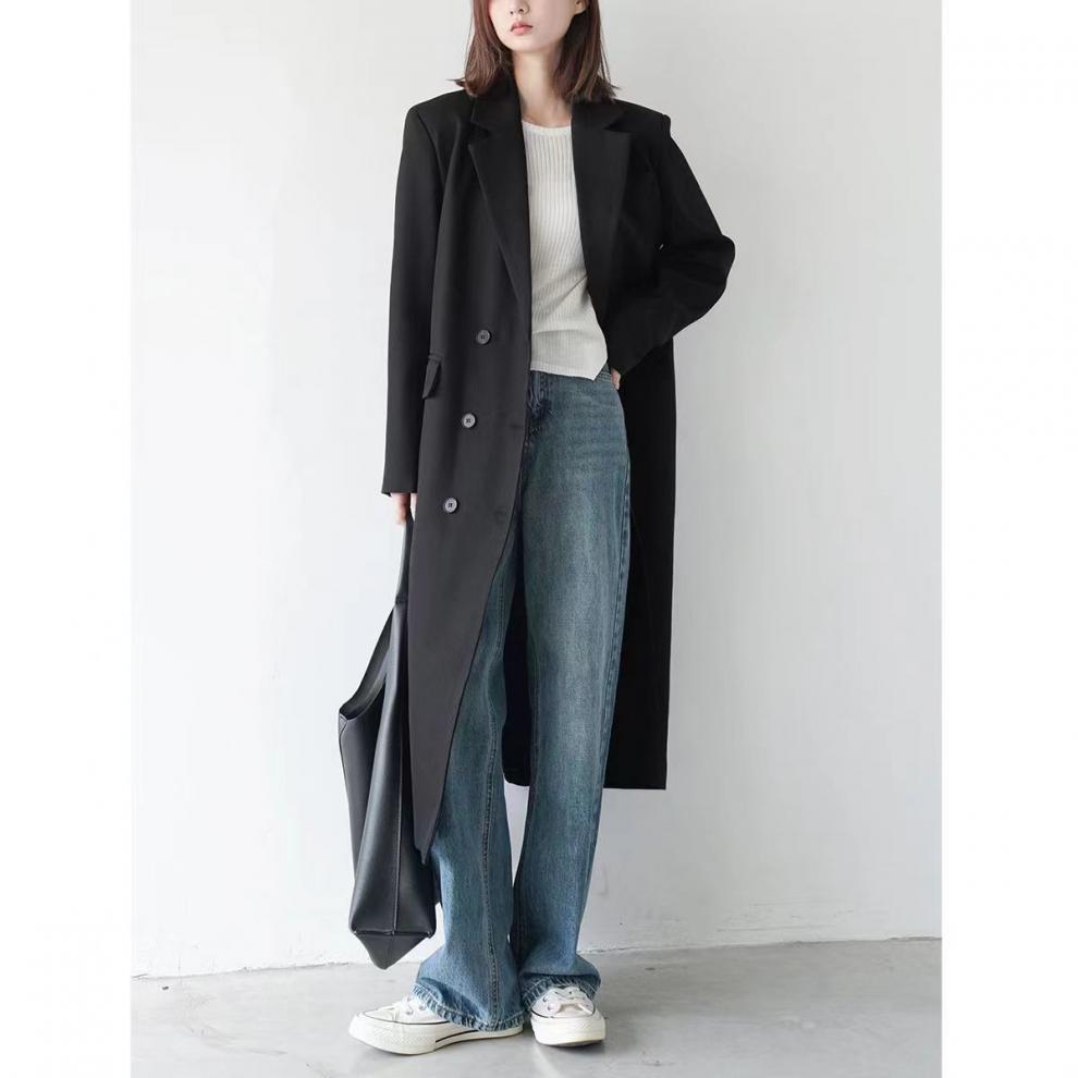 Diseño Cortavientos Gris Extra Largo Estilo Traje Chaqueta Cortavientos para Mujer Otoño e Invierno 2024 Nuevo Popular Retro Británico Ropa Exterior