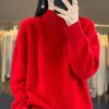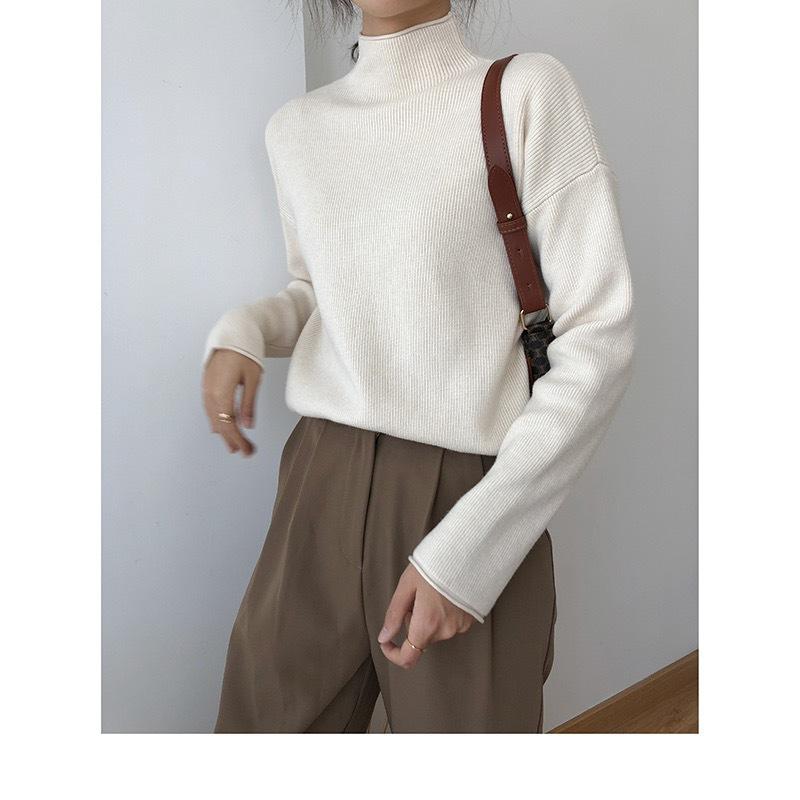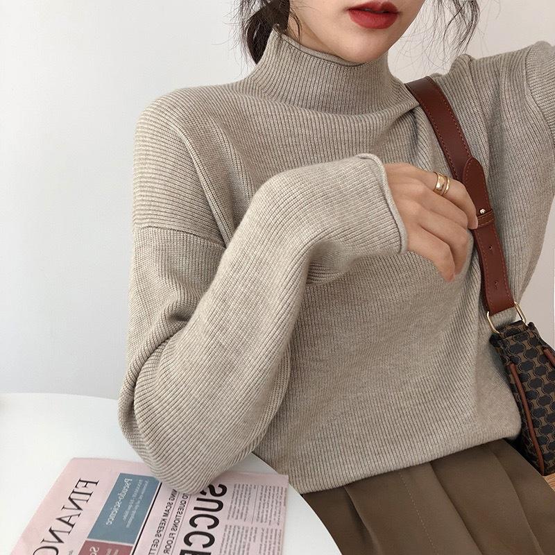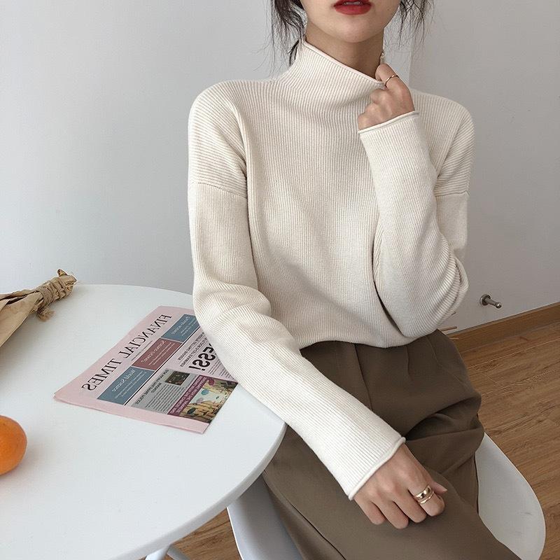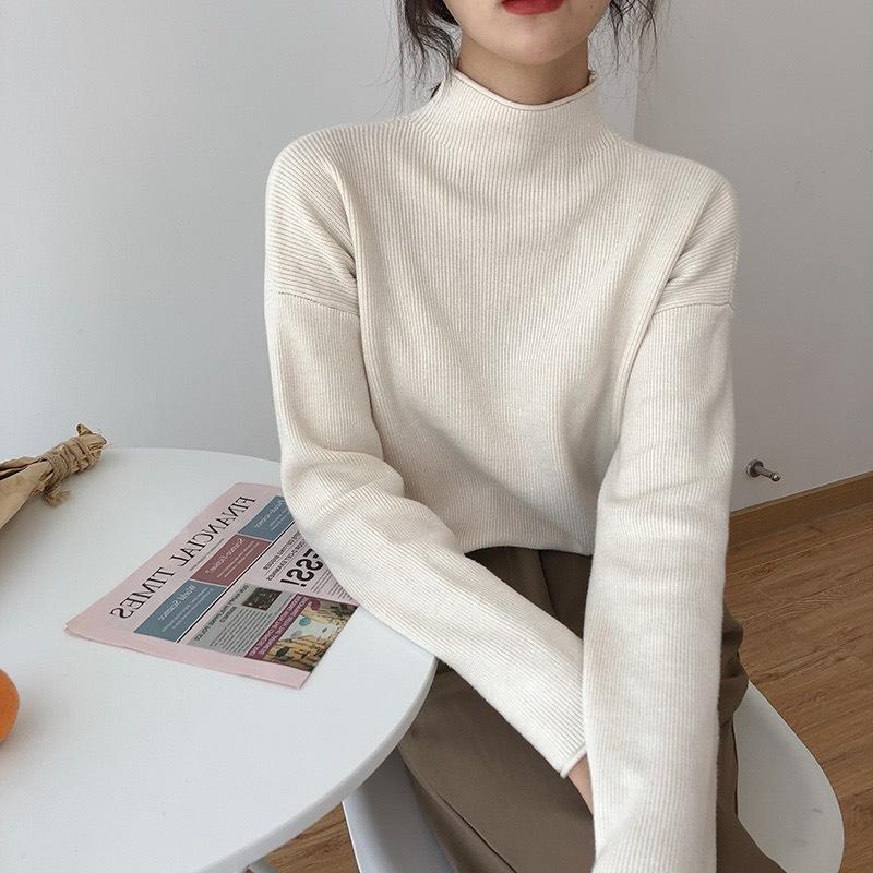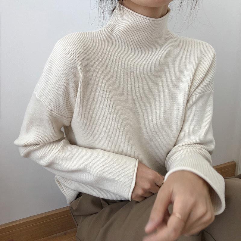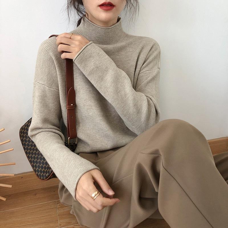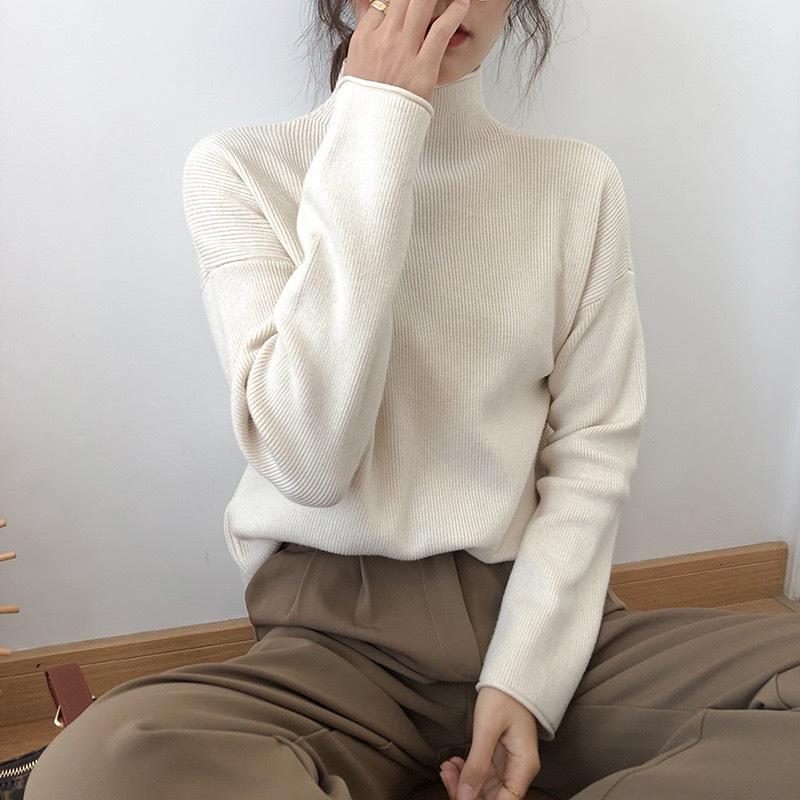 2024 otoño nuevo estilo cuello medio alto suéter básico de punto estilo holgado color sólido versátil top de punto de lana