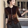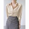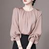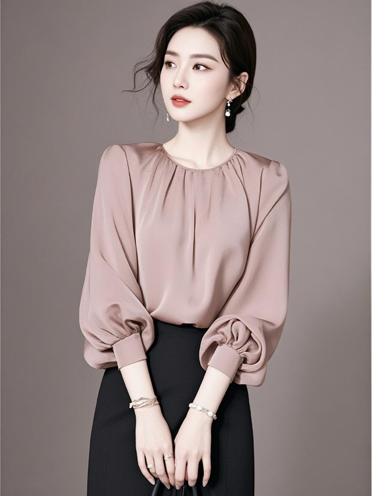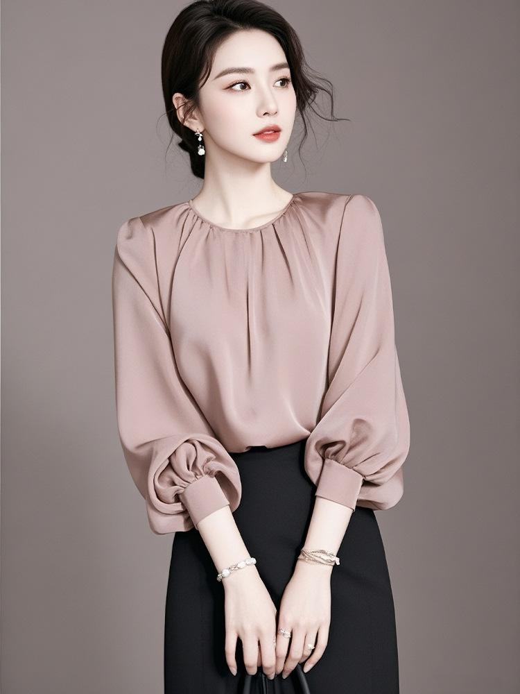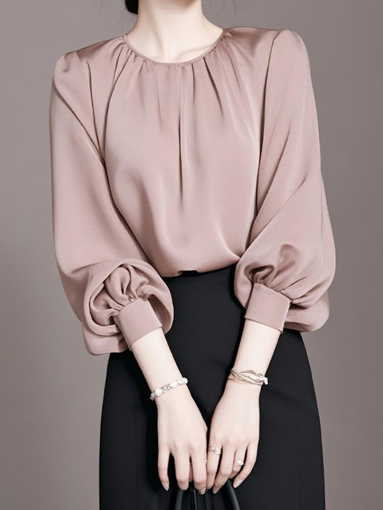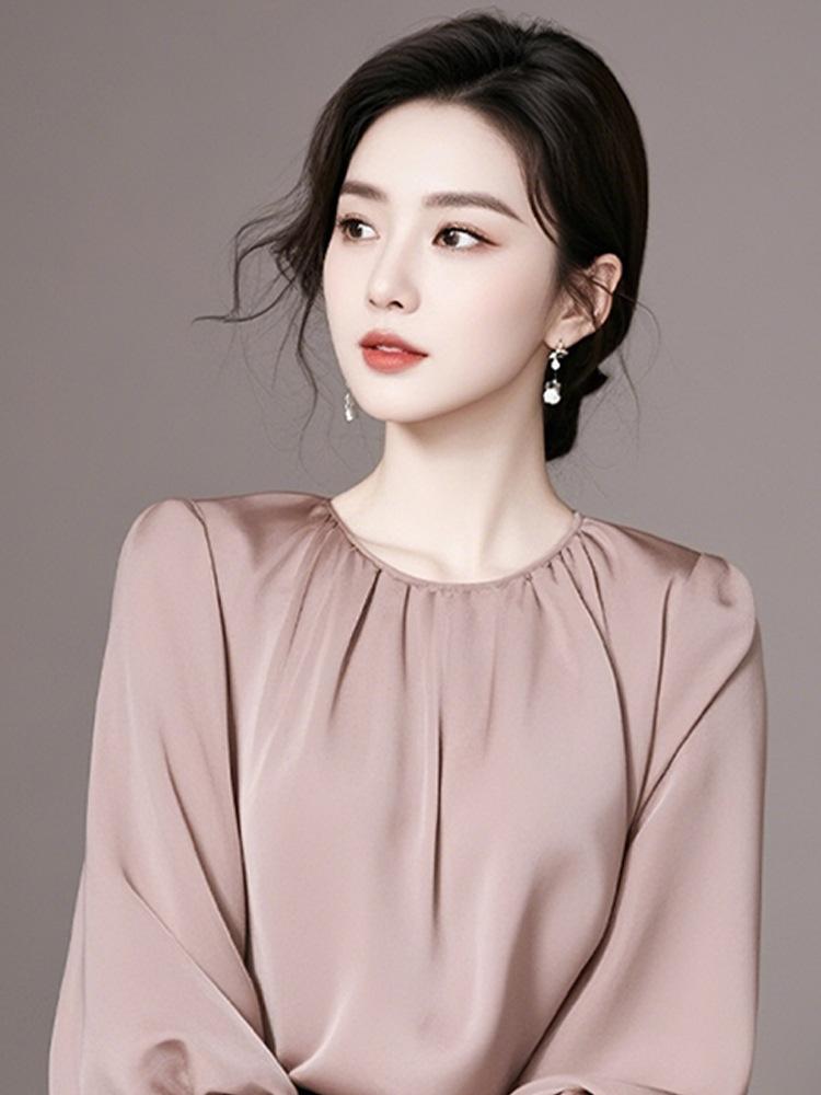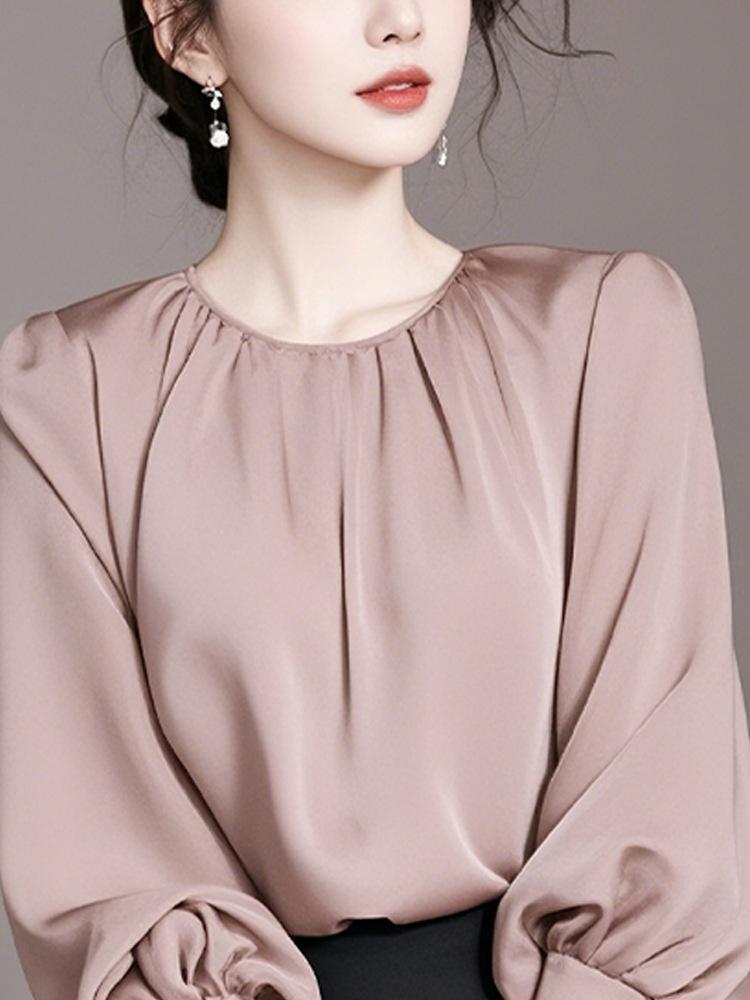 Camisa de manga larga rosa de lujo ligera y madura de estilo occidental elegante de principios de otoño para mujer