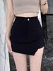 Falda azul de media pierna para mujer, falda fina de verano 2024, estilo preppy de alta gama, cintura alta, corte A, corta.