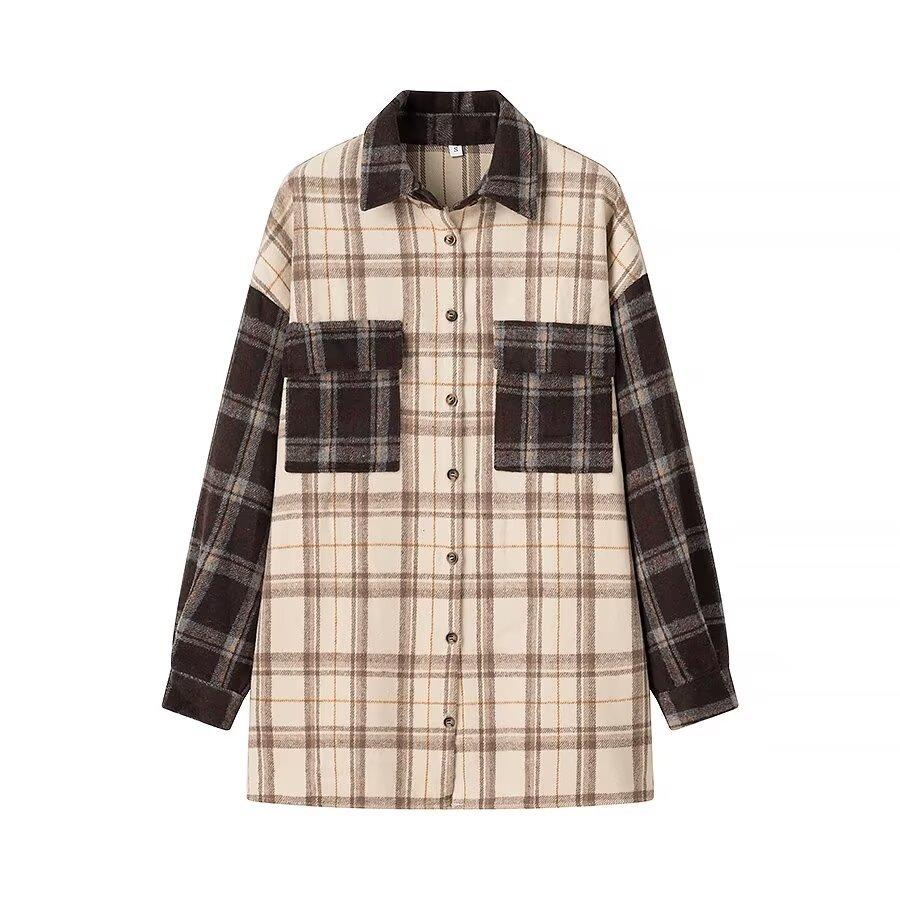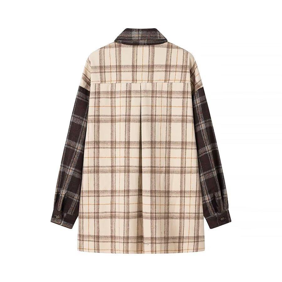 Camisa a cuadros informal de color a juego para mujer europea y americana de comercio exterior transfronterizo de Amazon, otoño e invierno de 2024, nueva moda urbana
