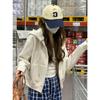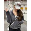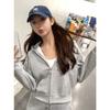 Cárdigan gris con capucha para mujer, chaqueta informal corta, holgada y explosiva, primavera y otoño de 2024