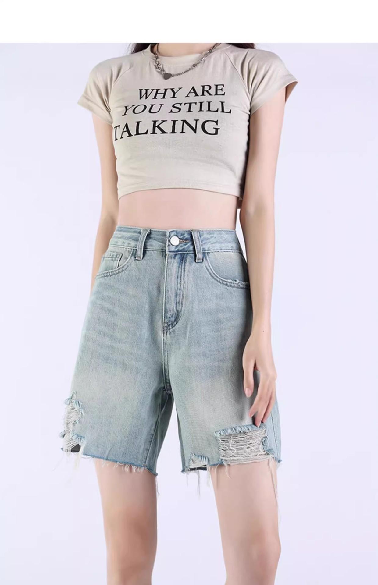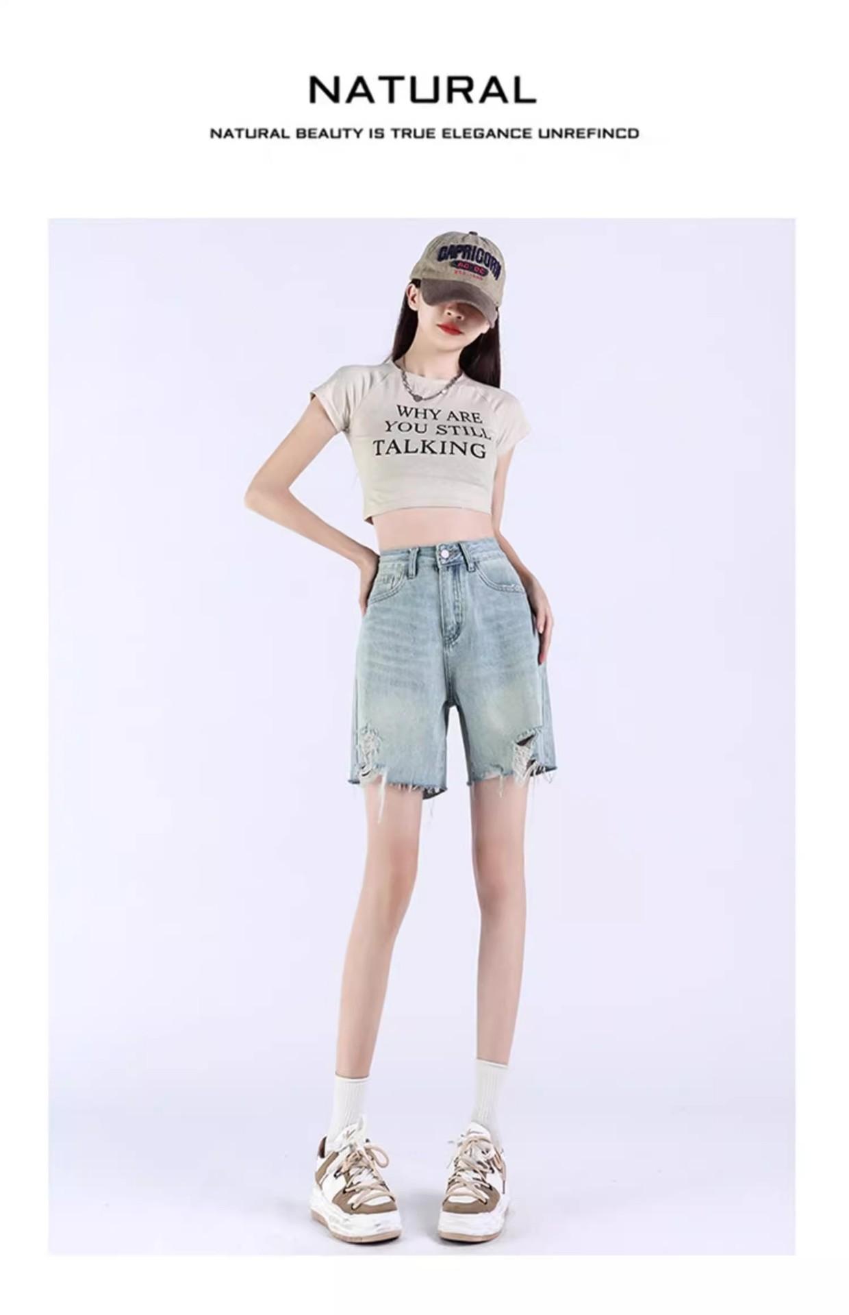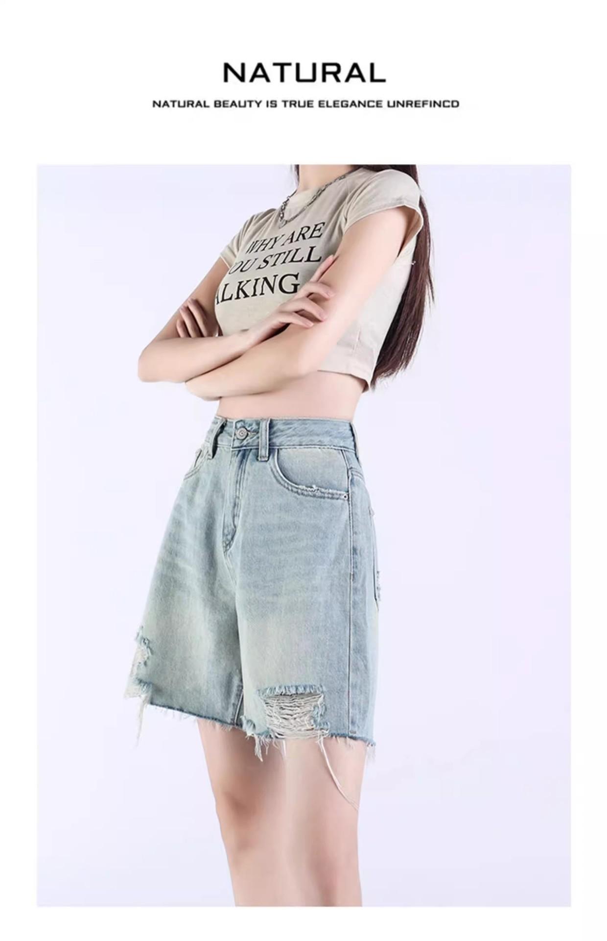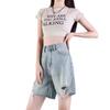 Pantalones cortos vaqueros Tencel azul claro para mujer, novedad de verano 2024, cintura alta, sueltos, adelgazantes, casuales, rectos